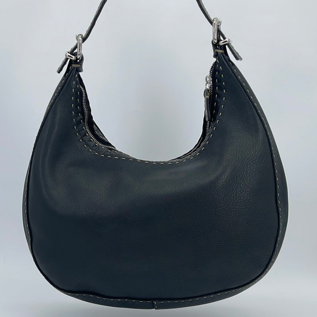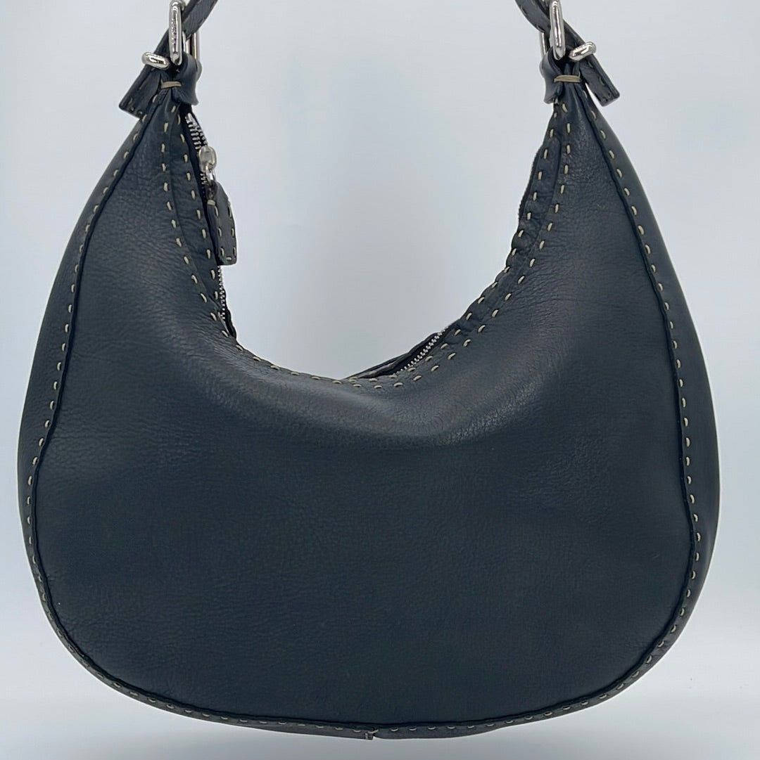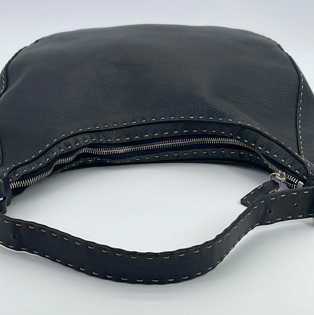 PRELOVED Fendi Selleria Black Leather Shoulder Bag