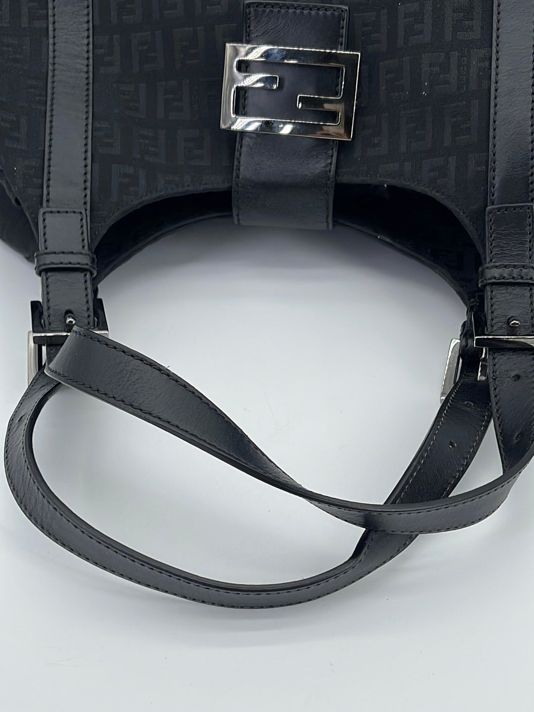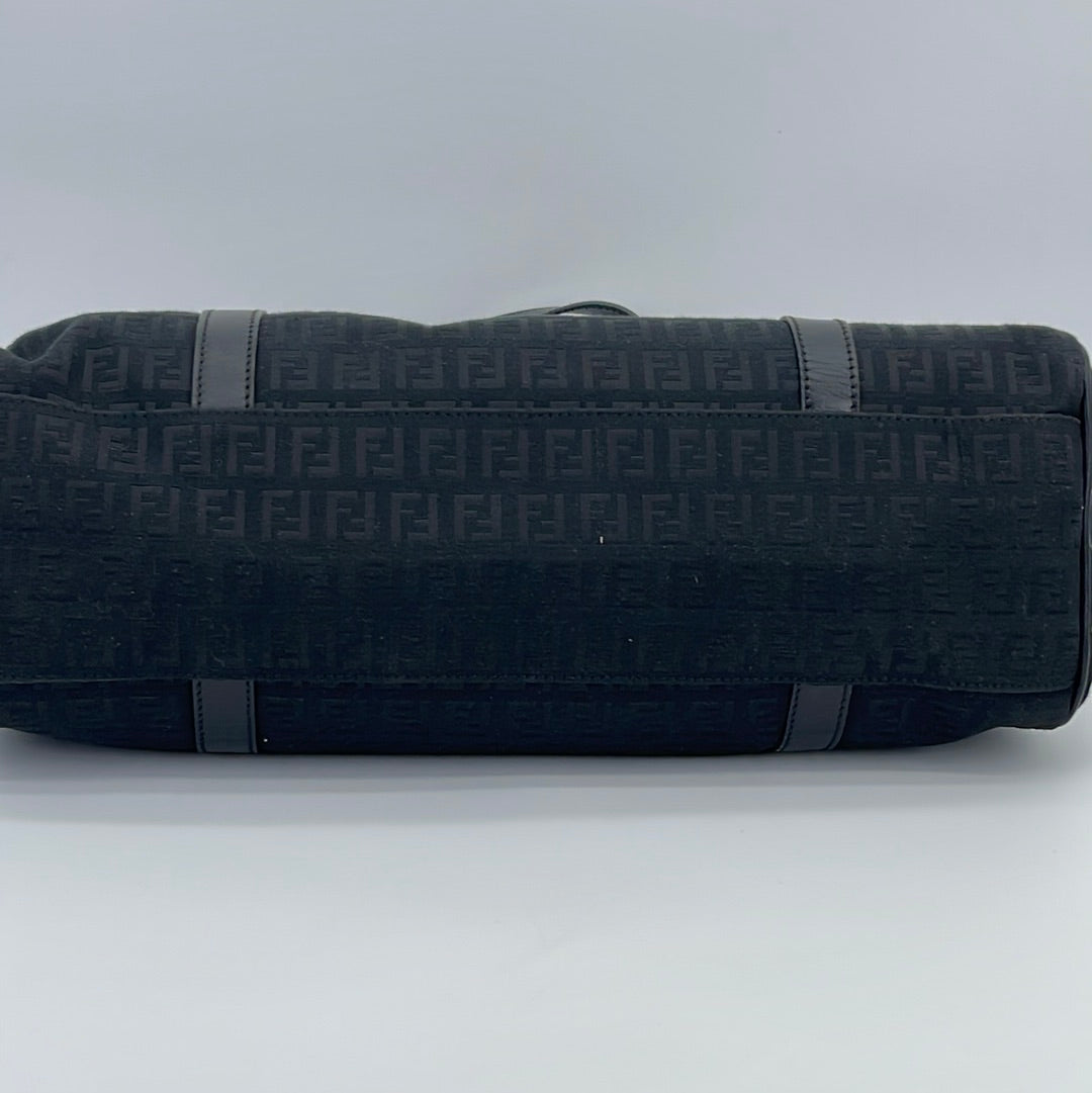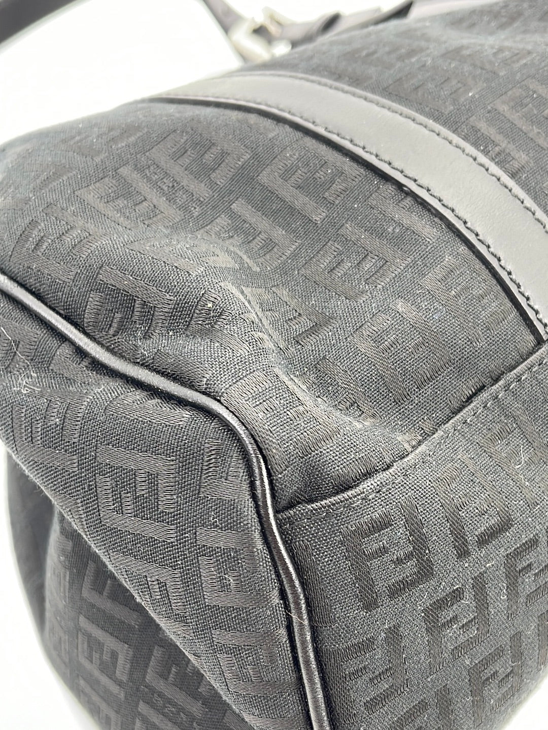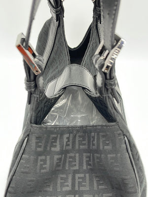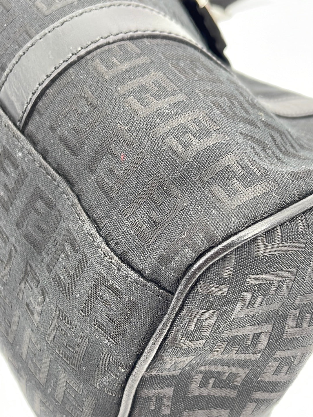 Preloved Fendi Zucchino Black Nylon and Leather Shoulder Bag