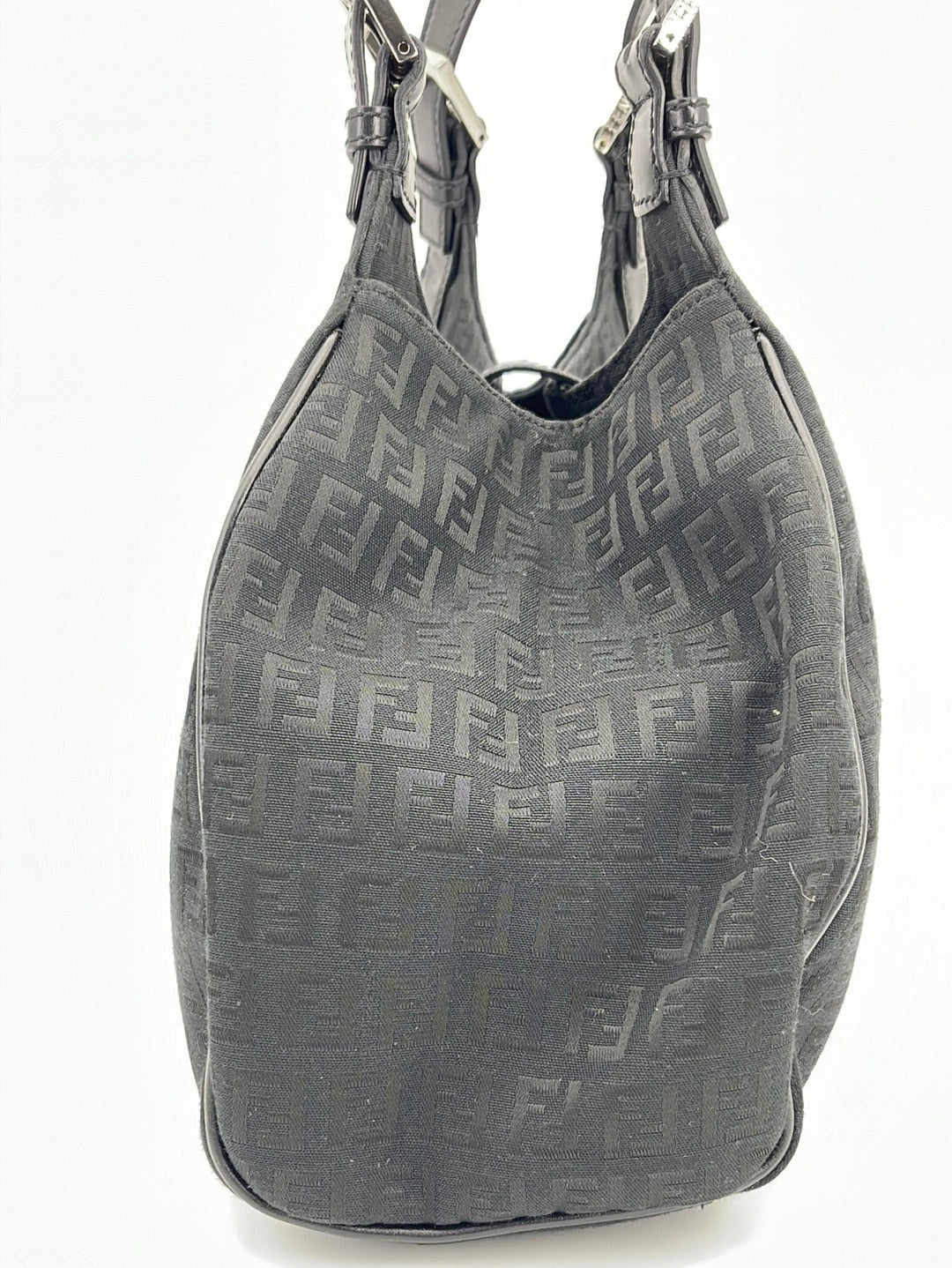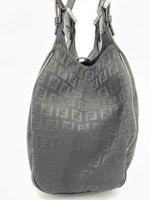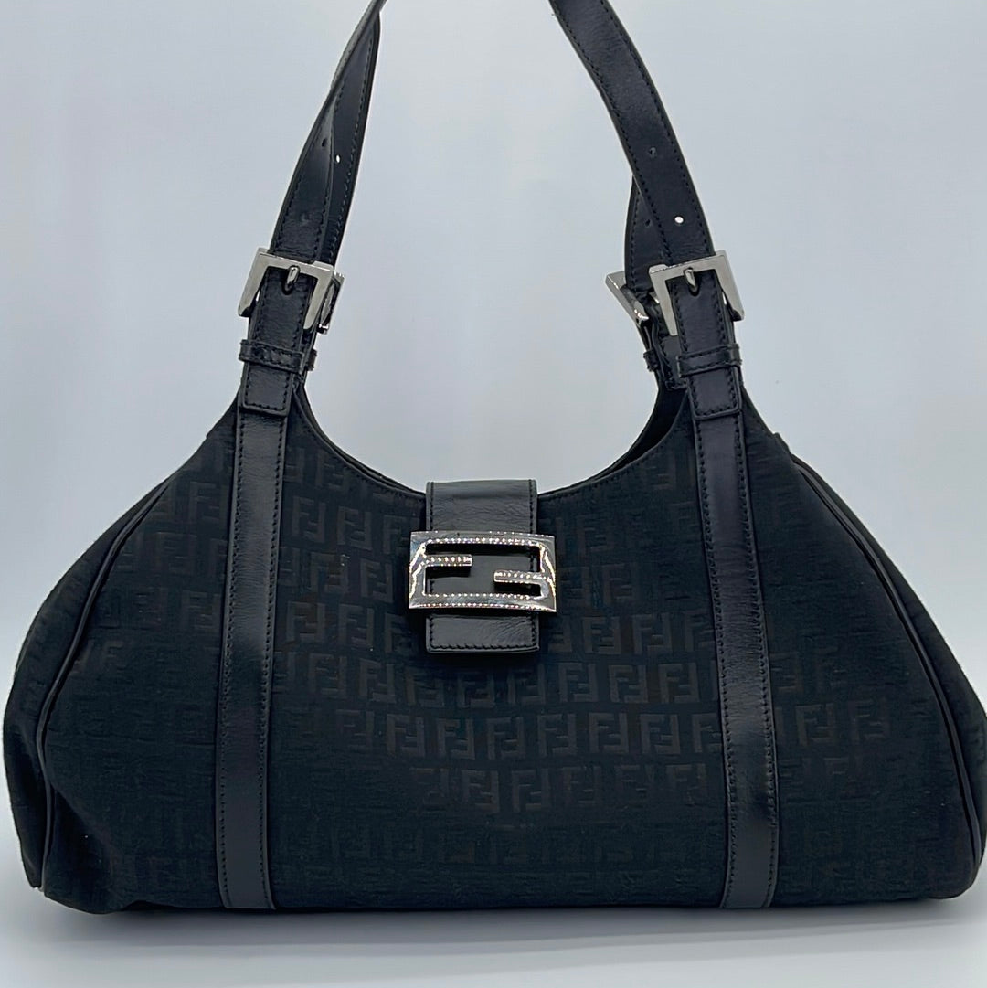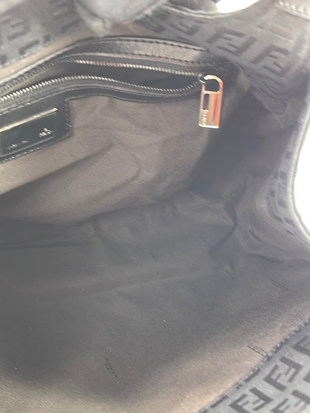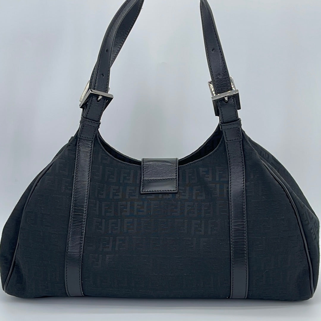 Preloved Fendi Zucchino Black Nylon and Leather Shoulder Bag
