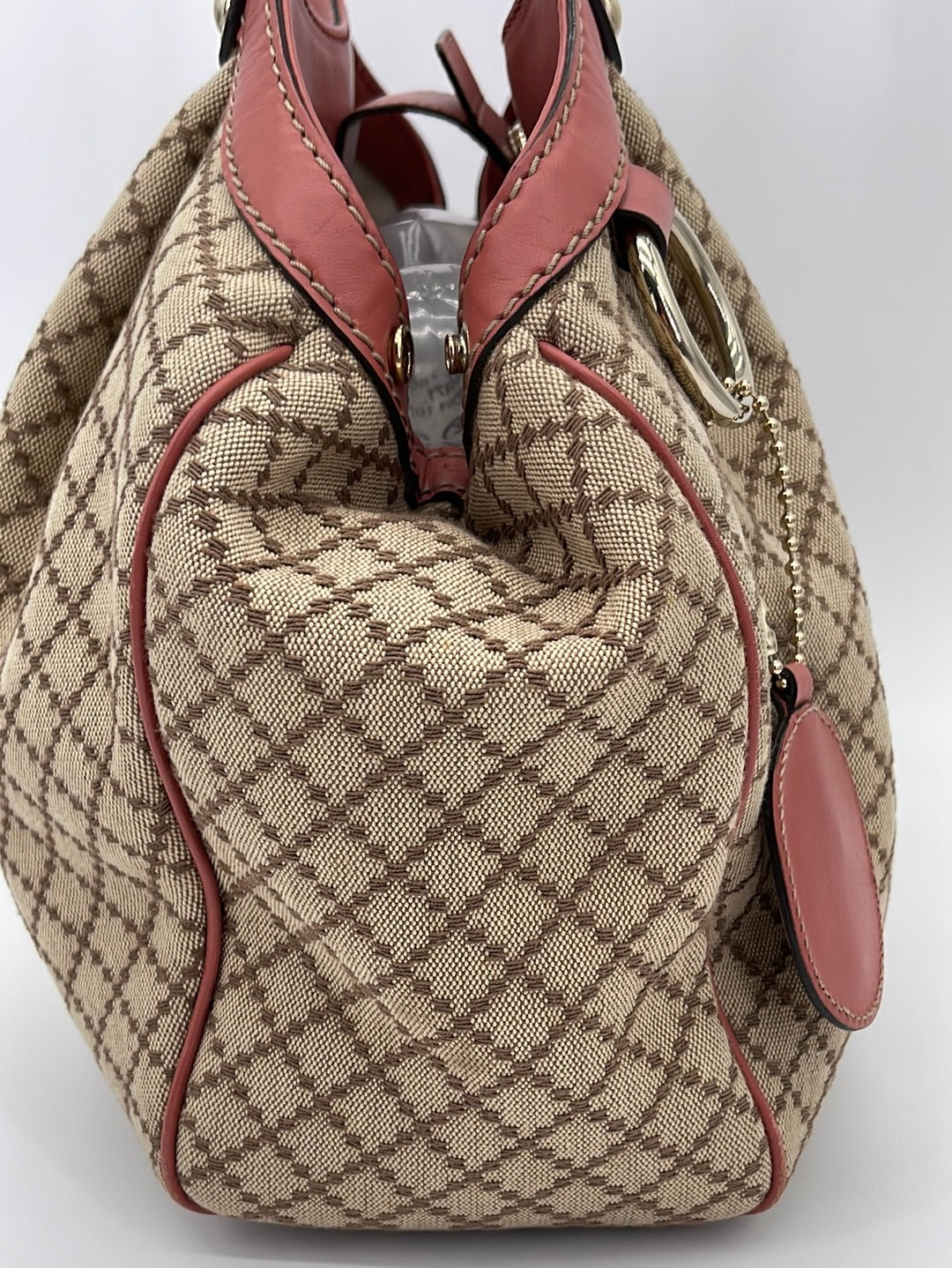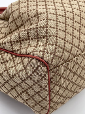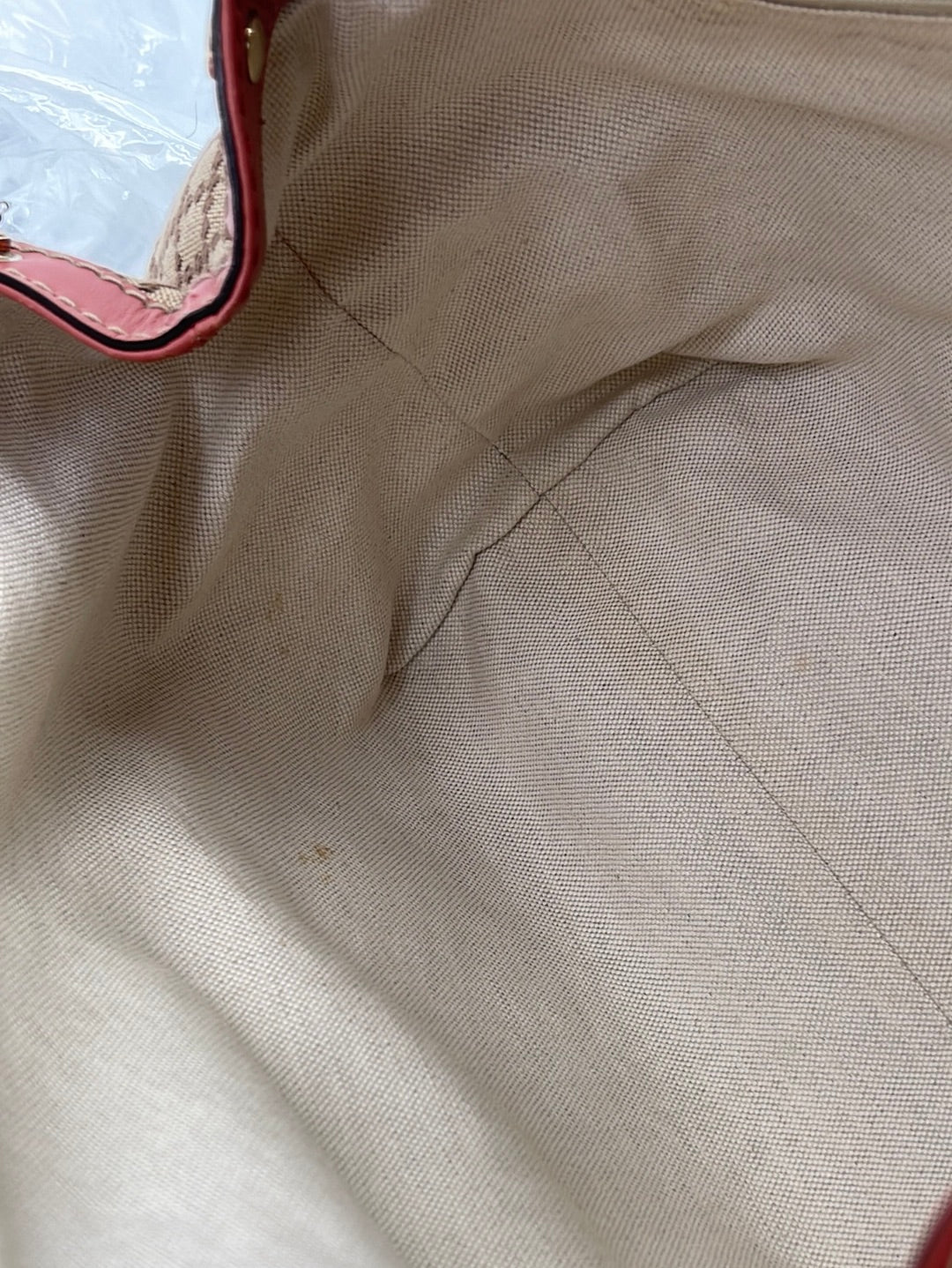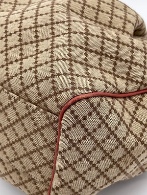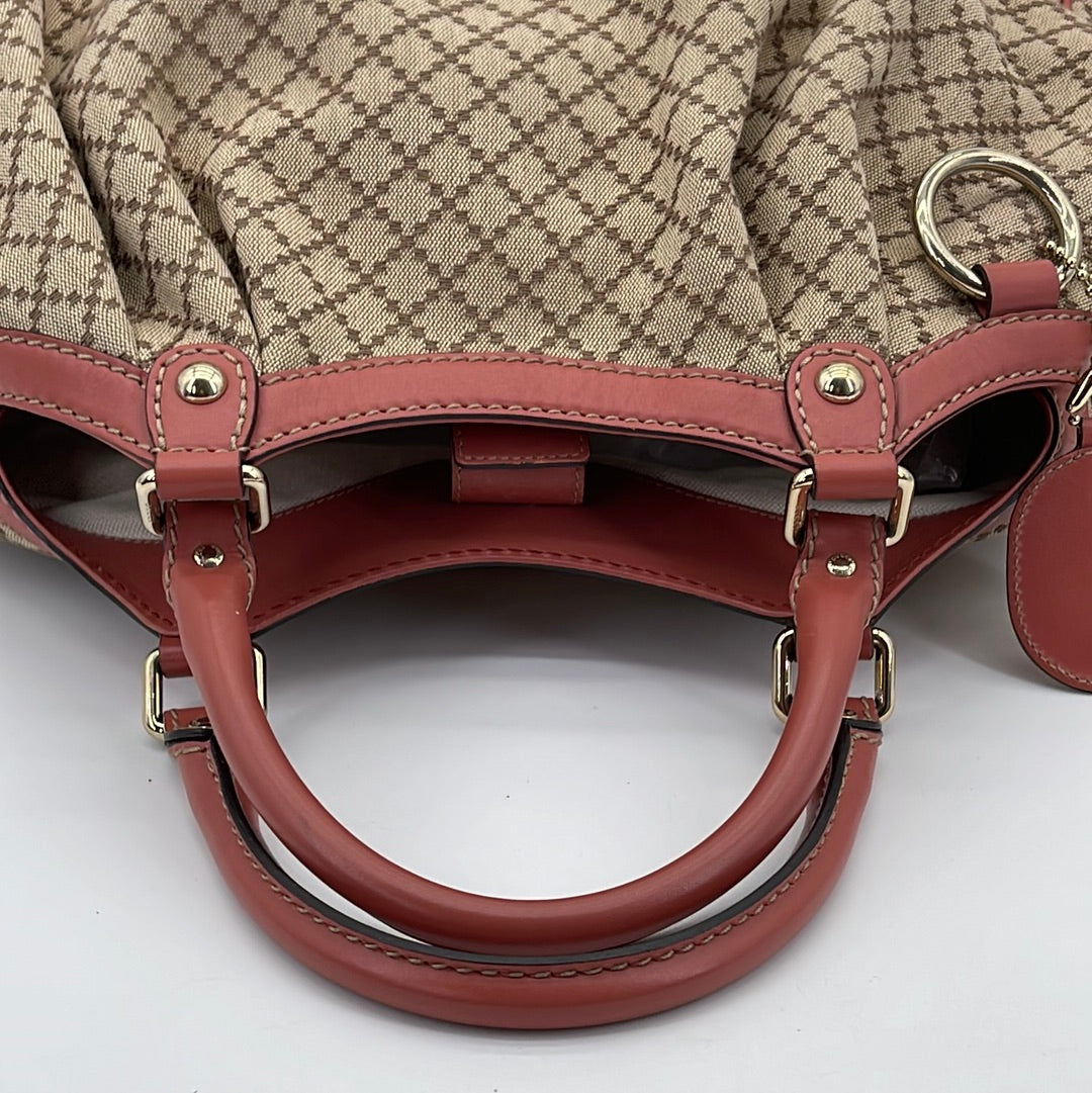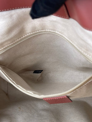 Preloved Gucci Beige Canvas Sukey Shoulder Bag with Coral Leather Trim