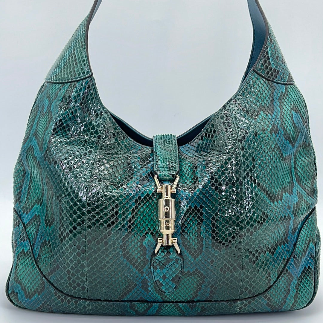 PRELOVED Gucci Large Emerald Green Python Jackie O Hobo Shoulder Bag