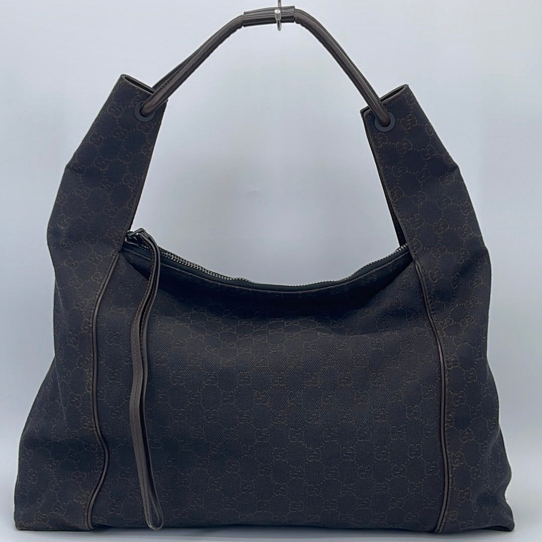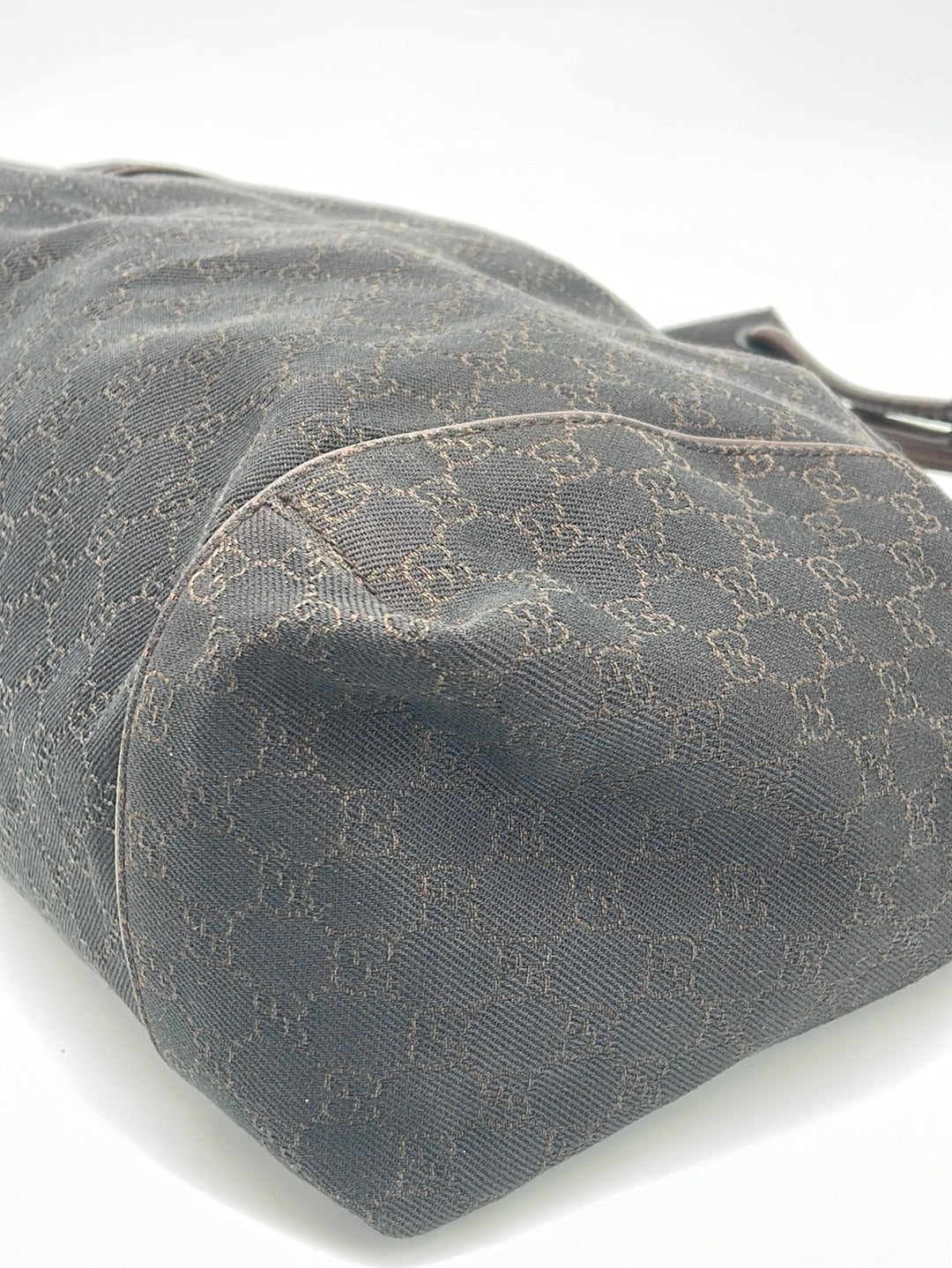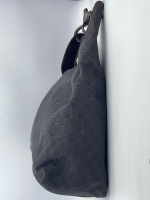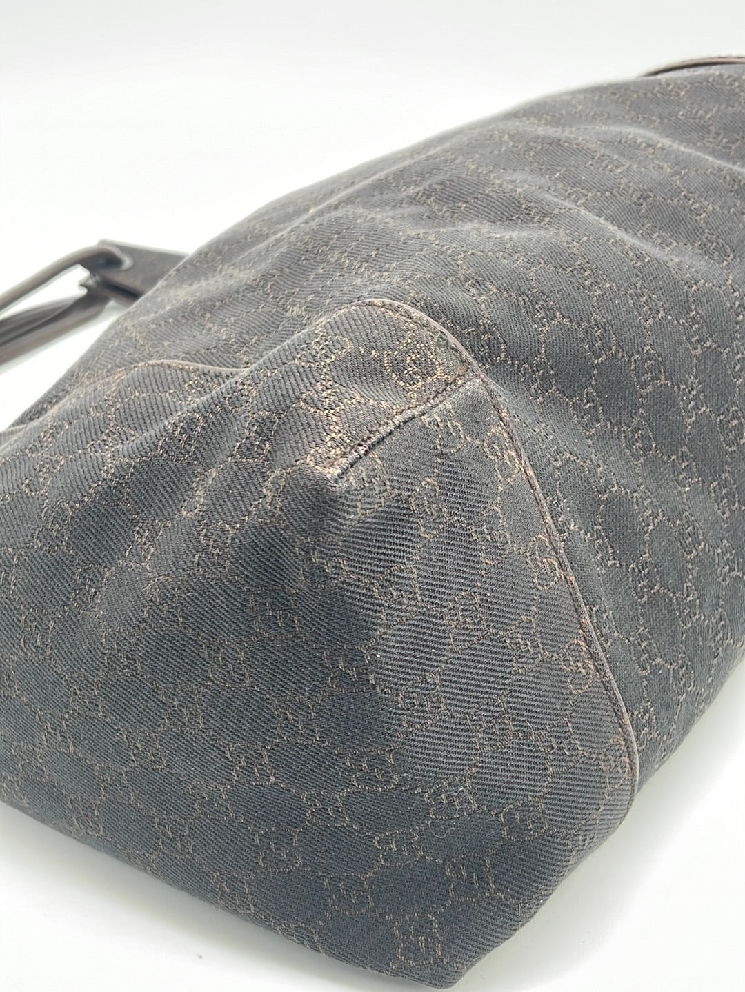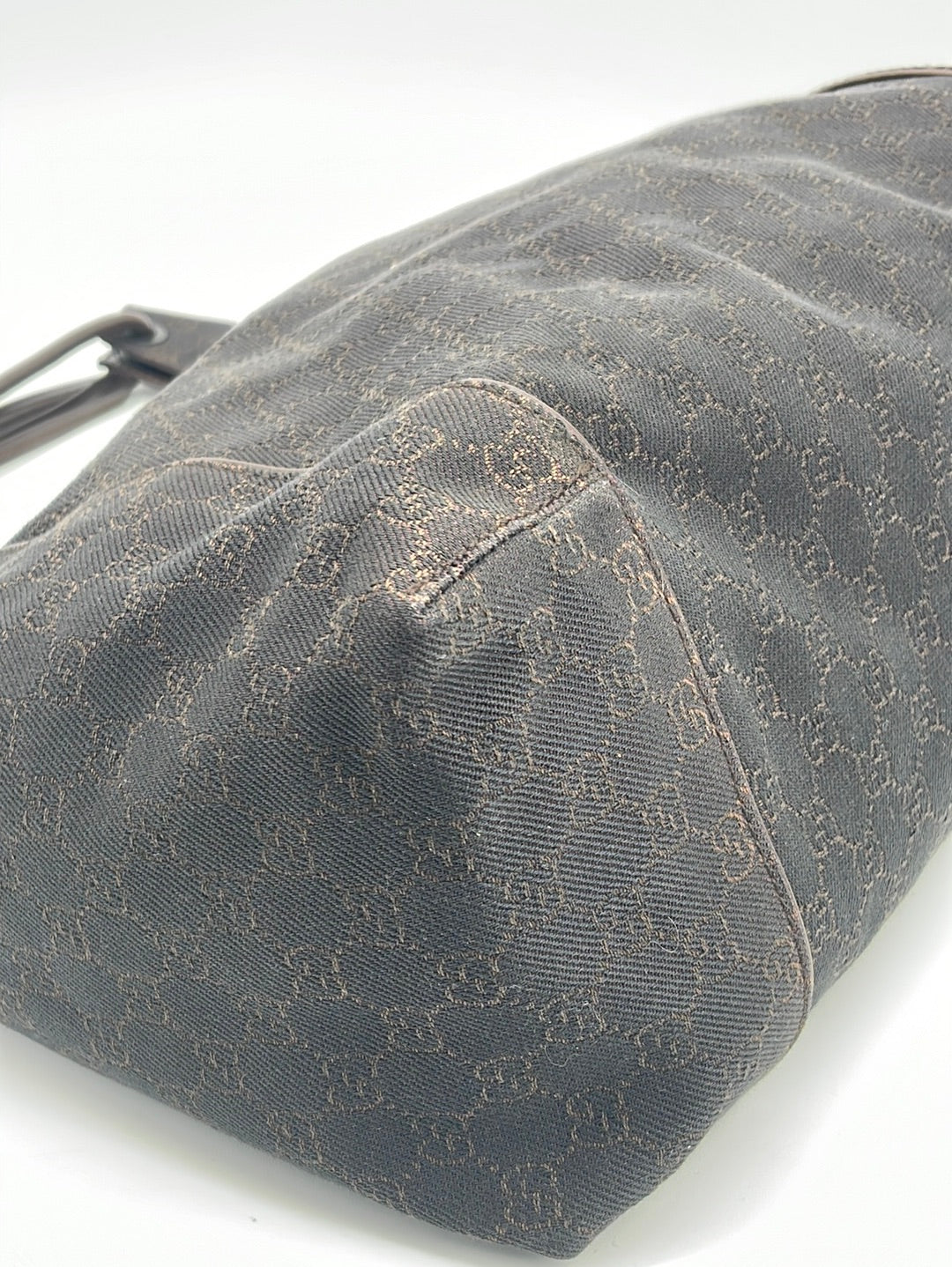 Preloved GUCCI Dark Brown GG Denim Canvas Large Shoulder Bag