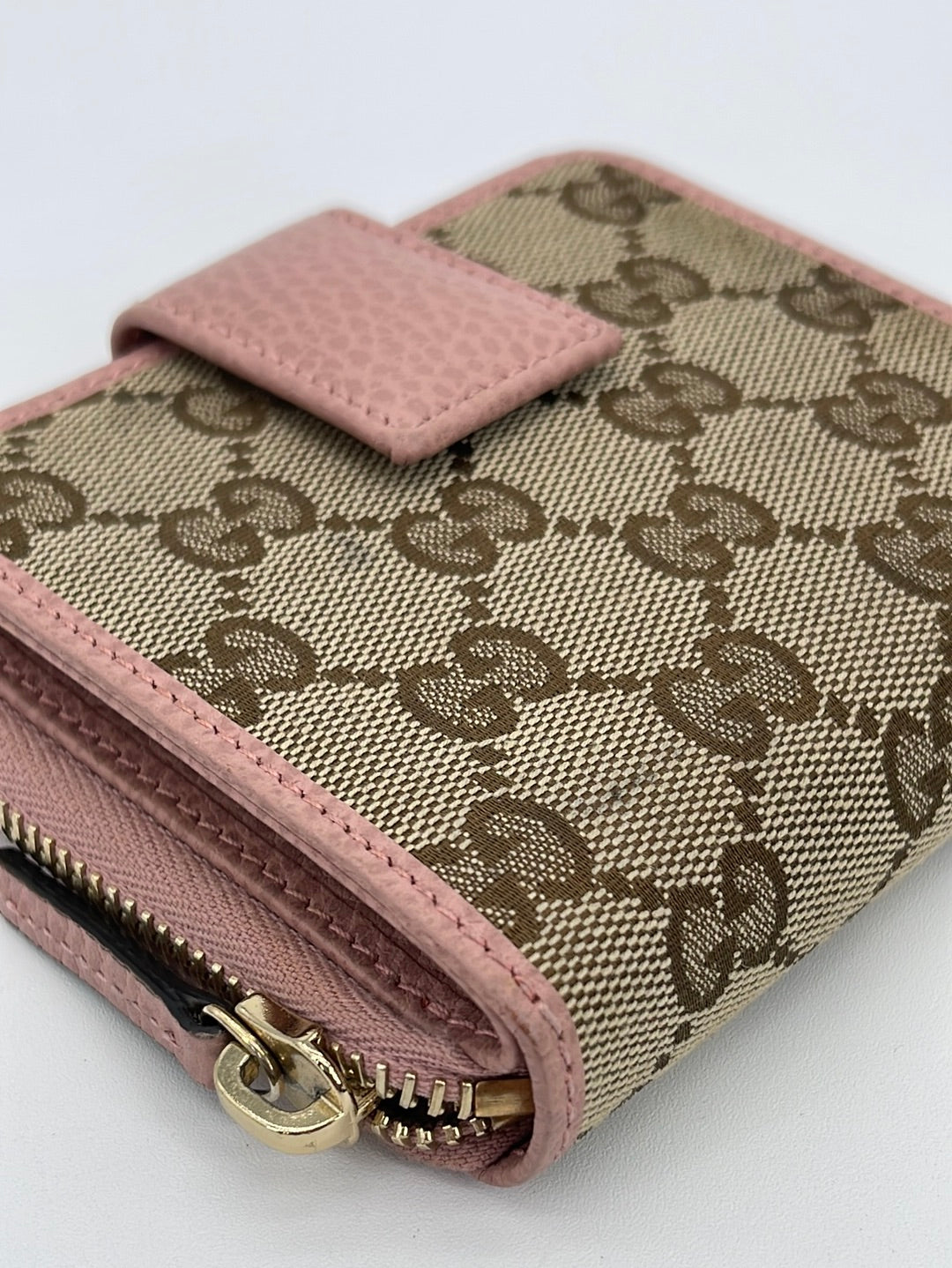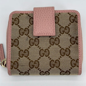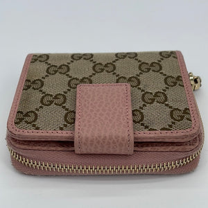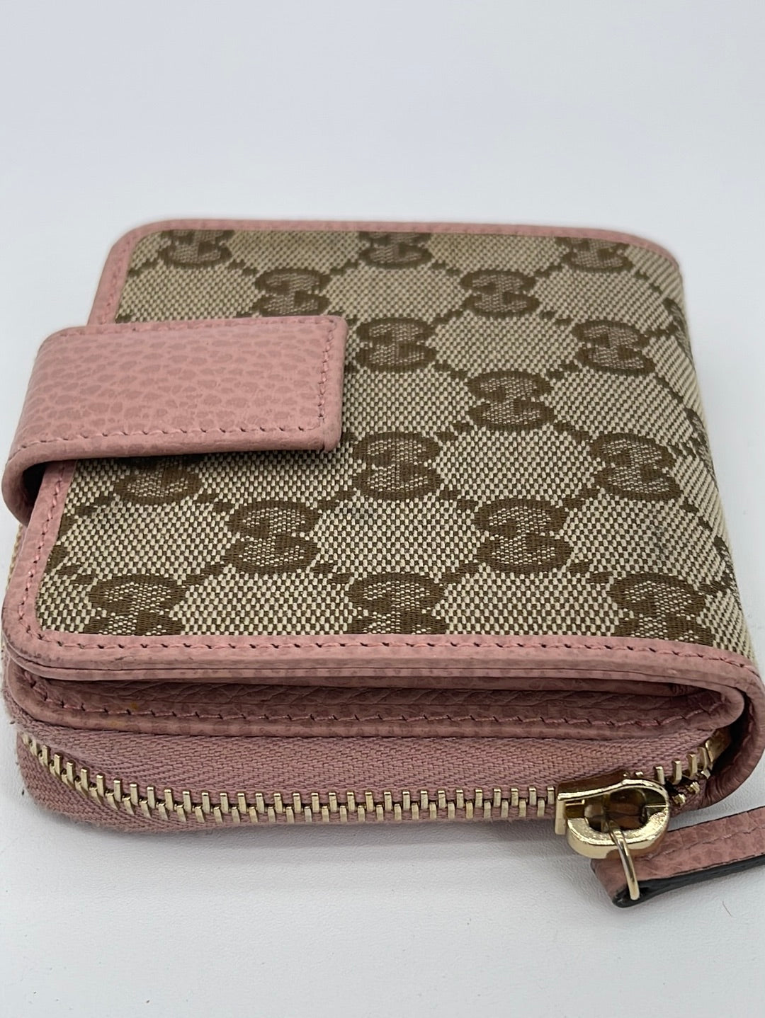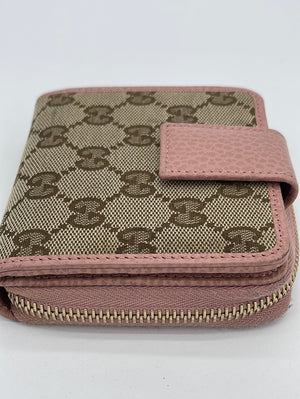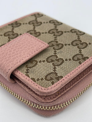 Preloved GUCCI GG Logo Canvas and Pink Leather Bifold Wallet