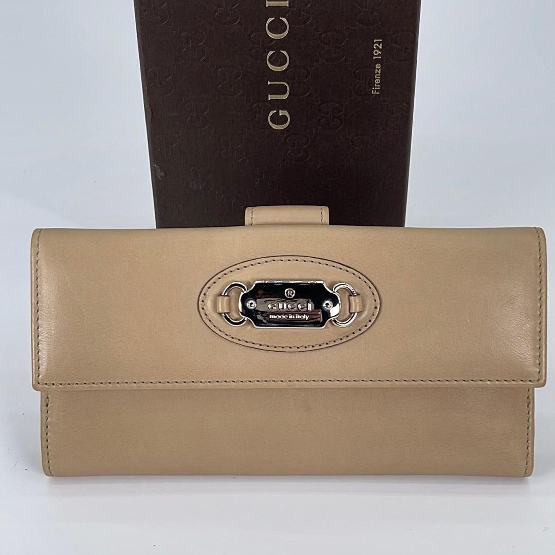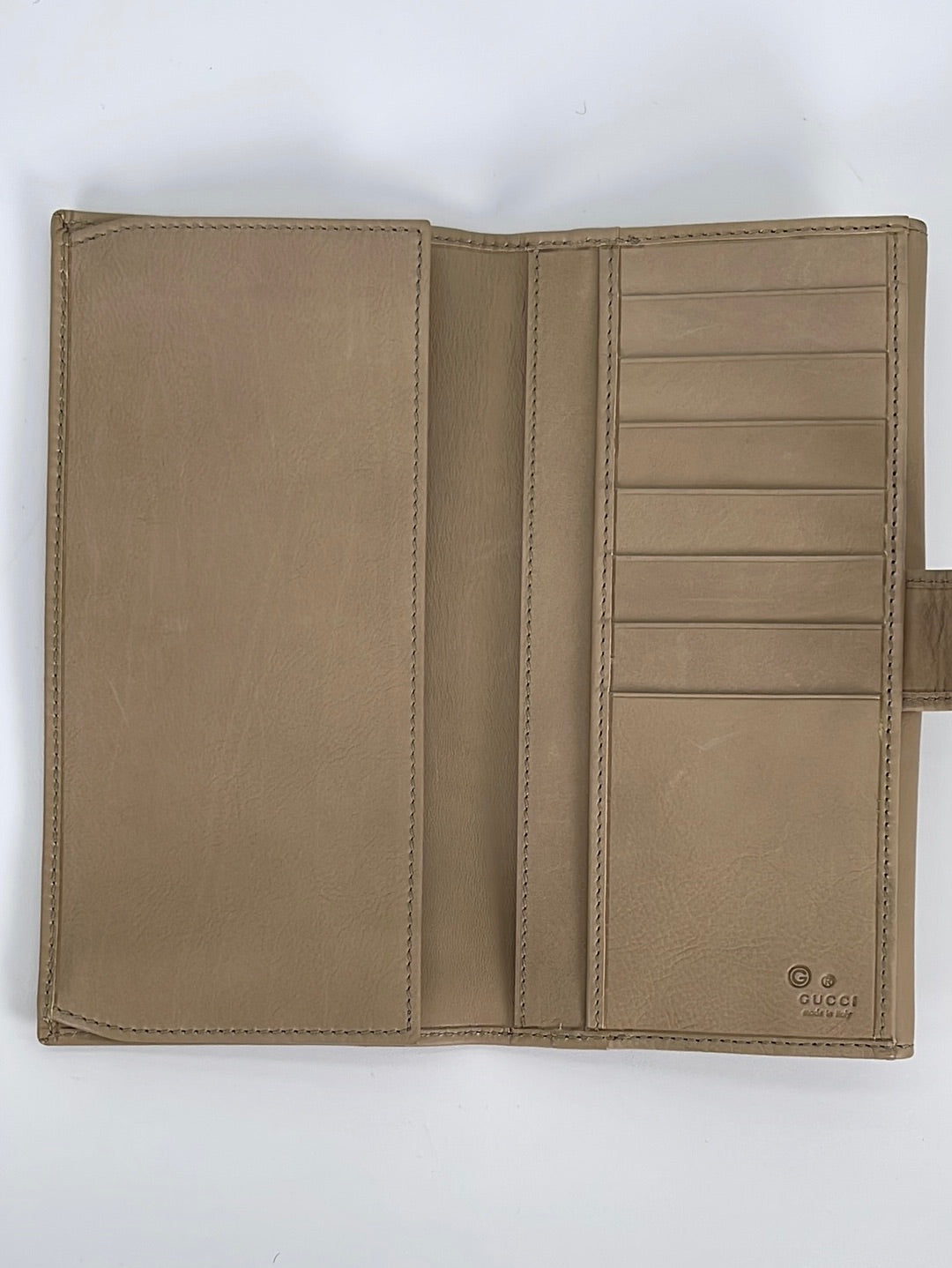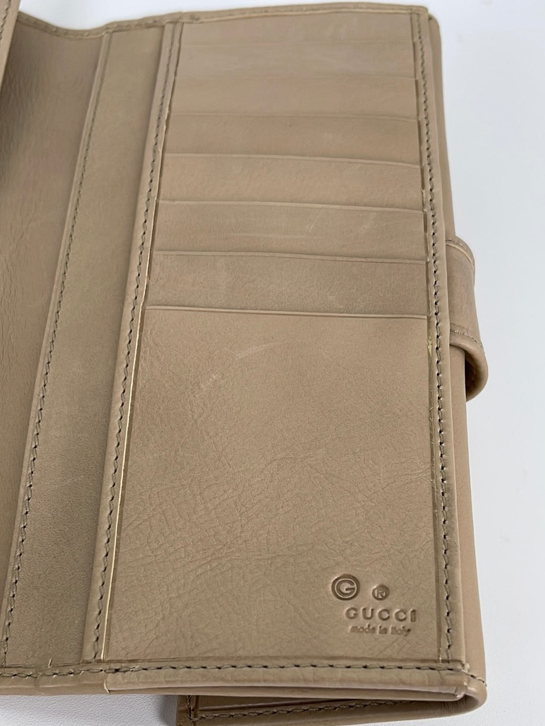 Preloved Gucci Tan Leather Continental Bifold Long Wallet with Conversion Kit for wallet on chain.