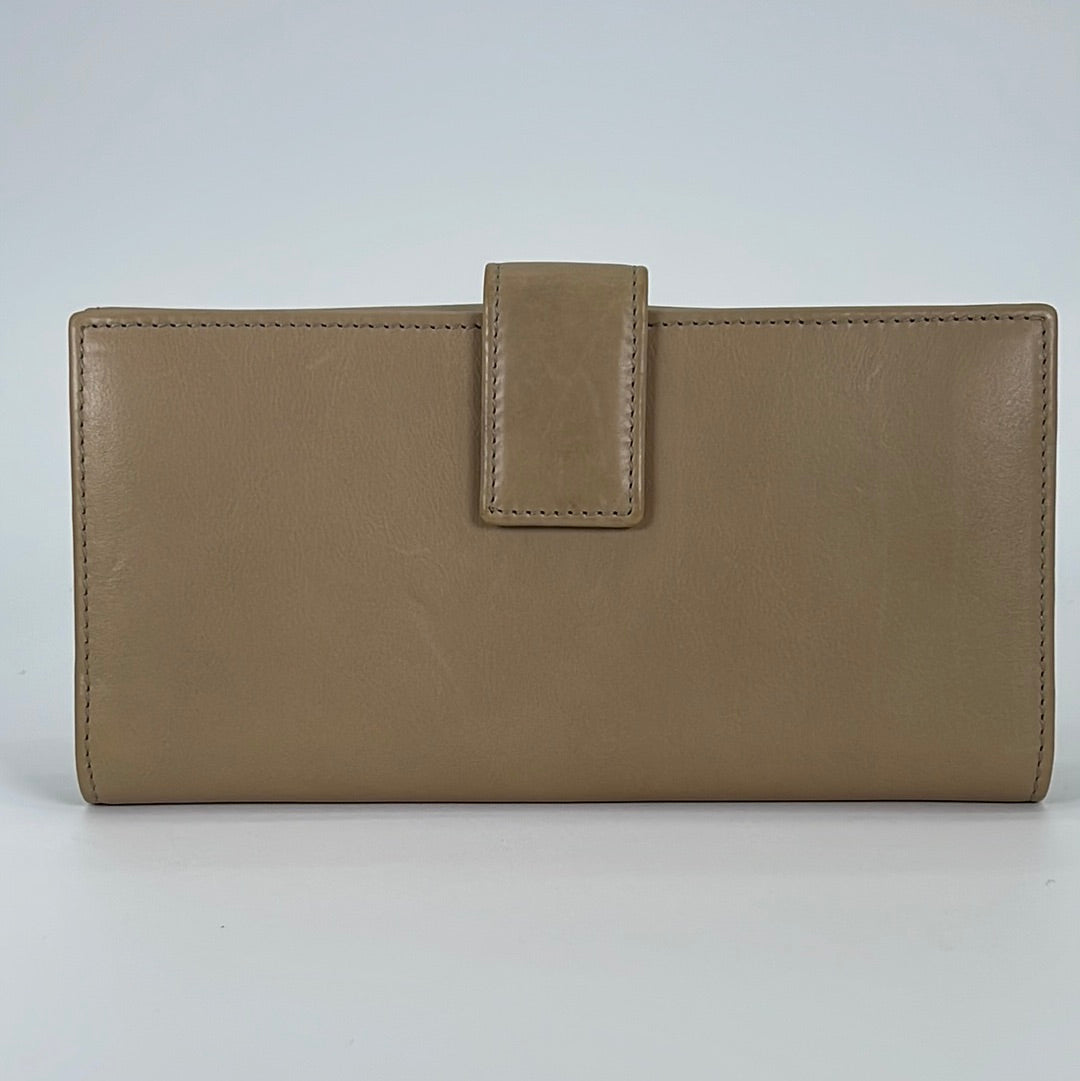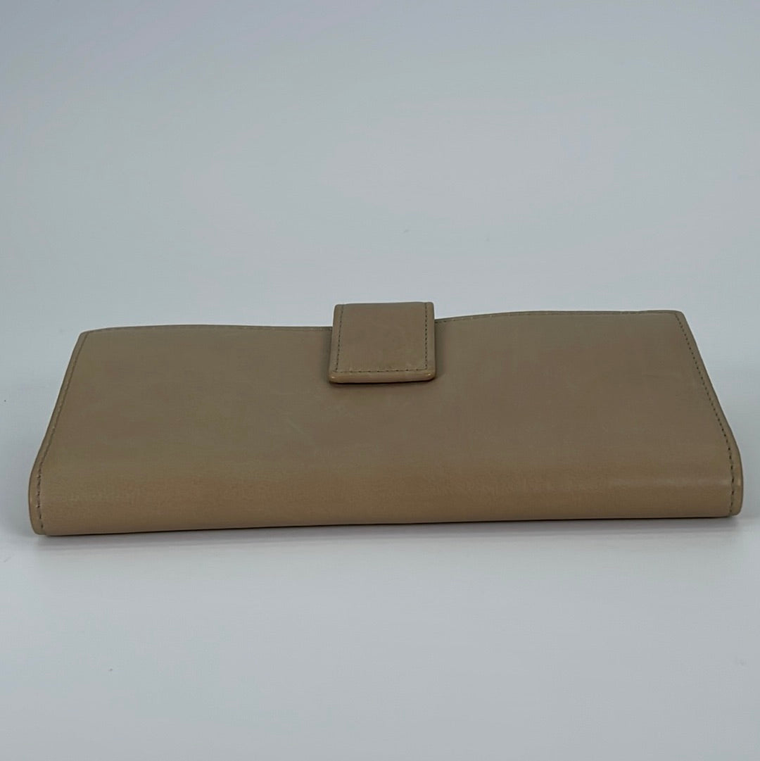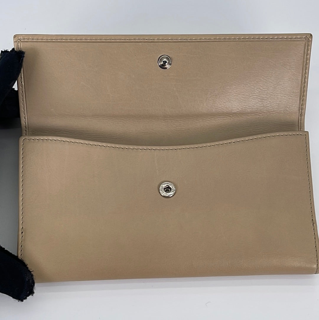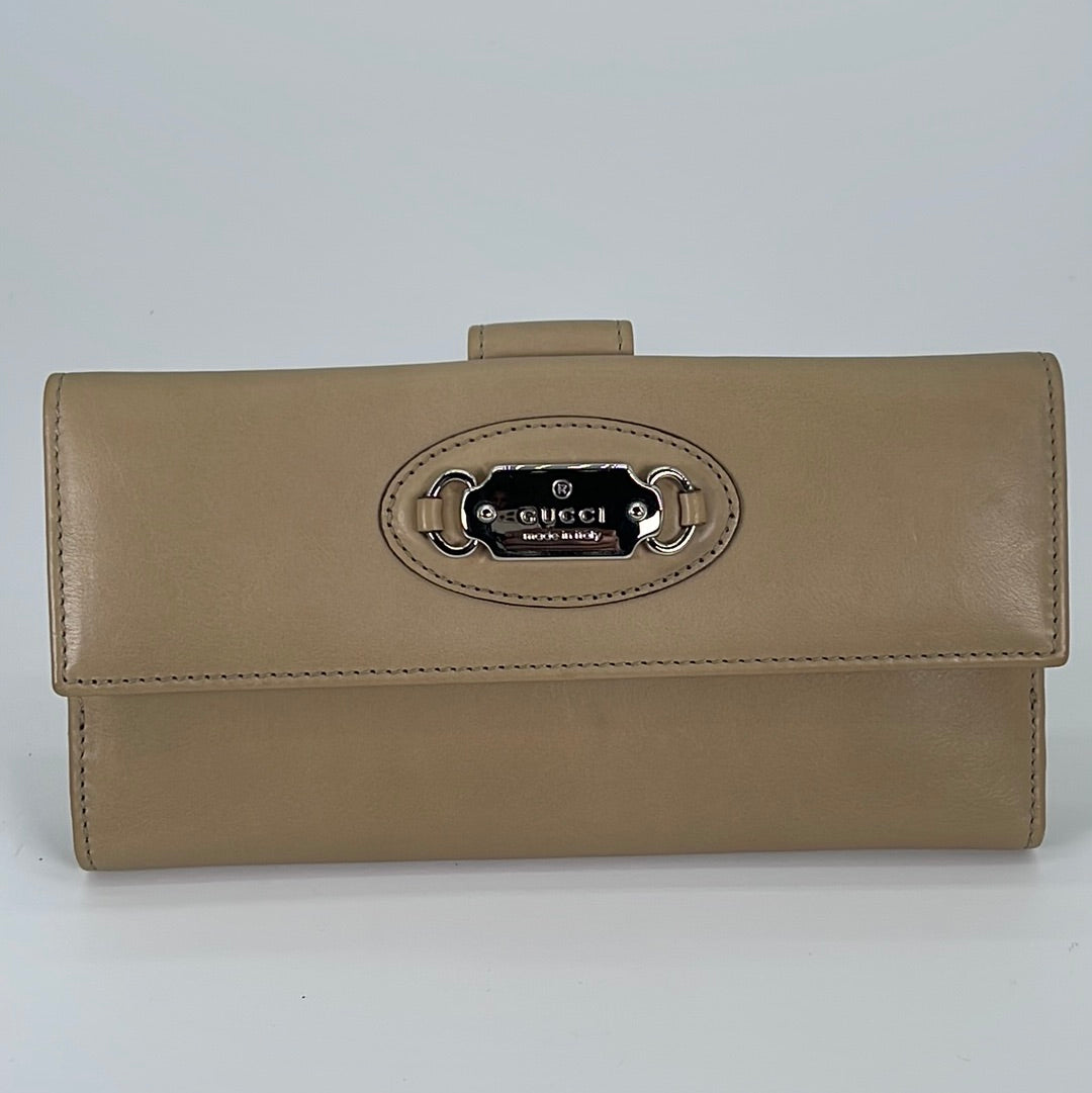 Preloved Gucci Tan Leather Continental Bifold Long Wallet with Conversion Kit for wallet on chain.