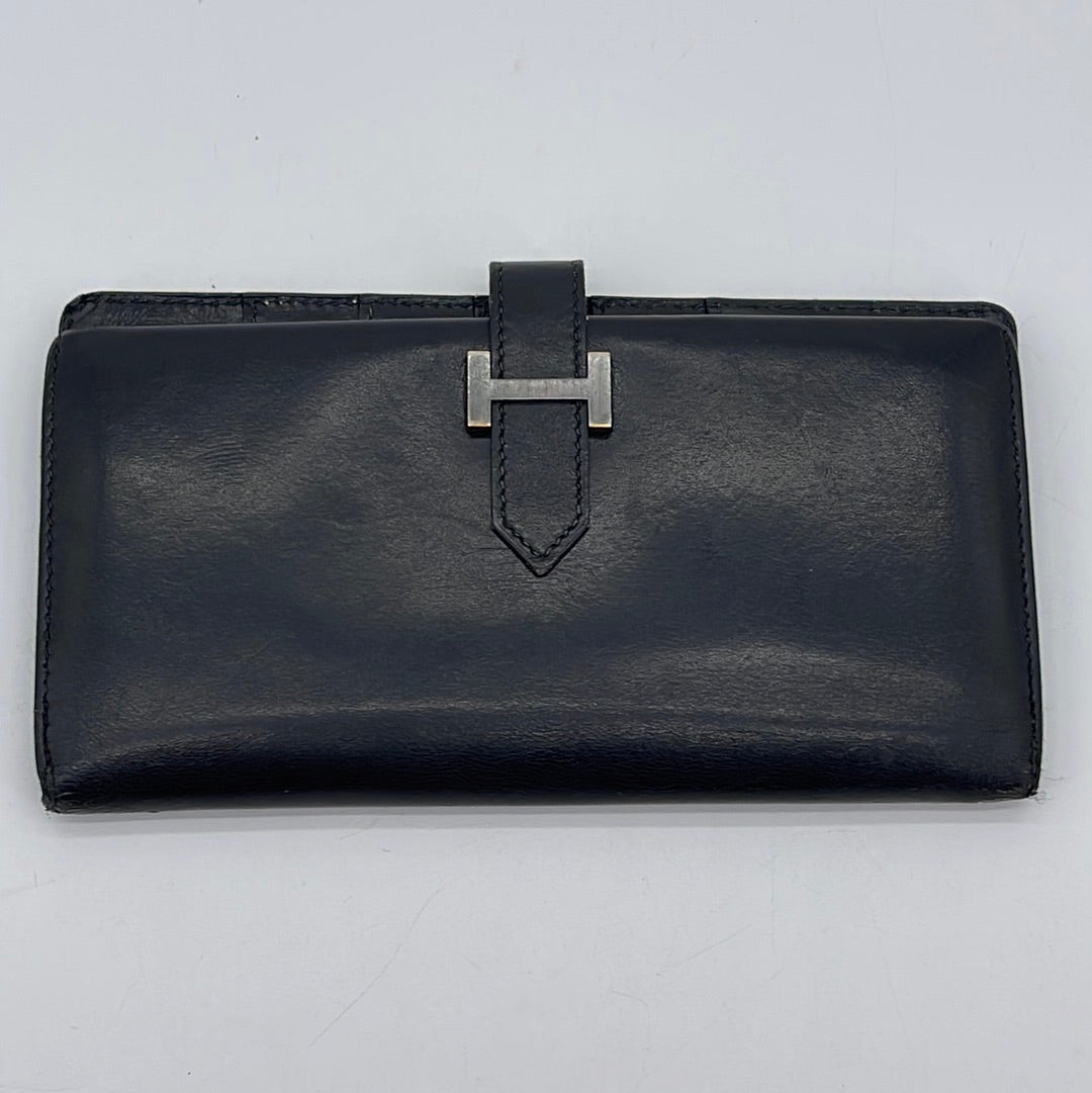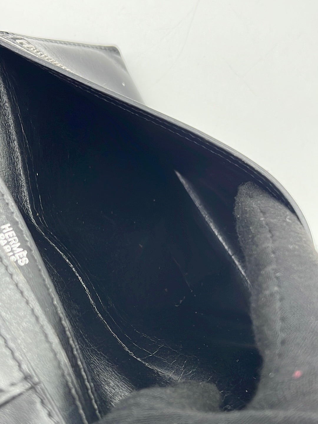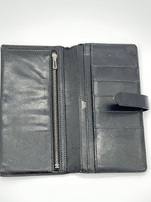 PRELOVED - Good used condition. Exterior has some light scratches and marks from wear. Small nick in leather on backside of wallet near closure. Interior is clean with wear. See photos!
