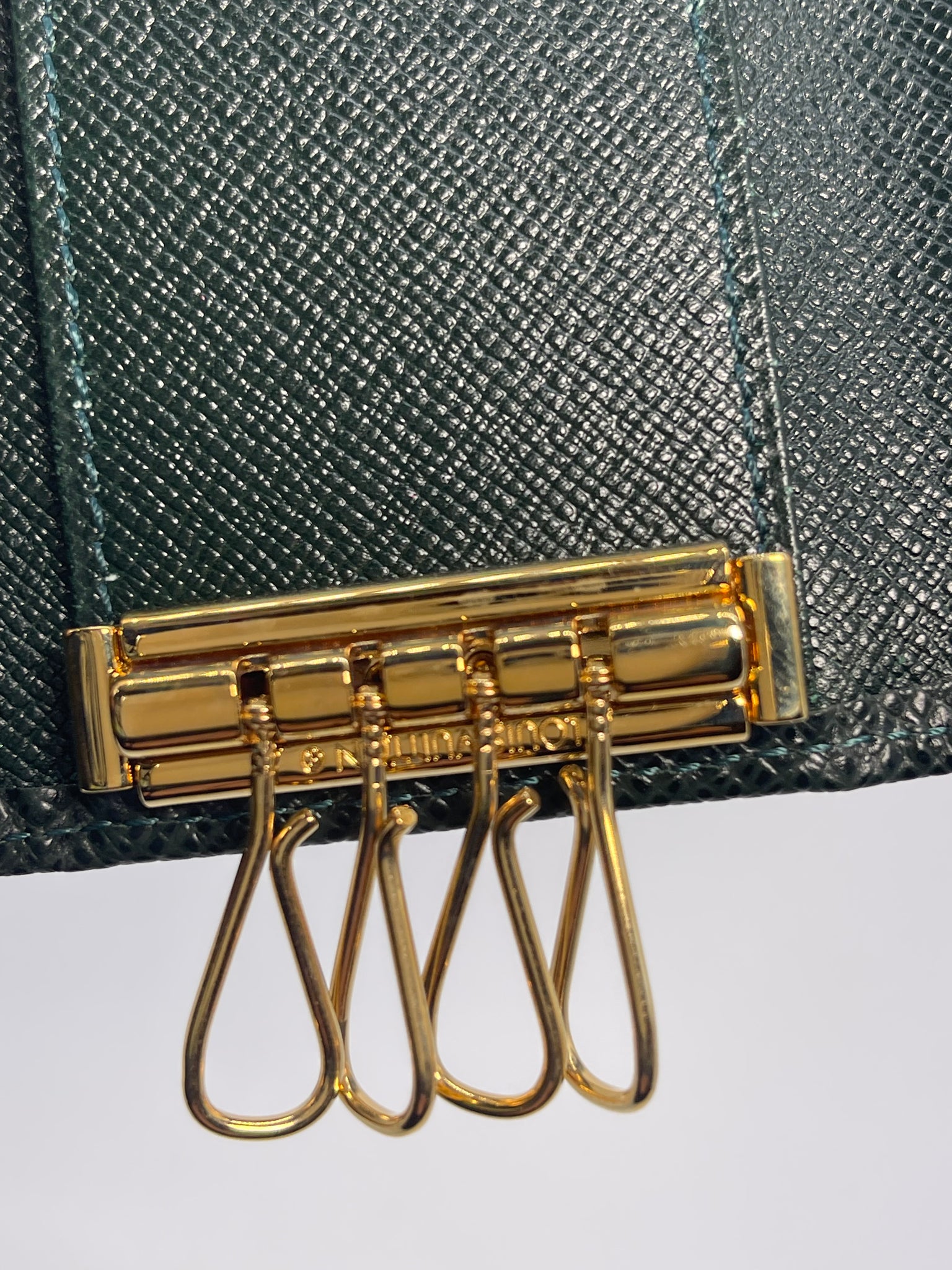 PRELOVED Louis Vuitton Green Taiga Leather Multicles 4 Key Holder will be your new favorite accessory. It is perfect for slipping into your handbag or pocket for holding six keys.