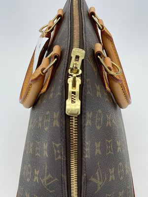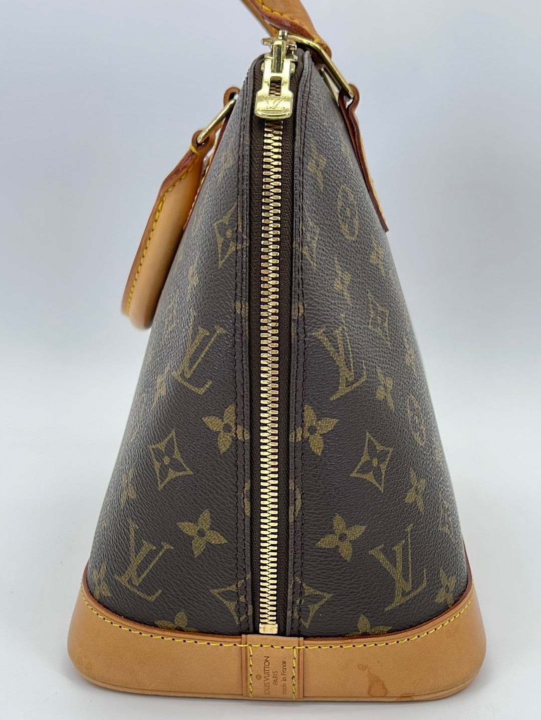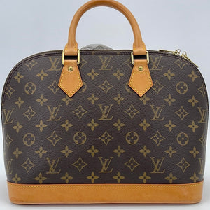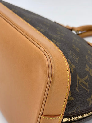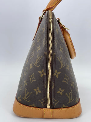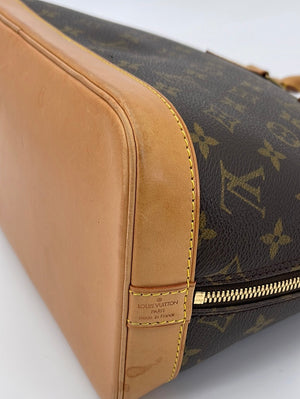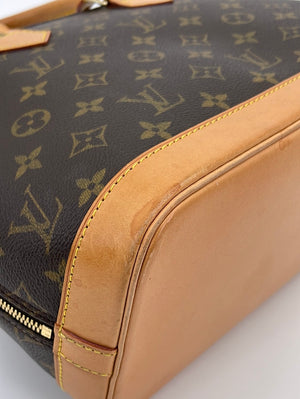 PRELOVED Louis Vuitton Alma PM Monogram Handbag with two leather handles.