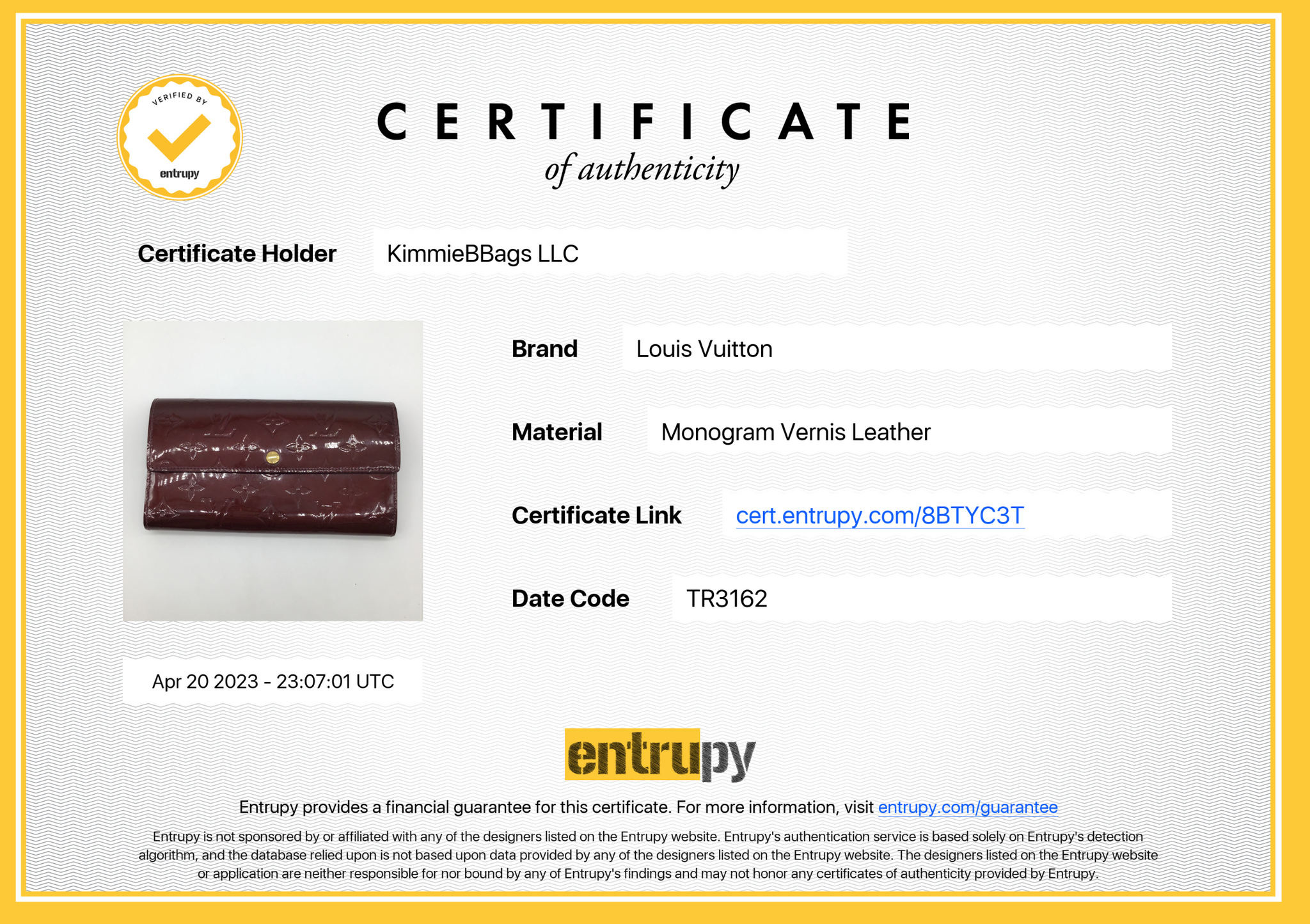 Preloved Louis Vuitton Burgandy Monogram Vernis Sarah Wallet