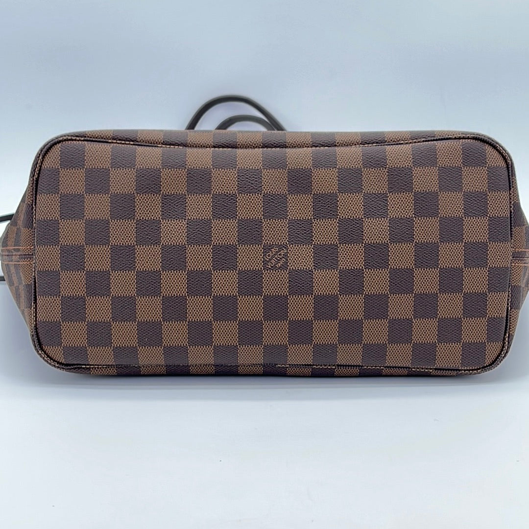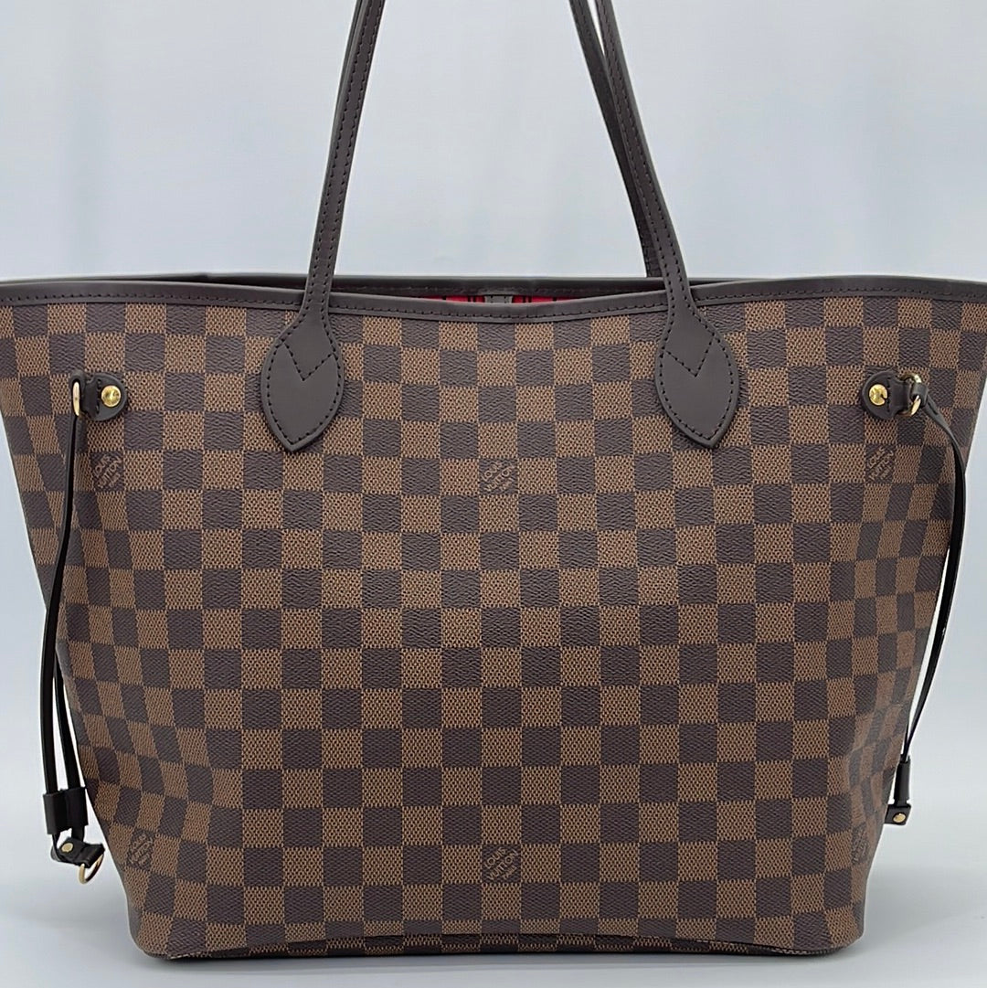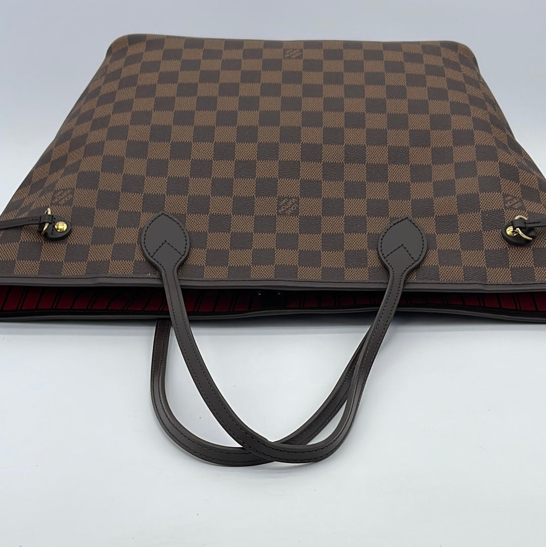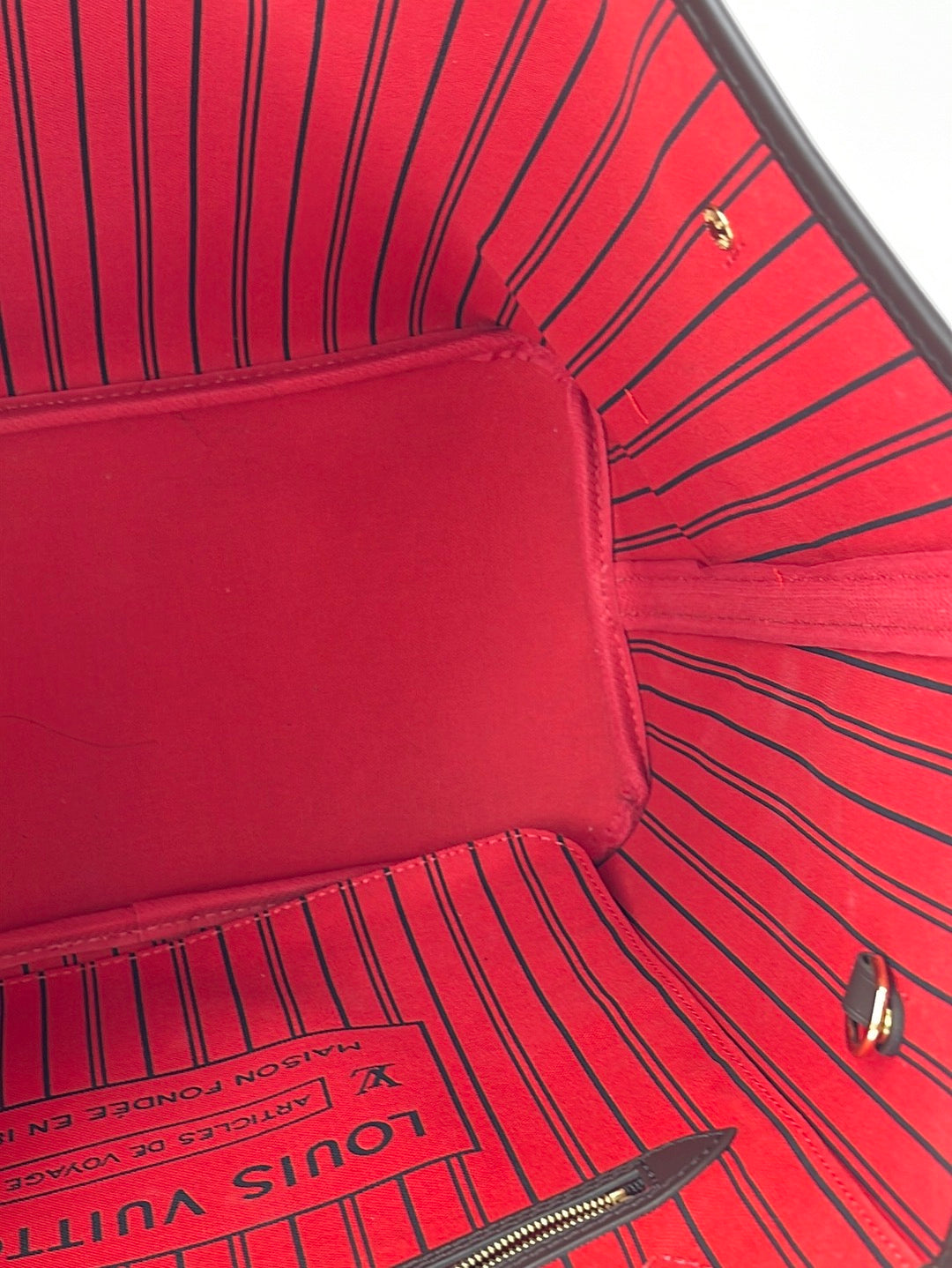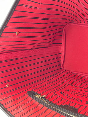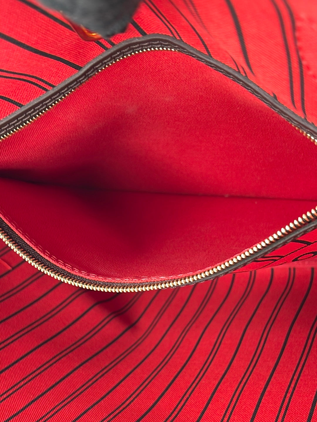 Preloved Louis Vuitton Damier Ebene Neverfull MM Tote Bag with Red Interior