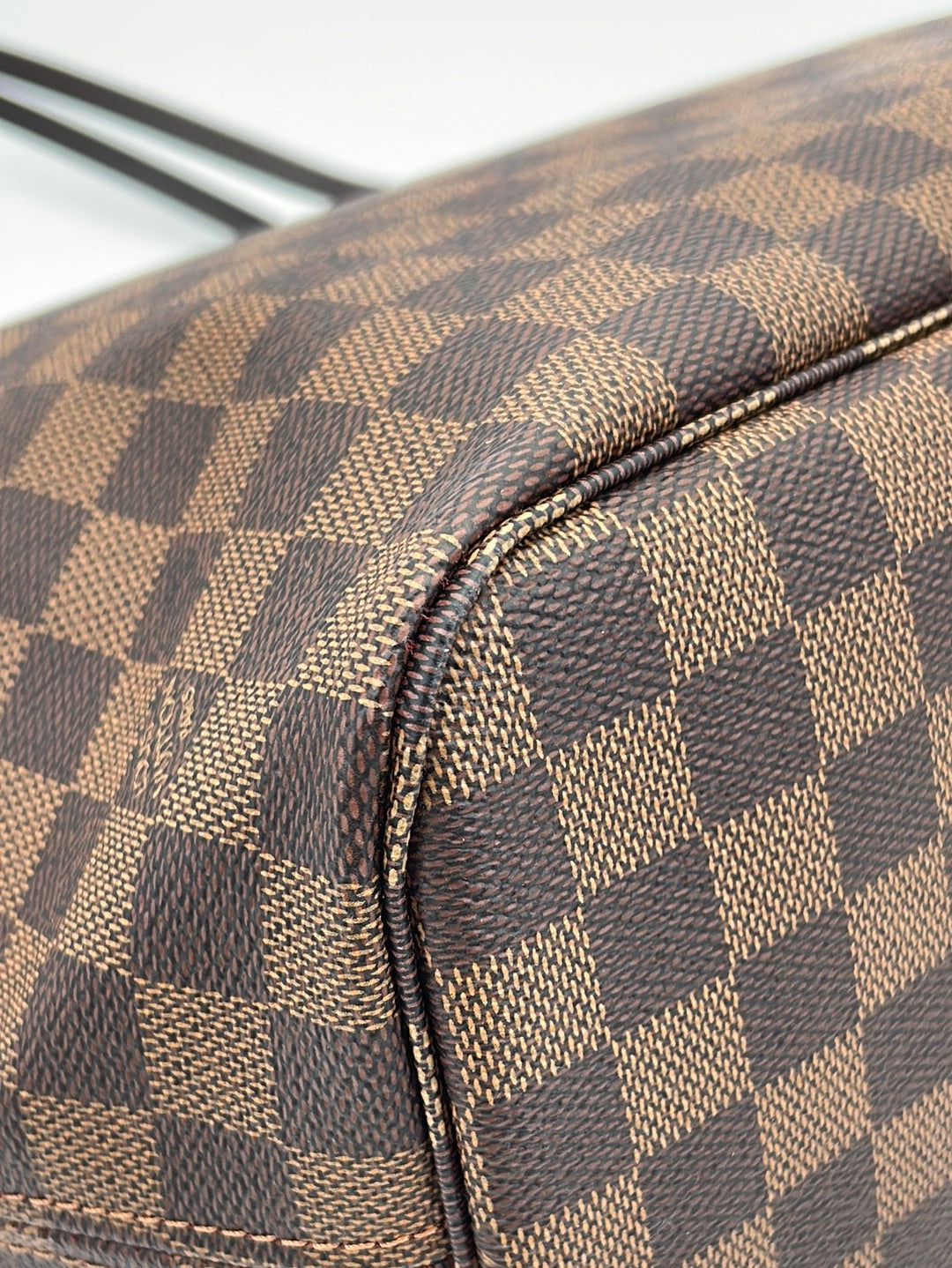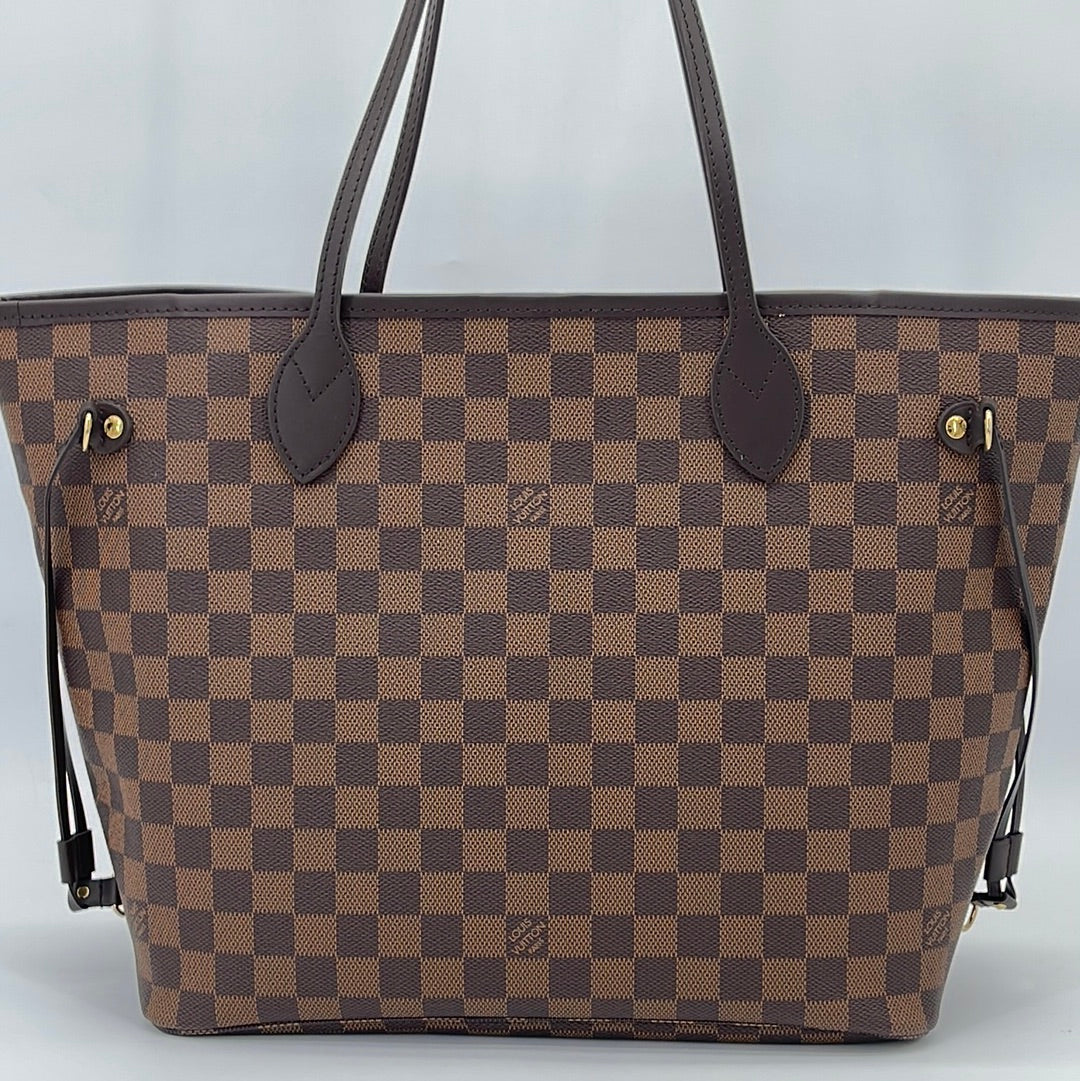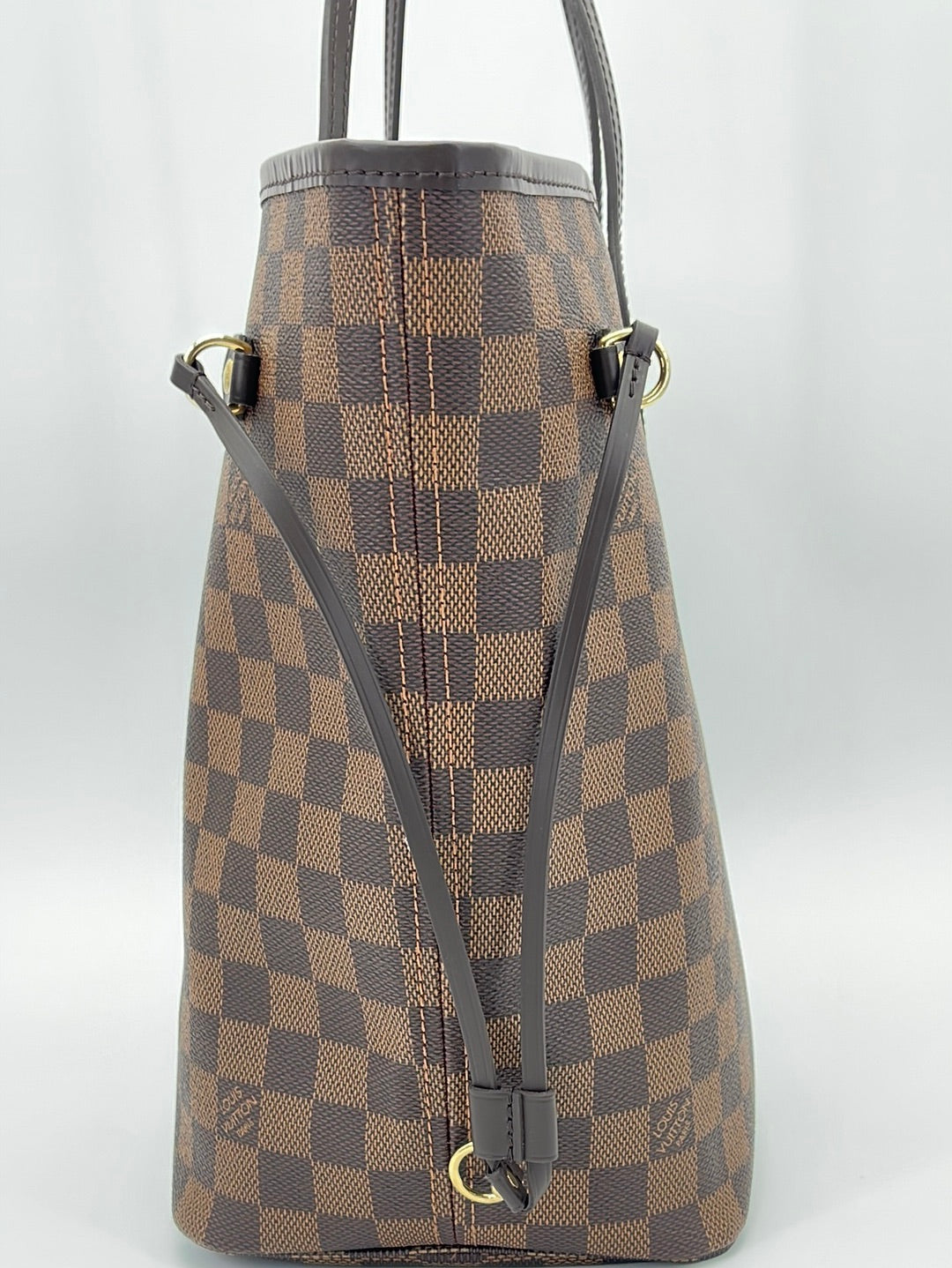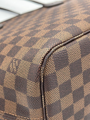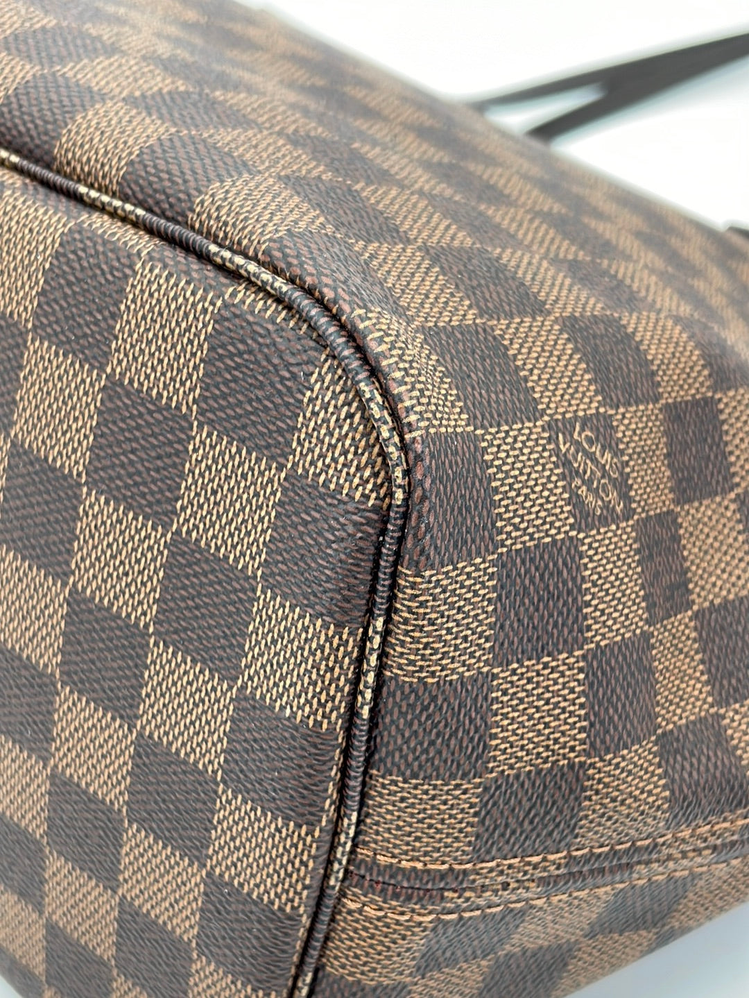 Preloved Louis Vuitton Damier Ebene Neverfull MM Tote Bag with Red Interior