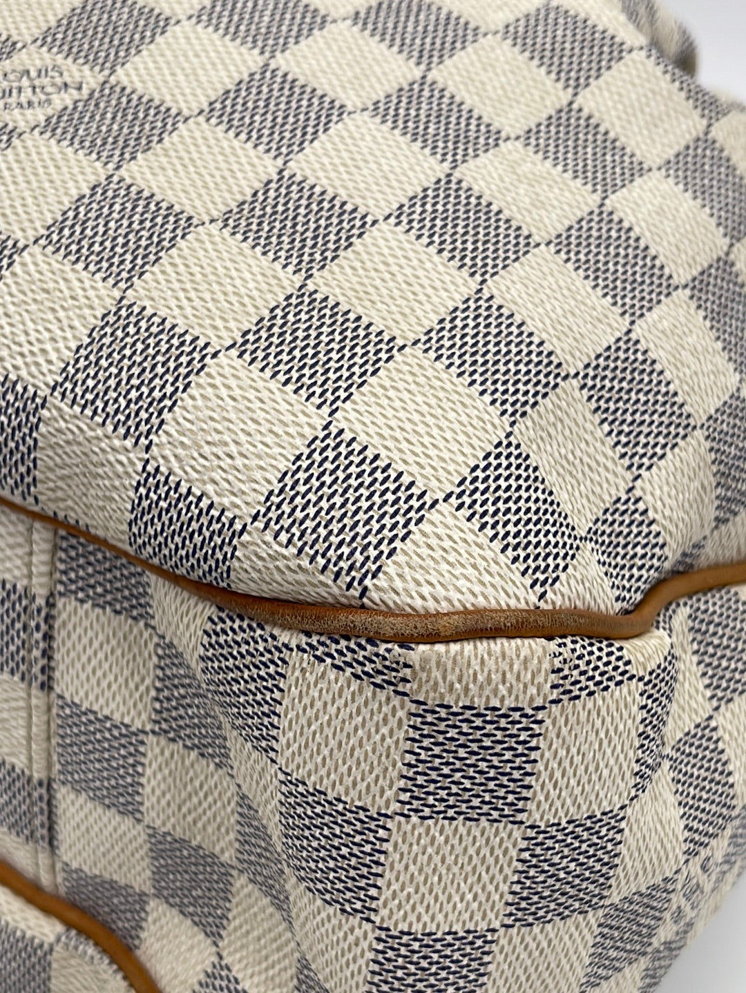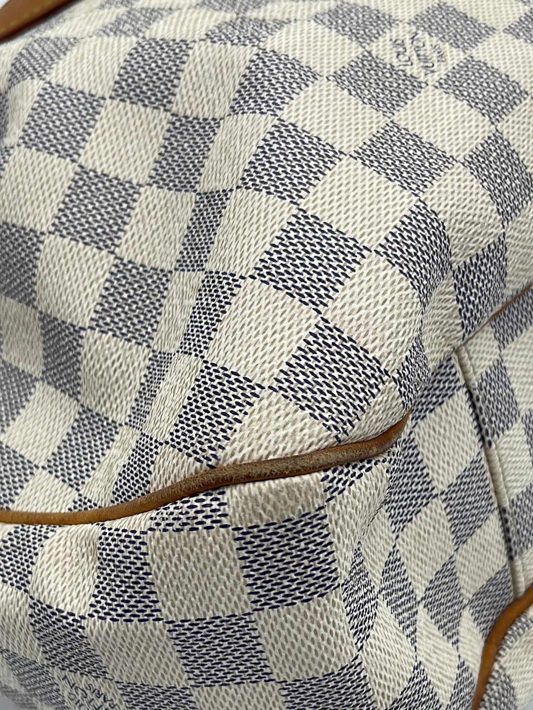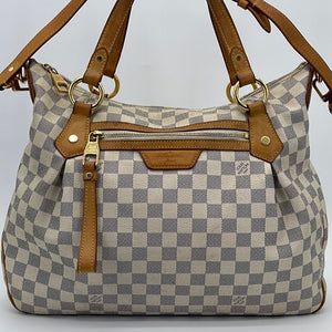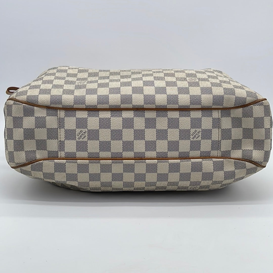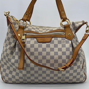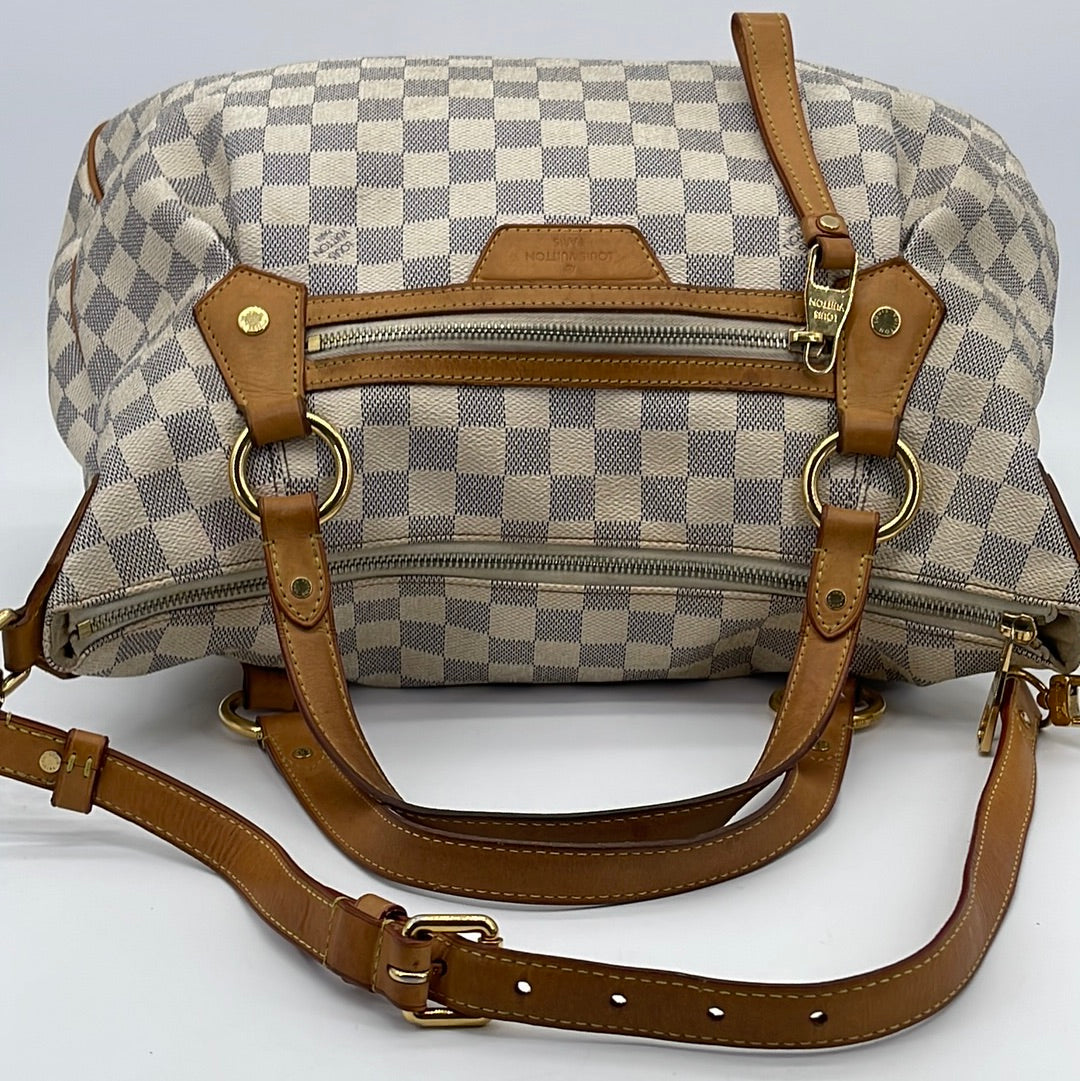PRELOVED Louis Vuitton Damier Azur Evora MM Bag with shoulder strap.