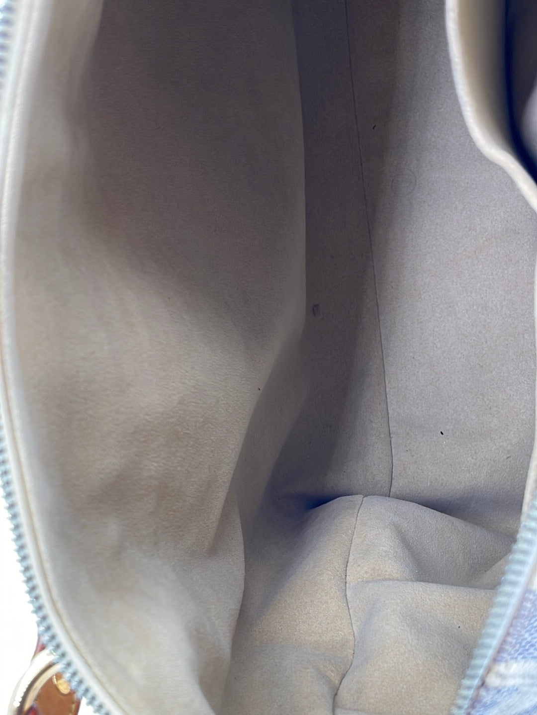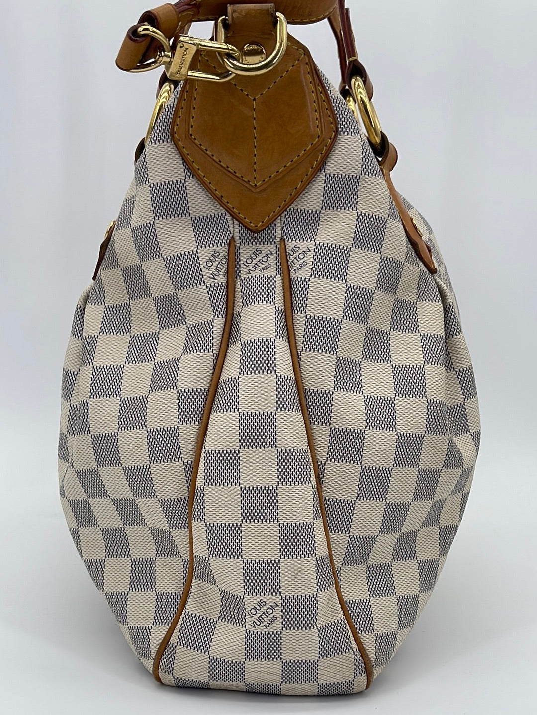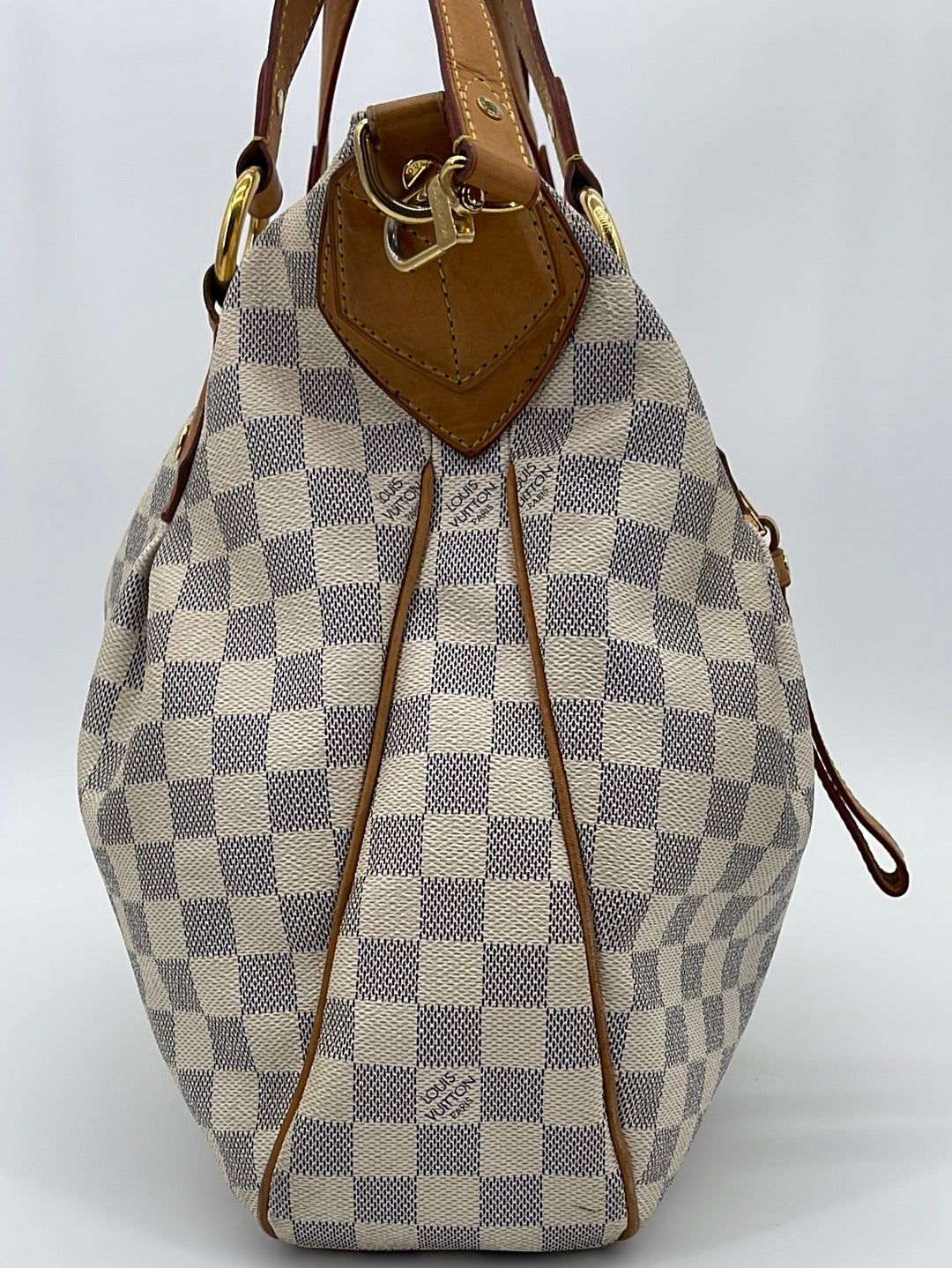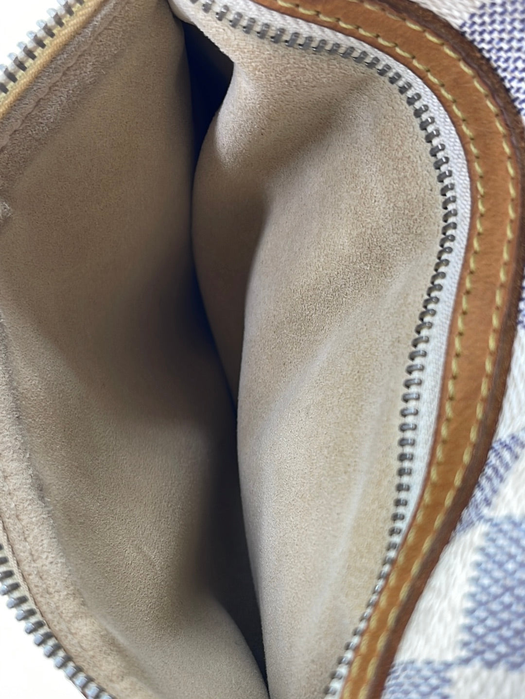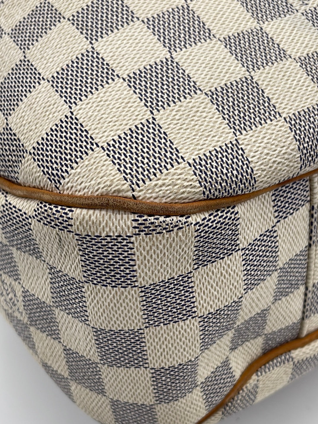 PRELOVED Louis Vuitton Damier Azur Evora MM Bag with shoulder strap.