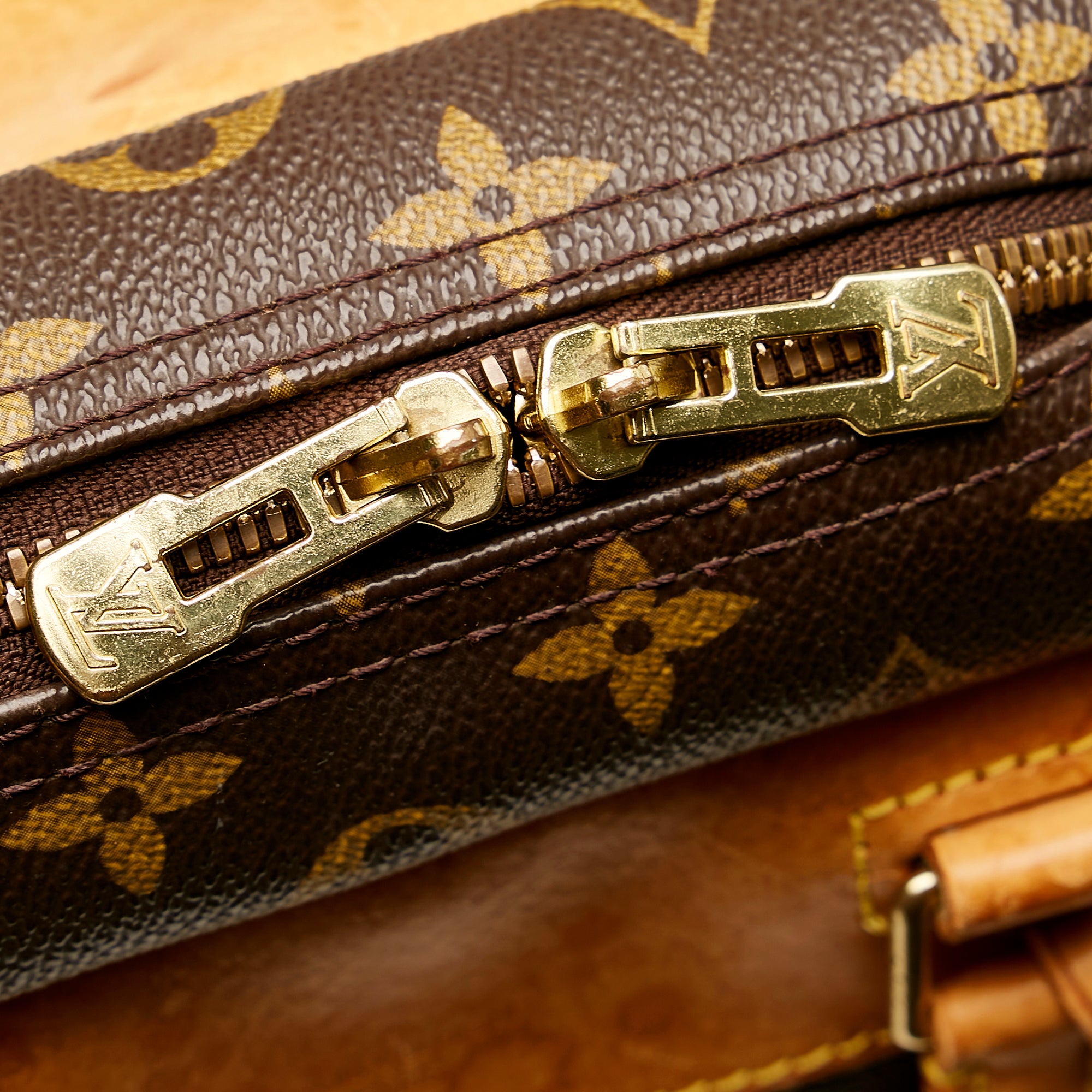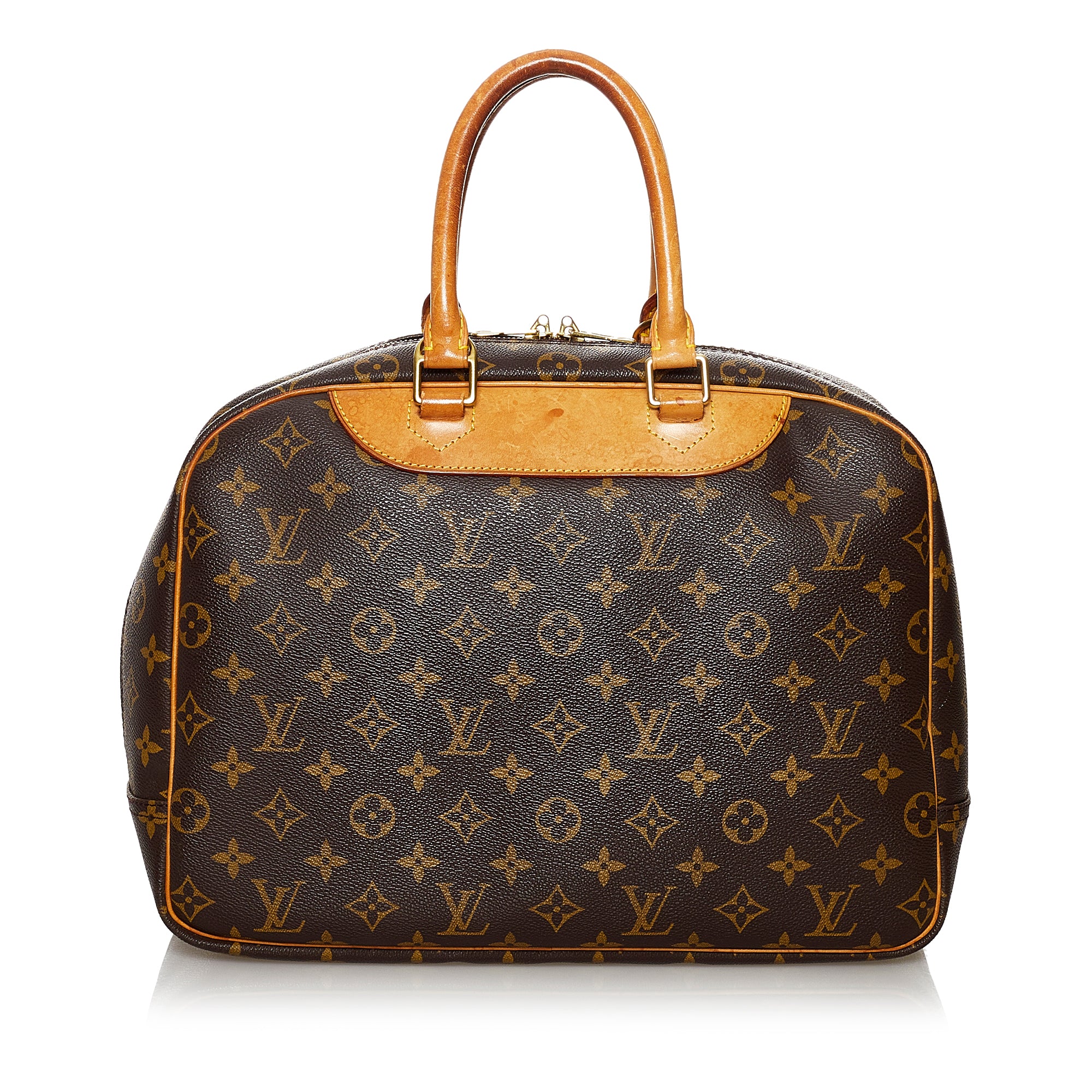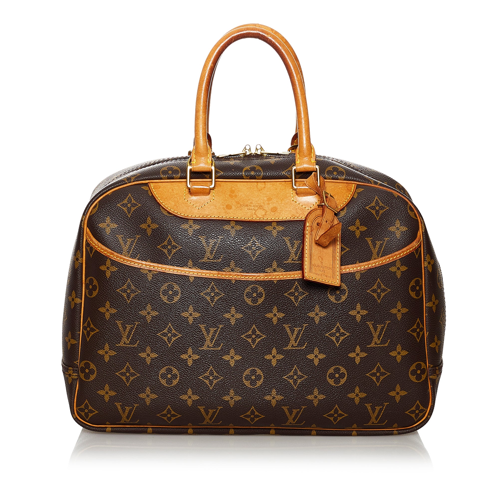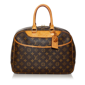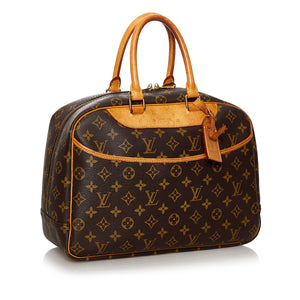 Preloved Louis Vuitton Deauville Monogram Tote. This is the larger version of the Trouville and is famous for being a spacious vanity bag. This bag has four compartment pockets.