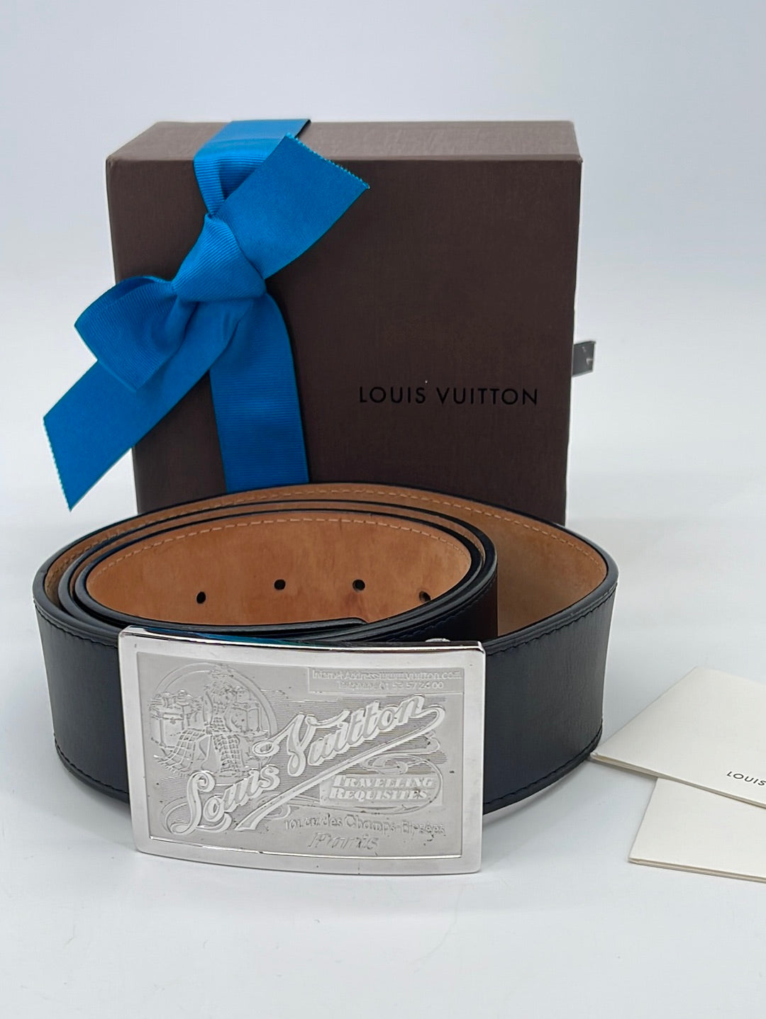 PRELOVED Louis Vuitton Men's Black Leather and Silver Travelling Requesites Belt
