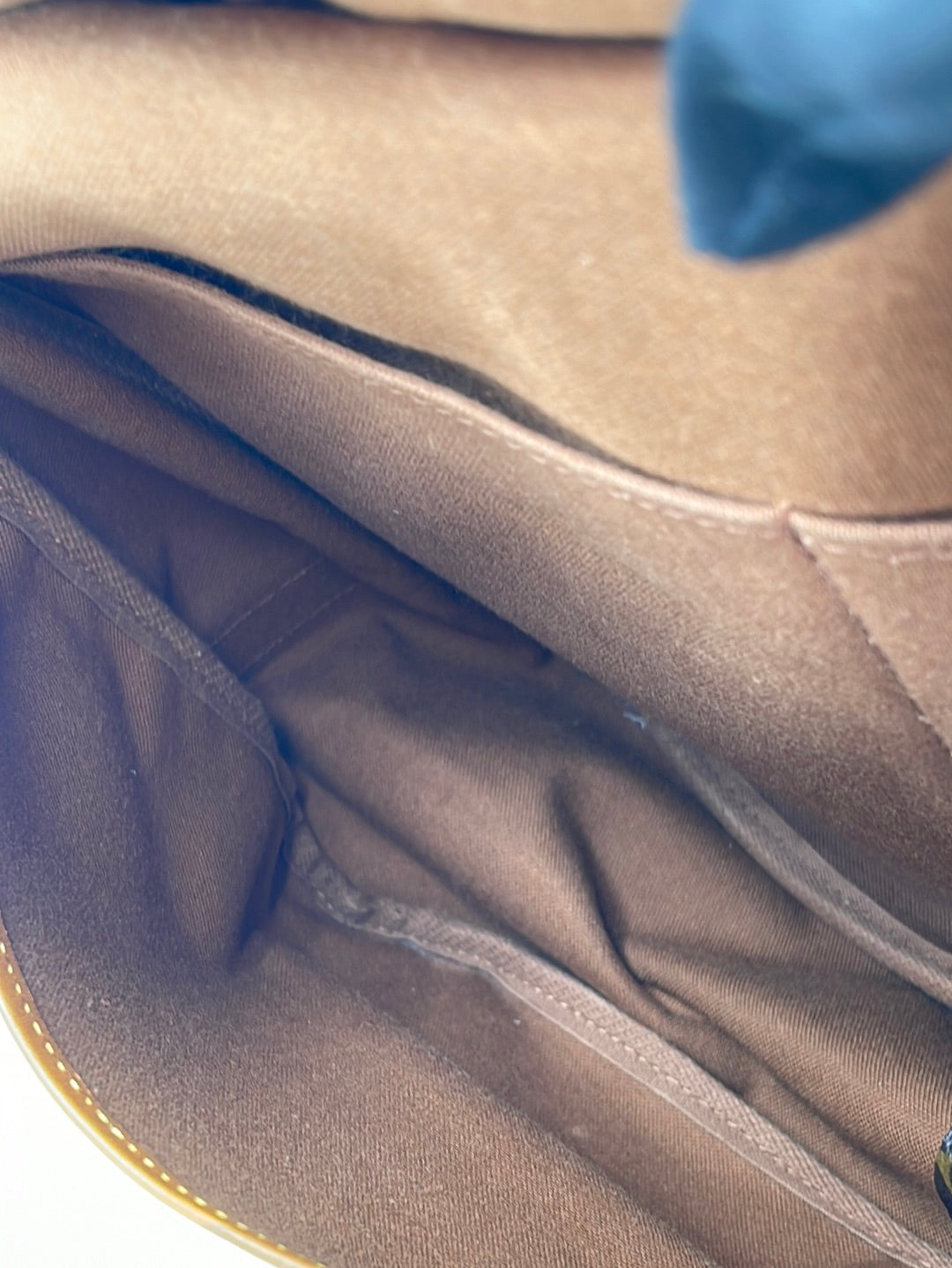 PRELOVED Vintage - Good used condition. The exterior canvas is clean. The leather trim and straps have wear. The leather piping has wear. The interior is clean! Gold hardware has signs of wear. See photos!