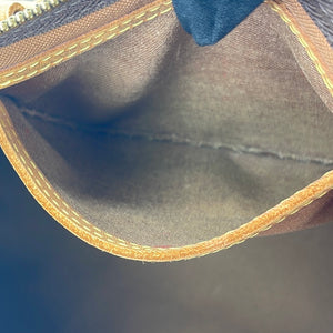 PRELOVED:  Good Used Condition. Exterior canvas is clean. Leather is a dark patina. Handles have some wear. Interior is clean. Non branded shoulder strap attached. See photos!