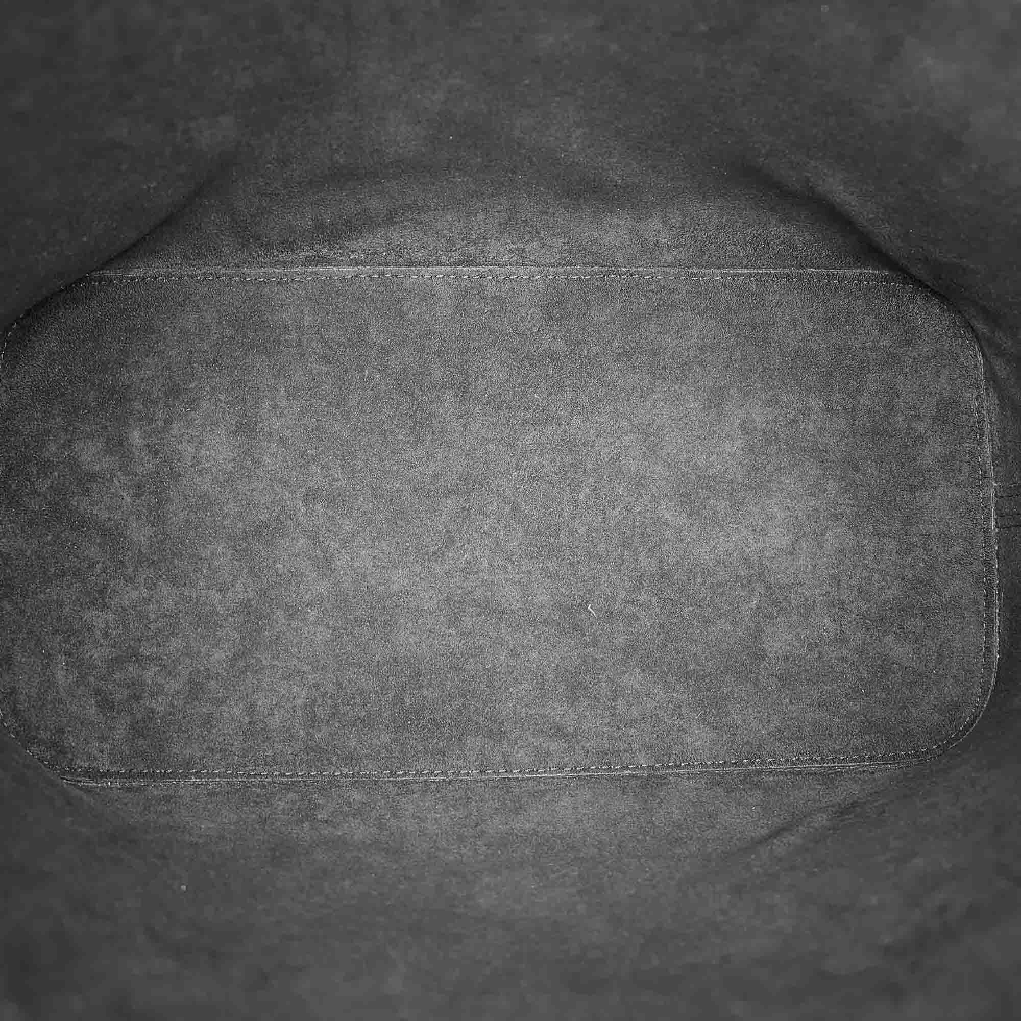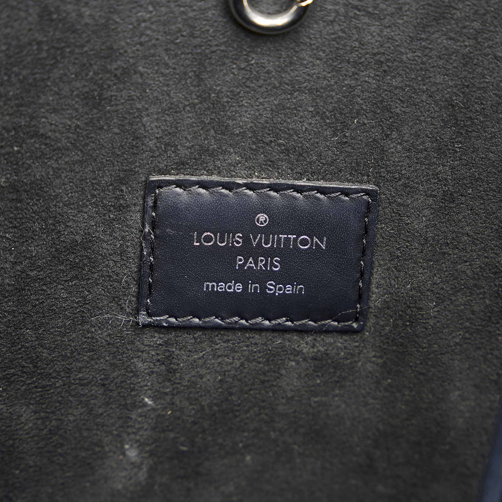 The Neverfull MM features an Epi leather body, flat straps, open top with lobster claw clasp, and side drawstrings.