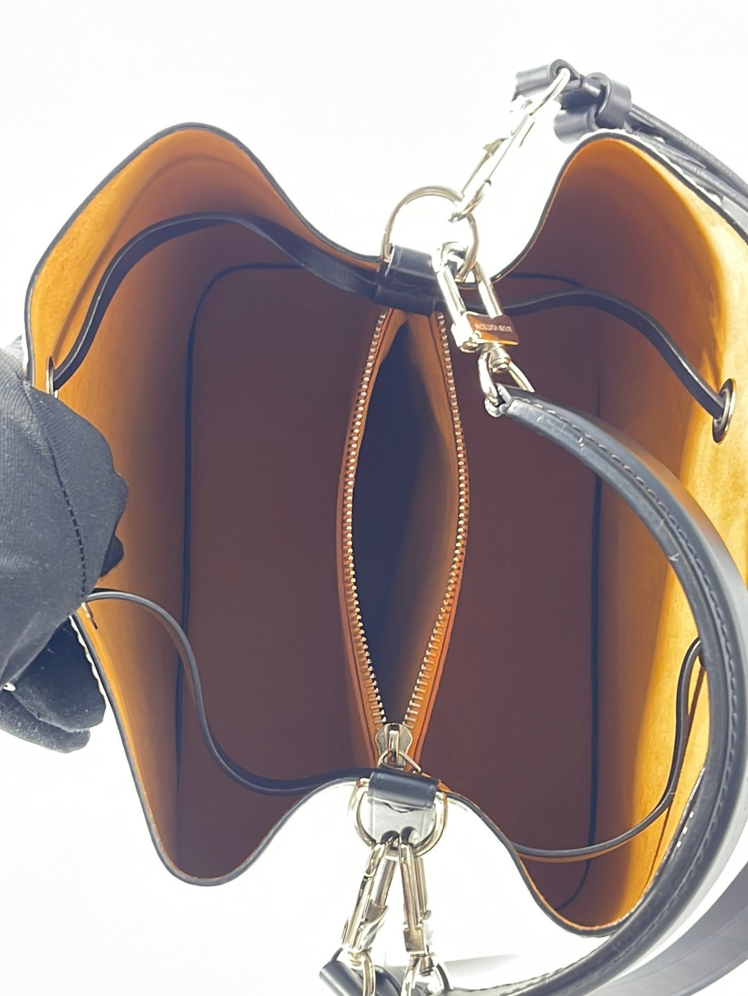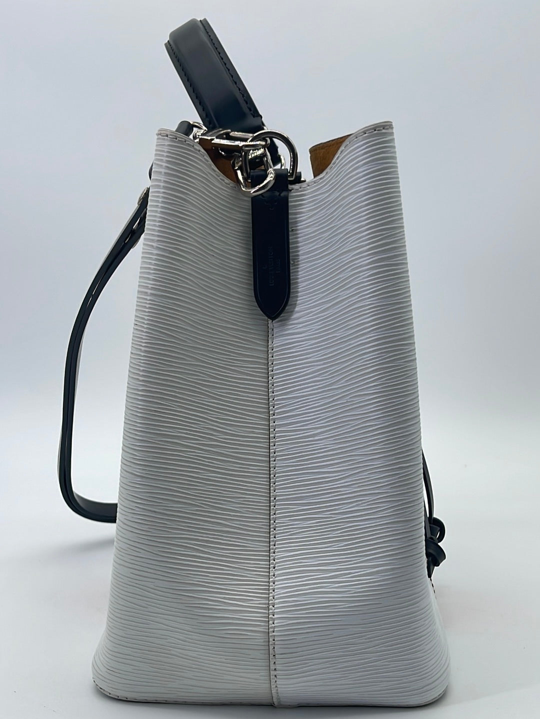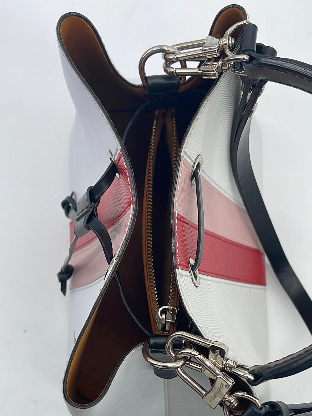 Preloved LOUIS VUITTON Limited Edition White, Red, and Pink Epi Stripes Neo Noe 2WAY Shoulder Bag The Neonoe features an epi leather body, a detachable flat leather strap, a drawstring closure, and an interior zip pocket.