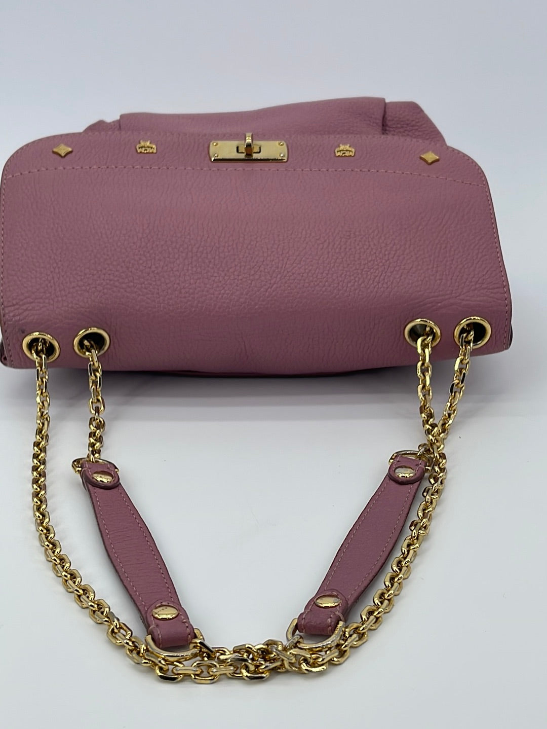 PRELOVED MCM Rose Pink Leather Chain Link Shoulder Bag
