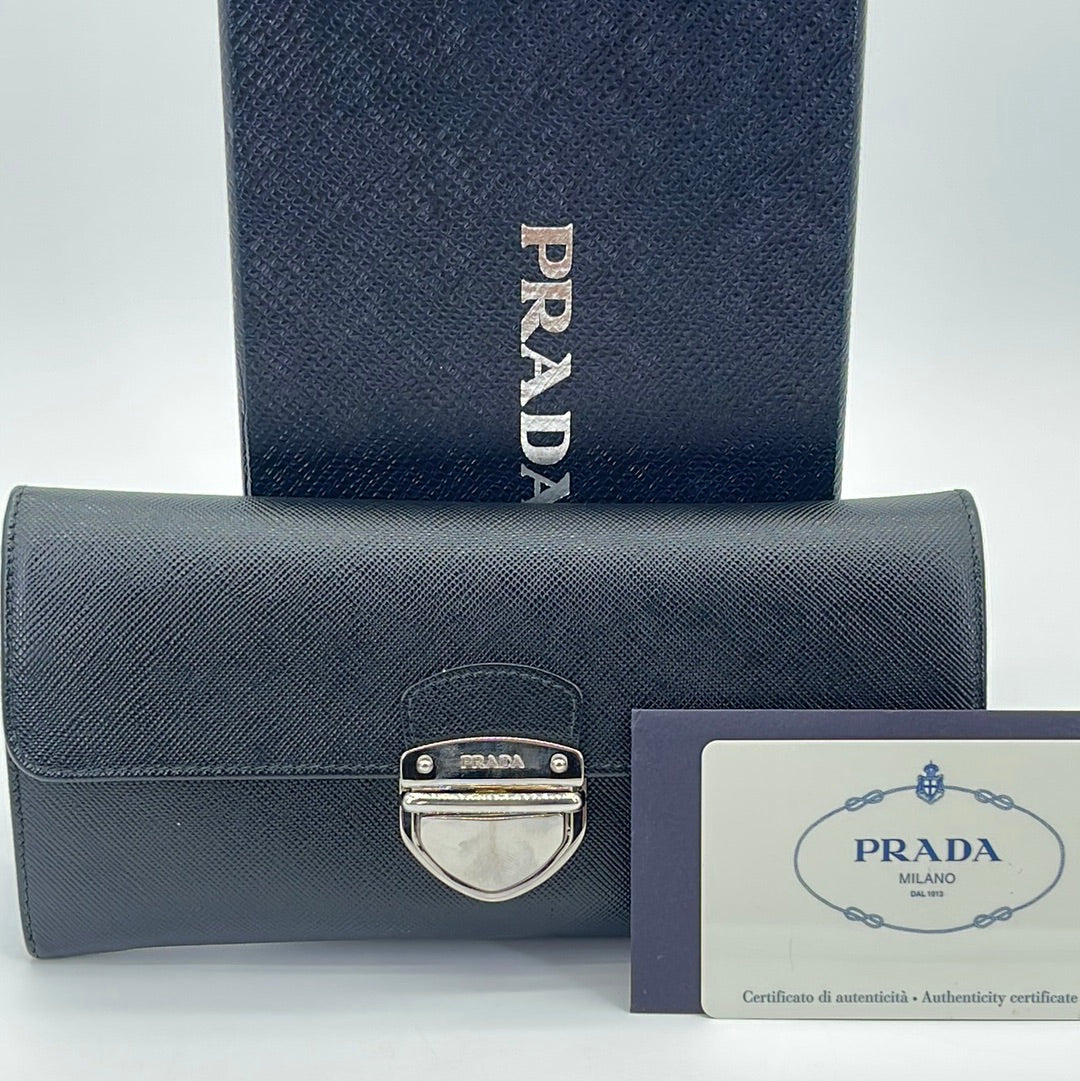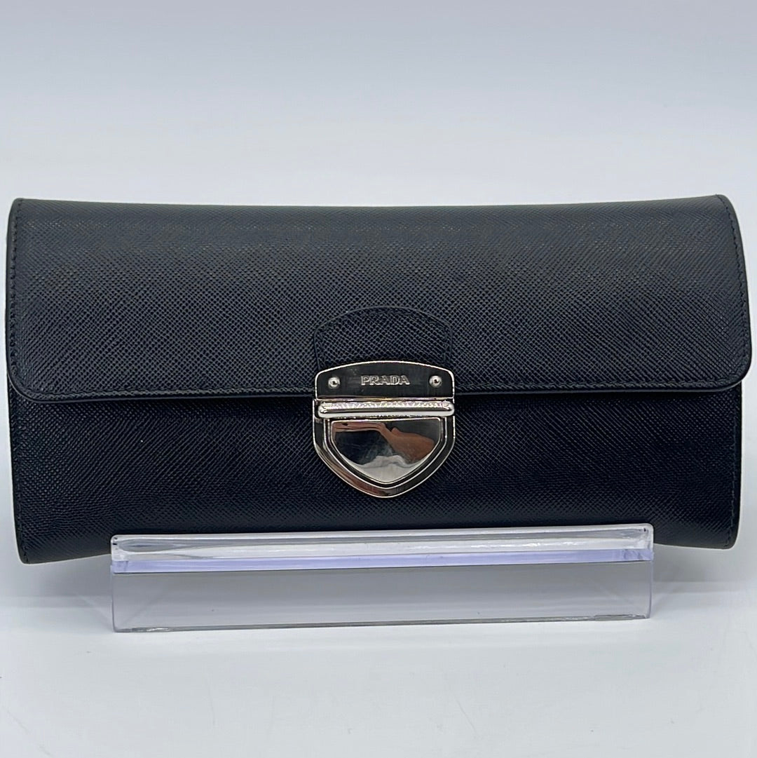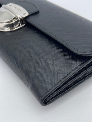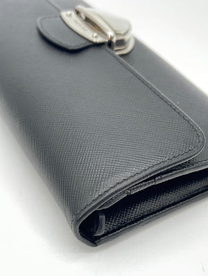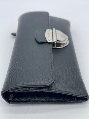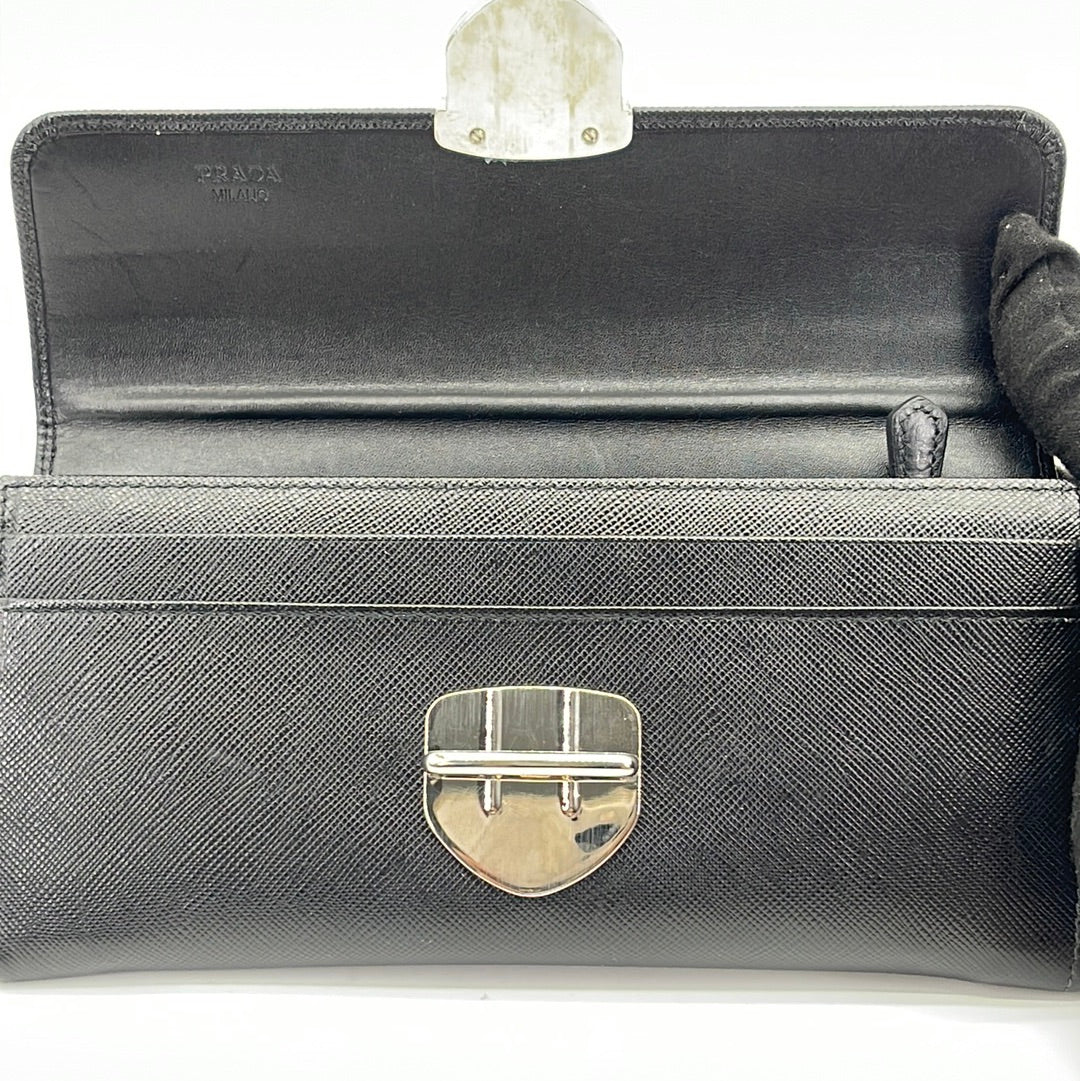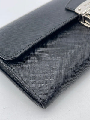 PRELOVED Prada Black Saffiano Leather Push Lock Wallet
