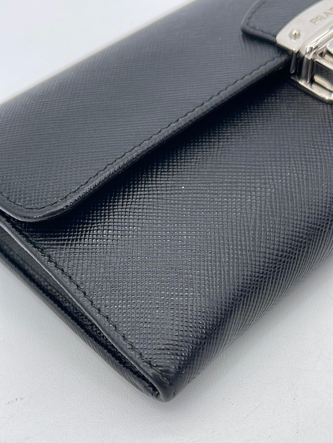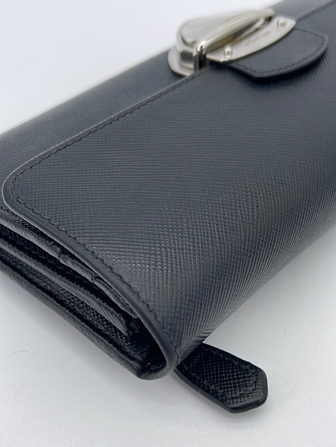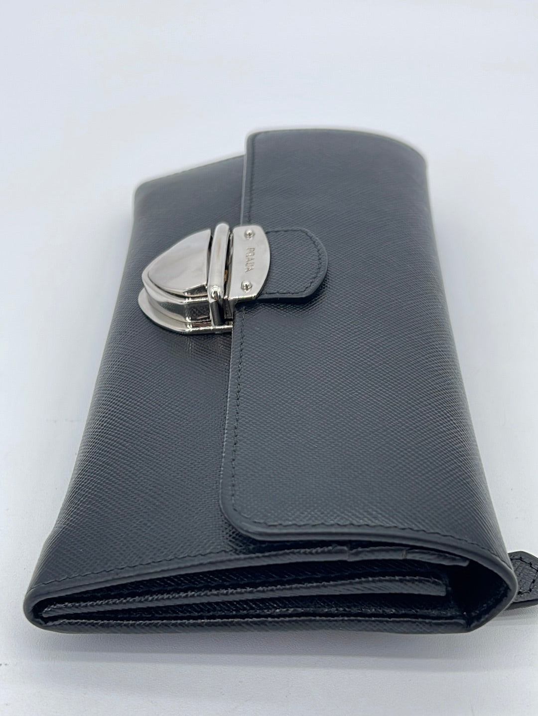 PRELOVED Prada Black Saffiano Leather Push Lock Wallet