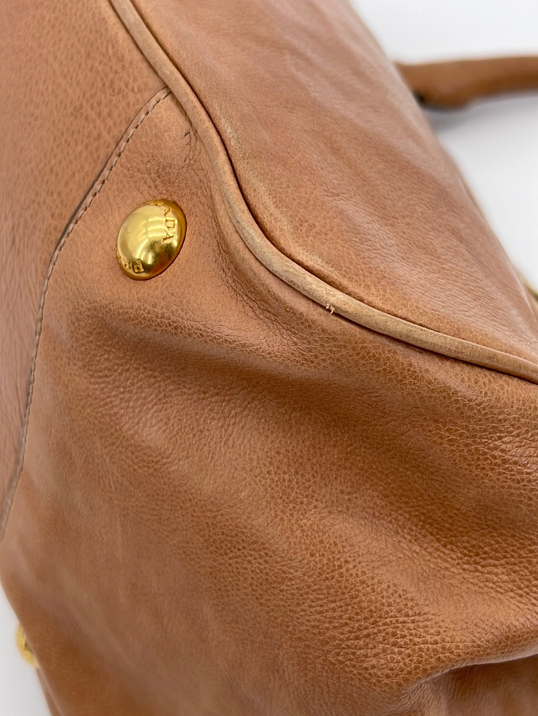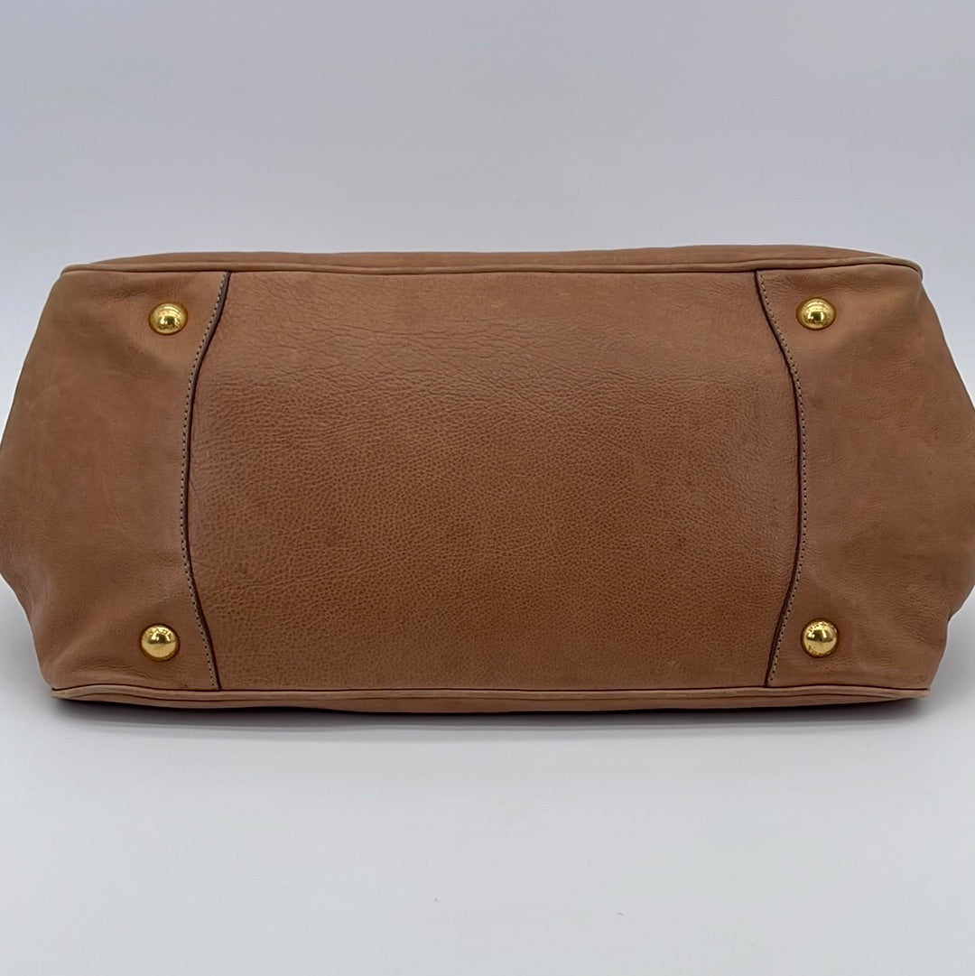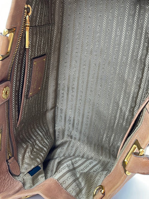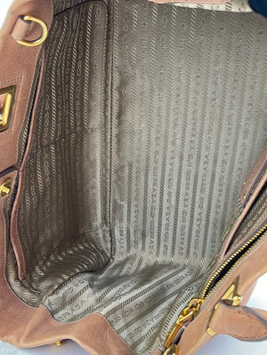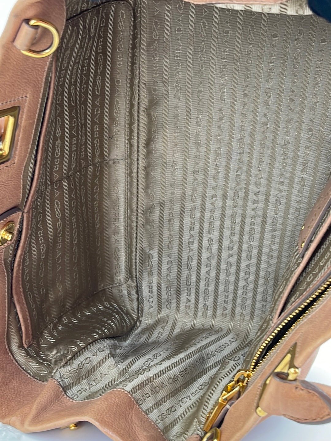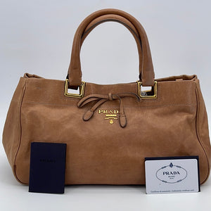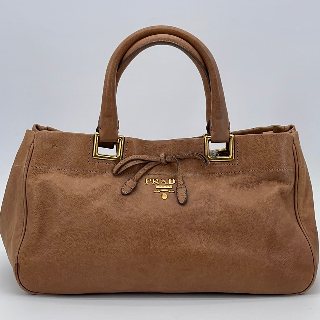 Vintage Prada Tan Calfskin Leather Ribbon Shopping Bag