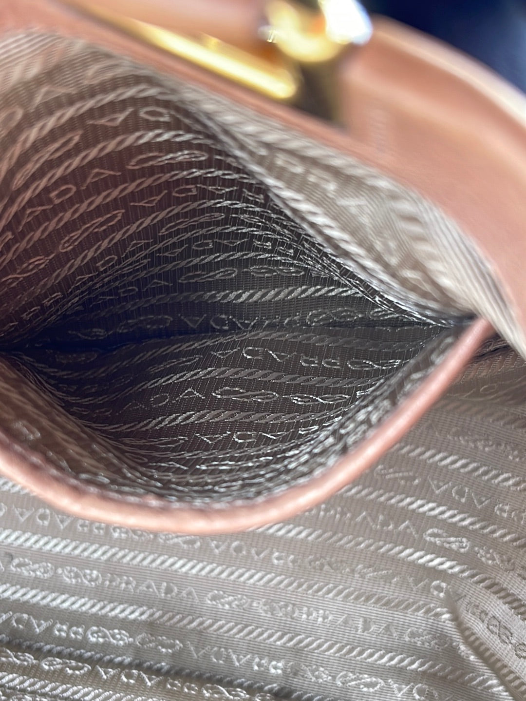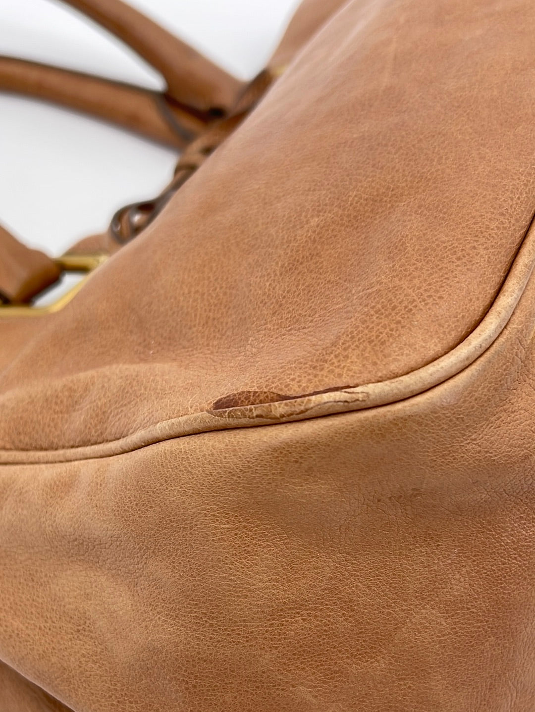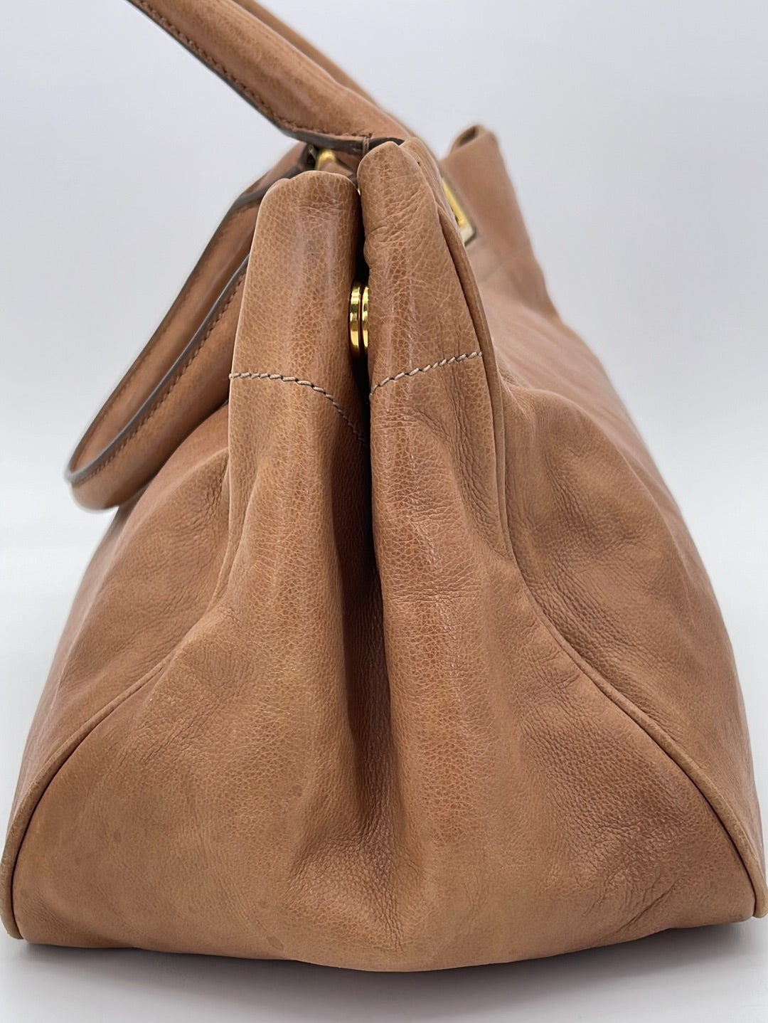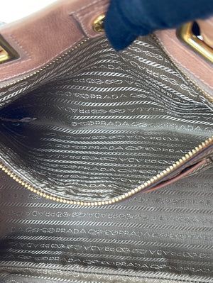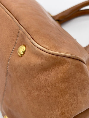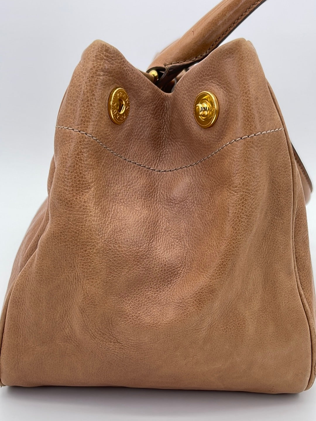 Vintage Prada Tan Calfskin Leather Ribbon Shopping Bag