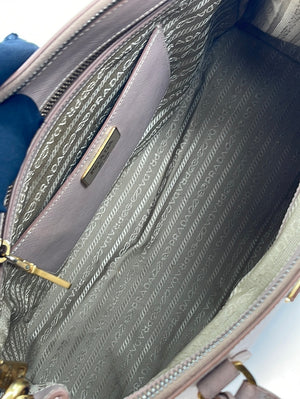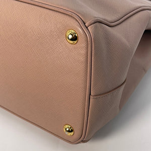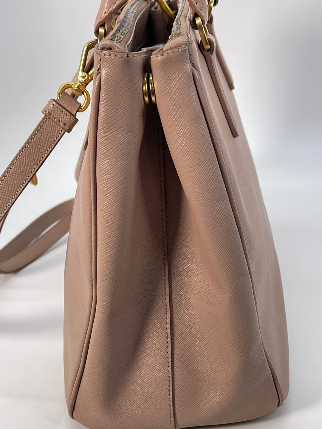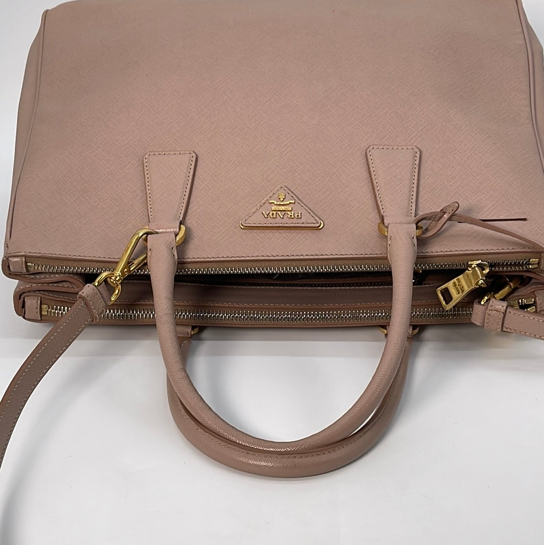 Preloved Prada Beige Saffiano Leather Double Zip Lux Tote Bag with Crossbody Crap.