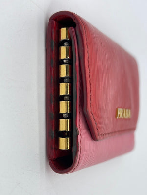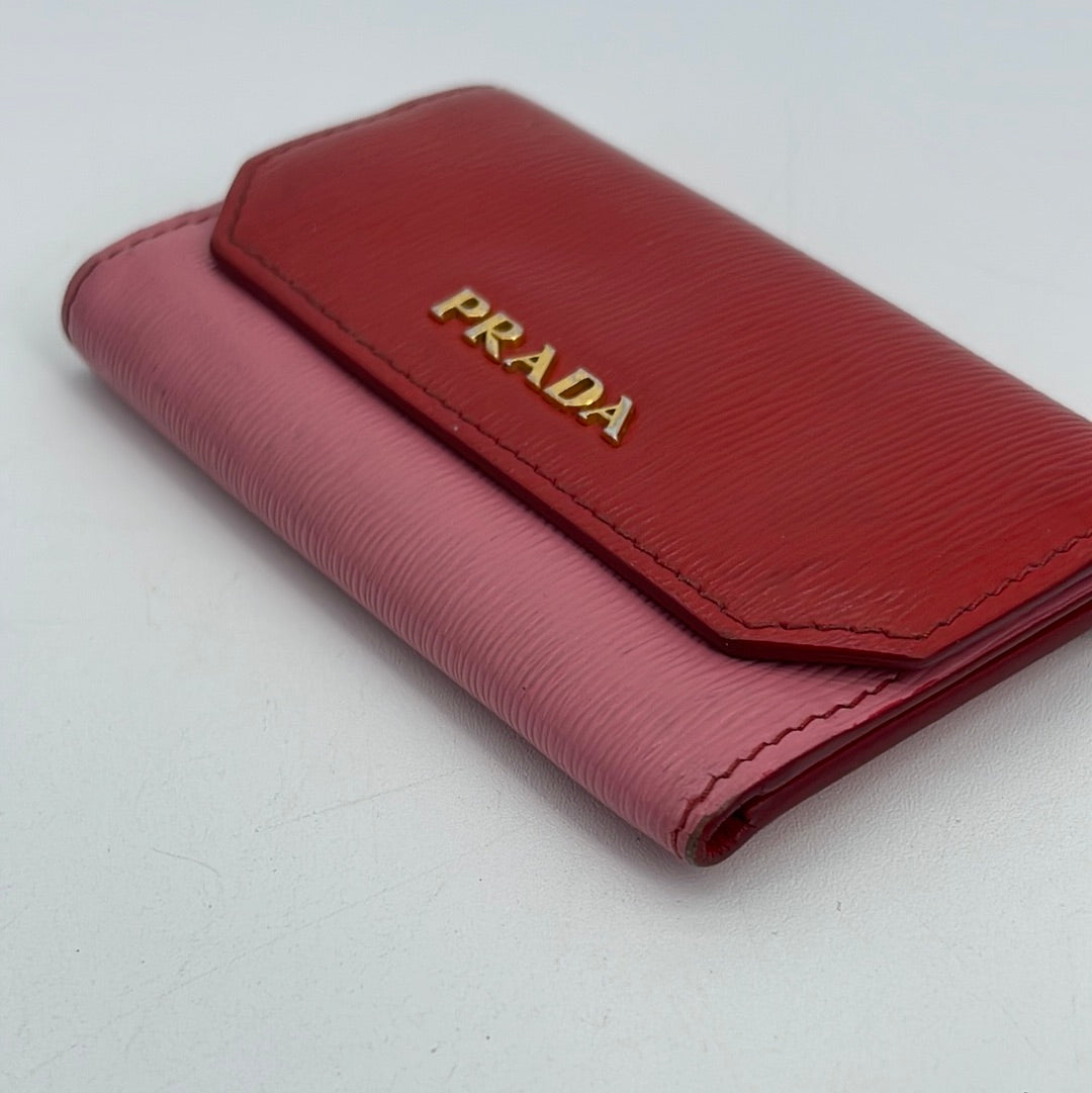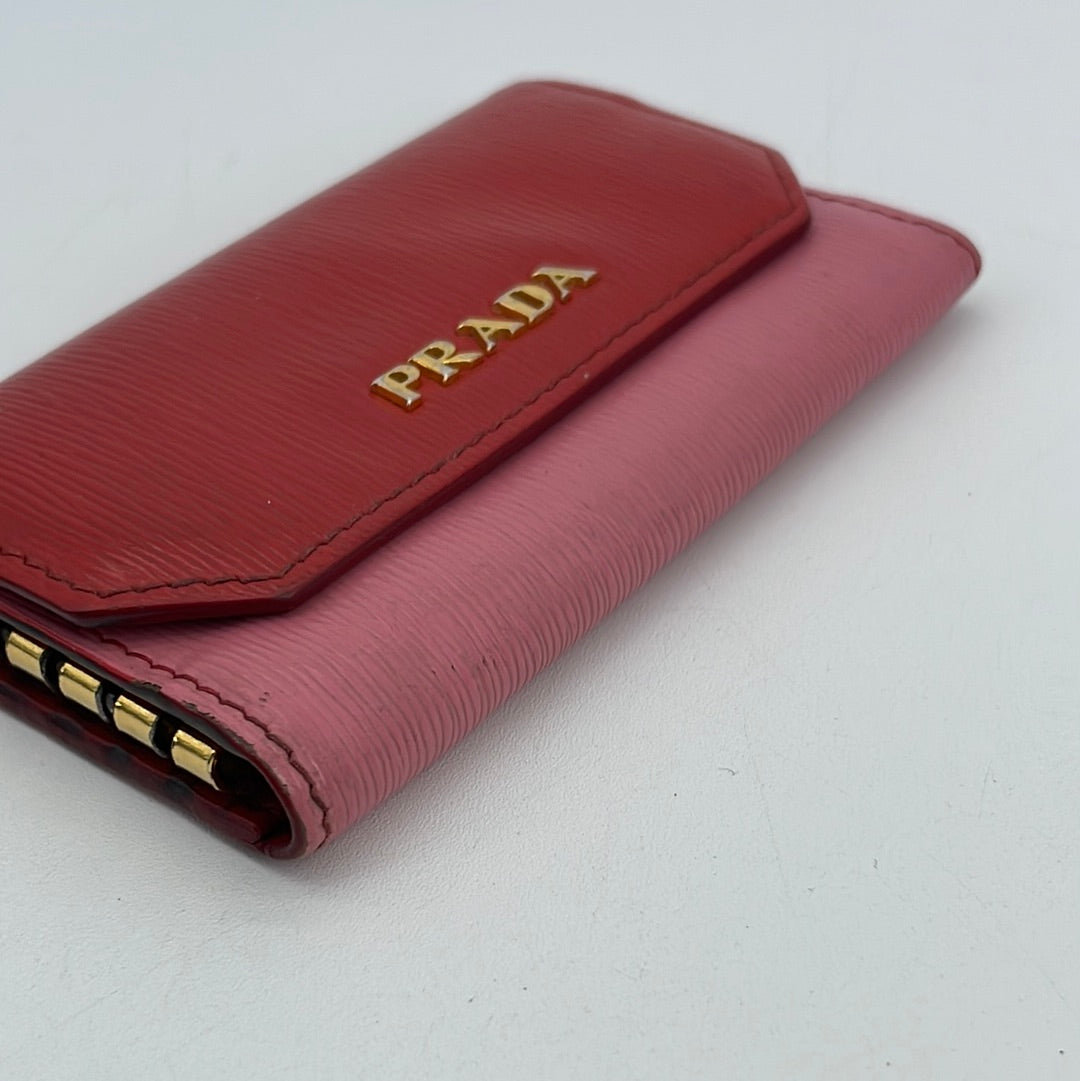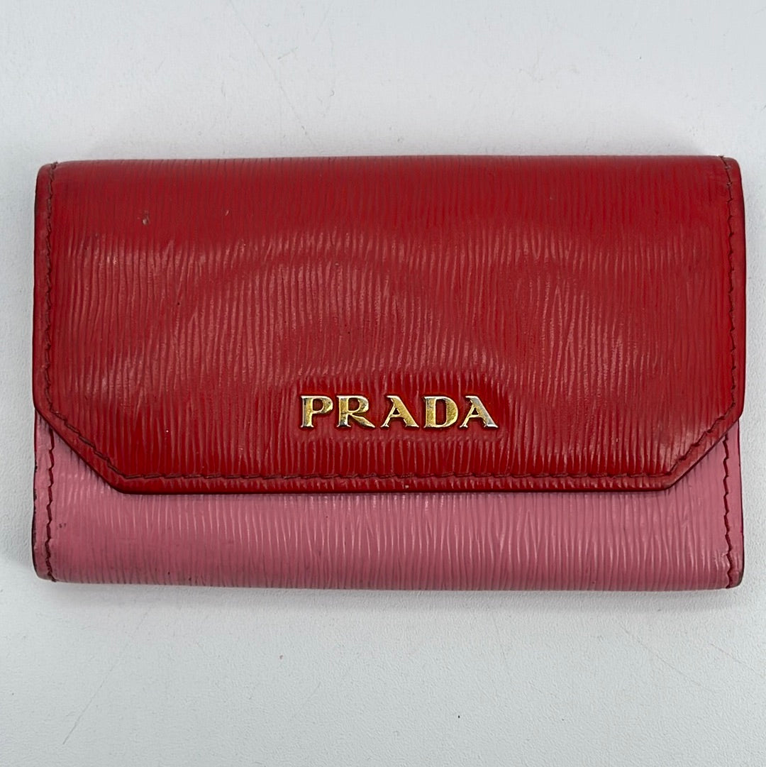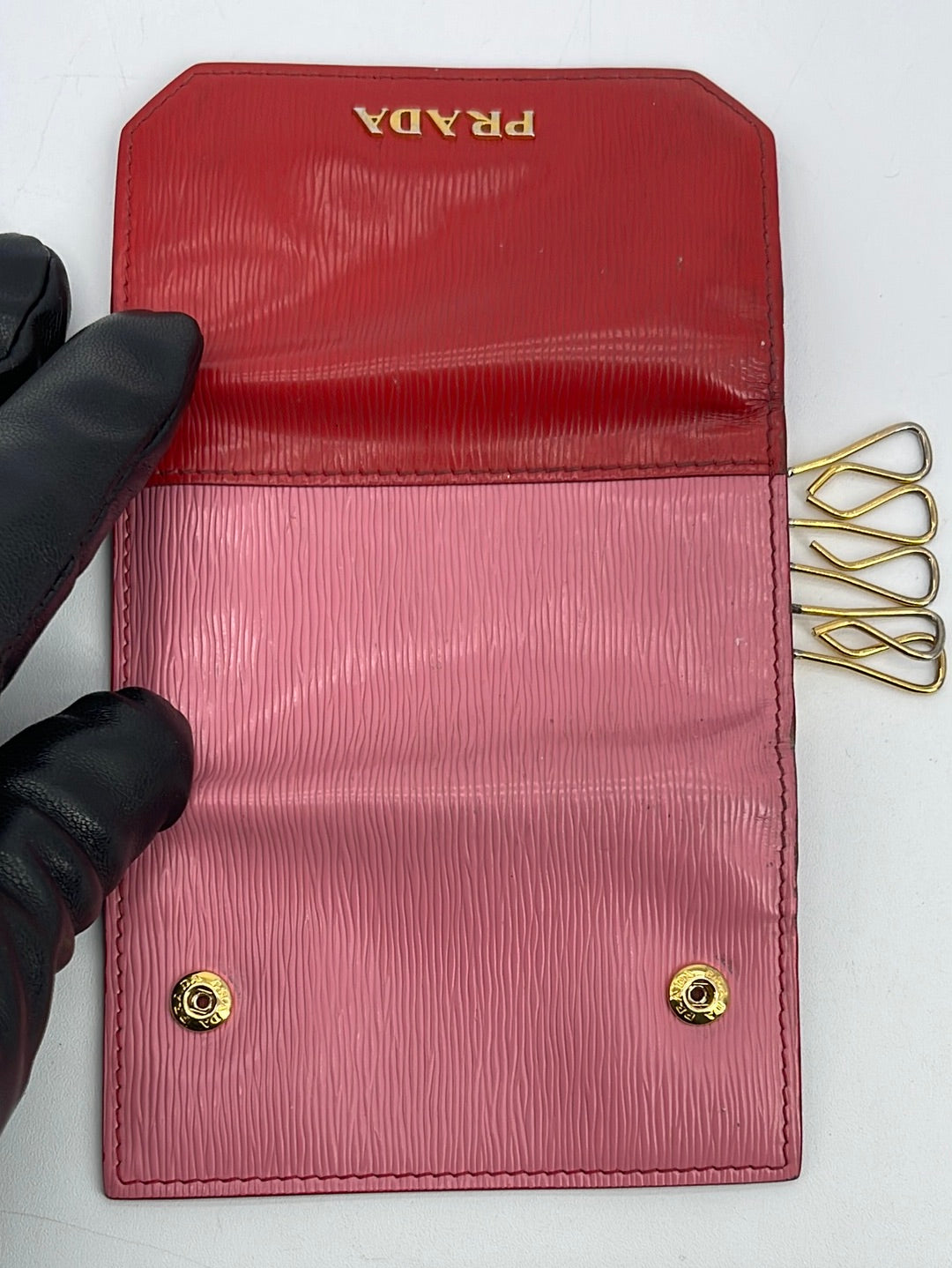 Preloved Prada Saffiano Pink and Red Leather 6 Ring Key Case - Missing on Key Hook