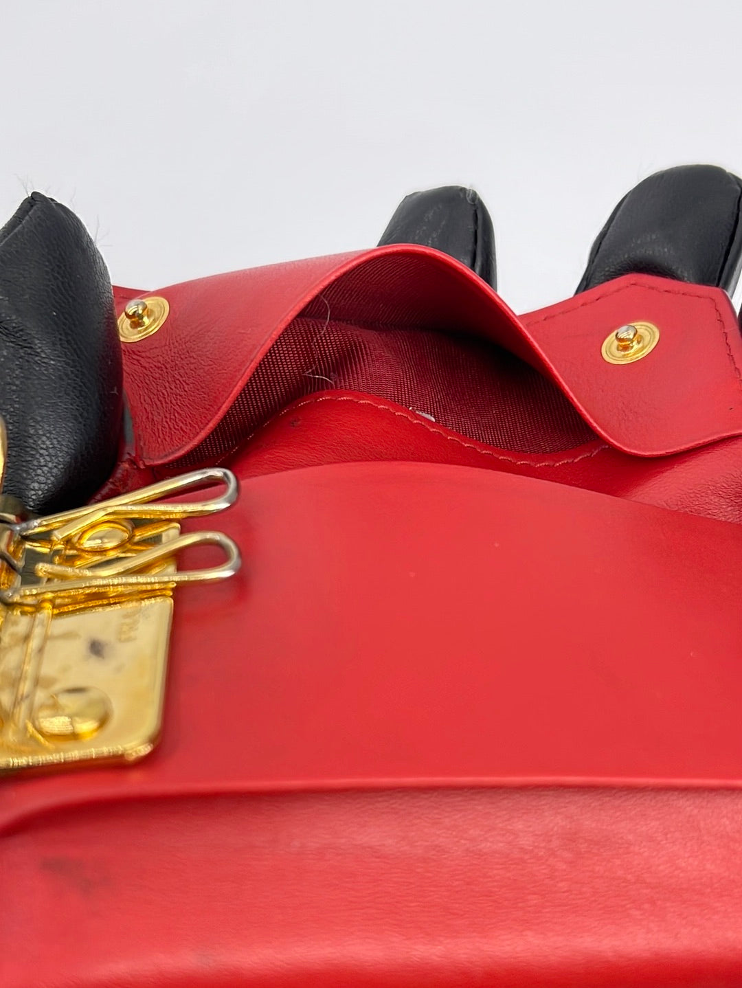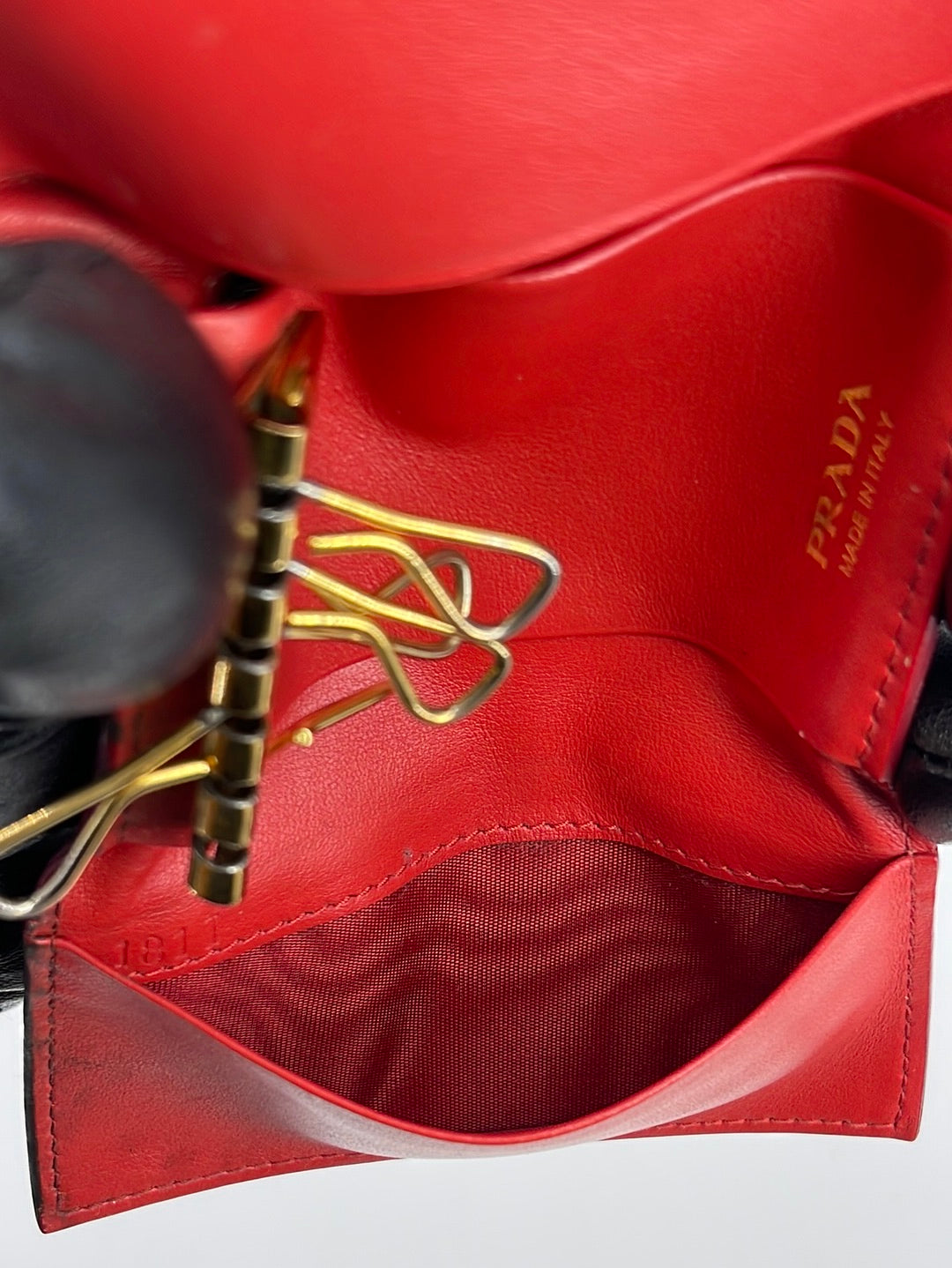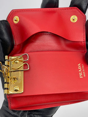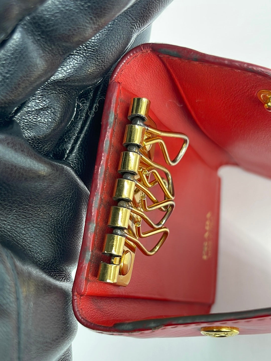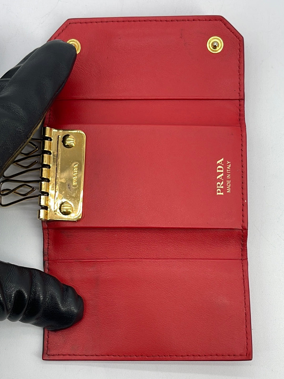 Preloved Prada Saffiano Pink and Red Leather 6 Ring Key Case - Missing on Key Hook