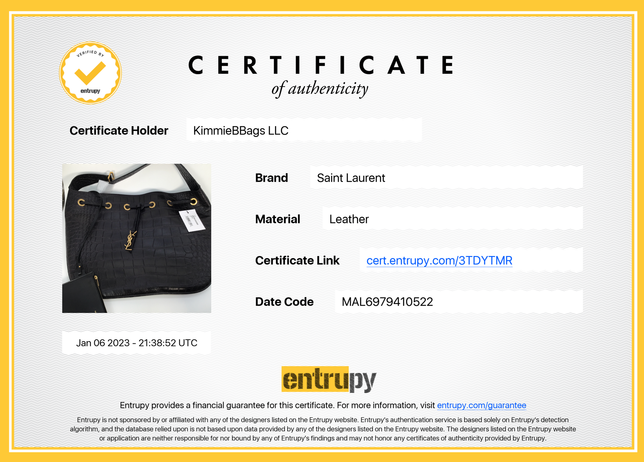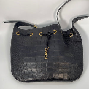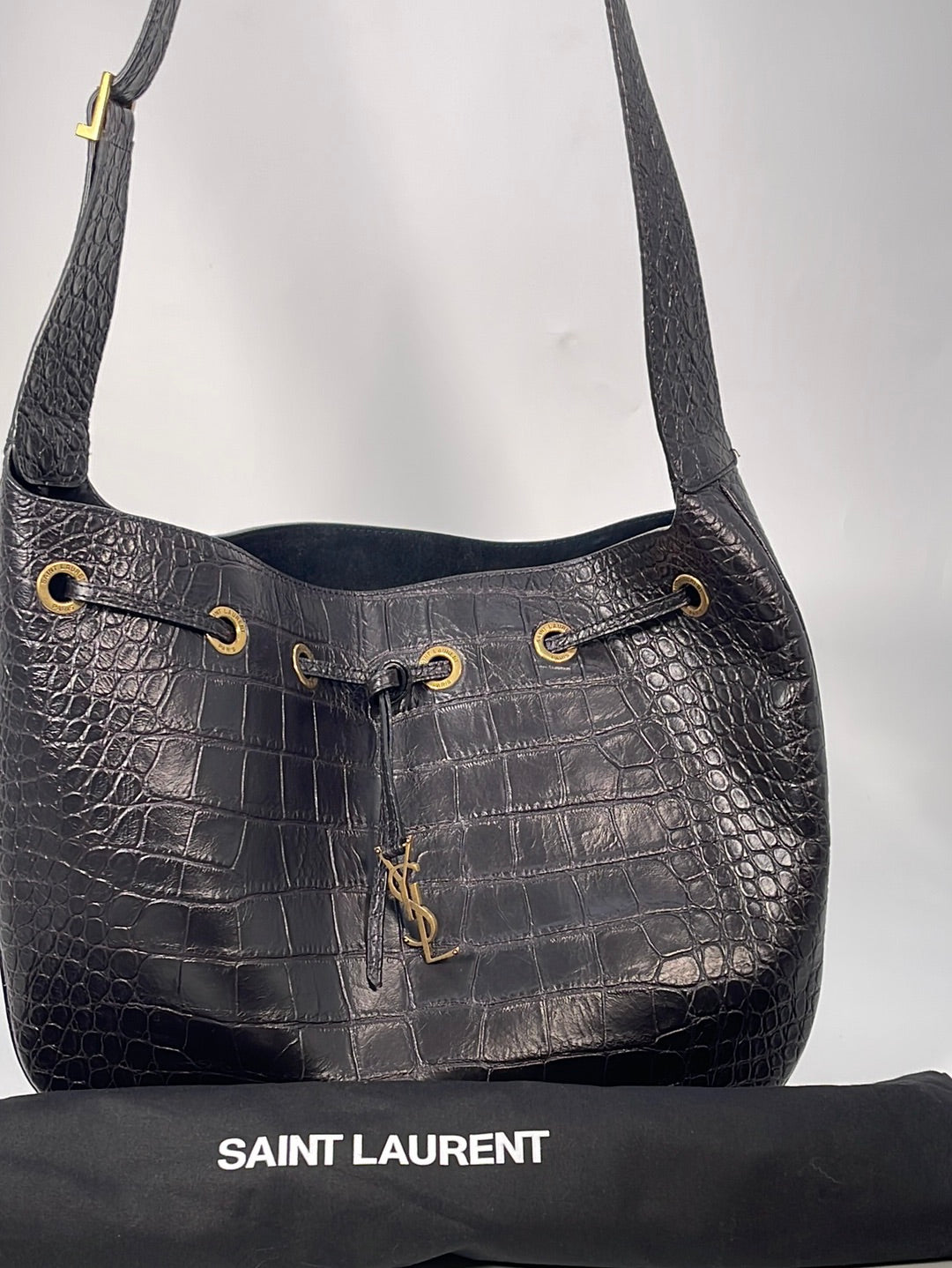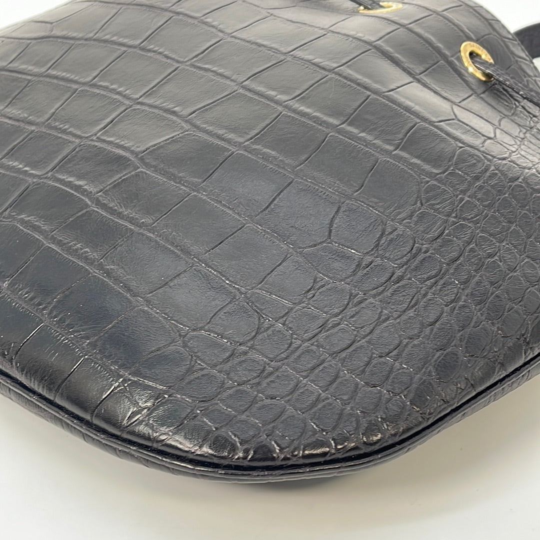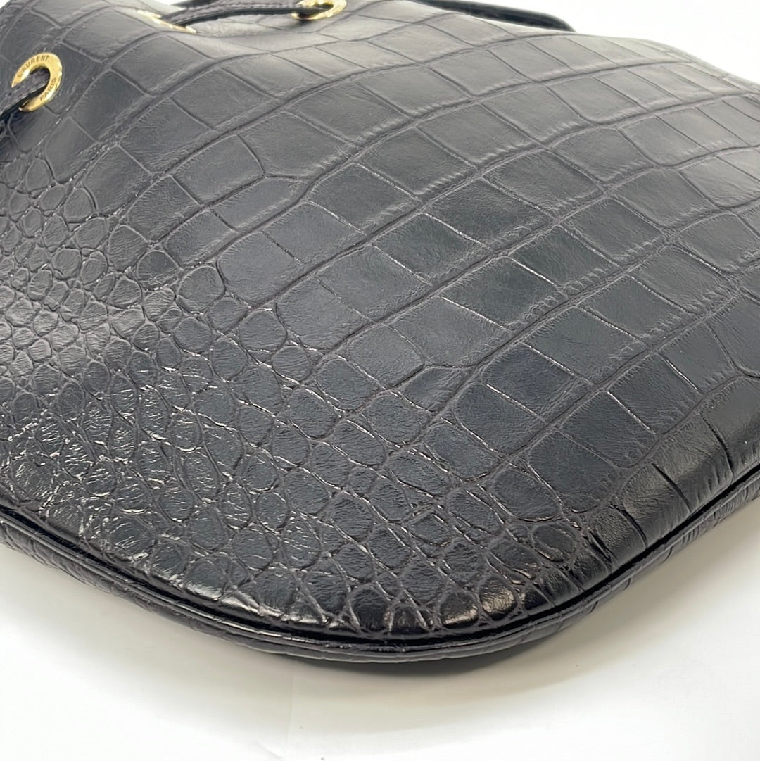 Preloved Saint Laurent Black Crocodile Seau Flat Hobo Shoulder Bag with Matching Pouch