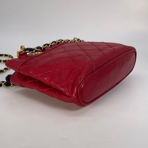 PRELOVED Vintage Chanel Red Quilted Lambskin Small Chain Tote Bag