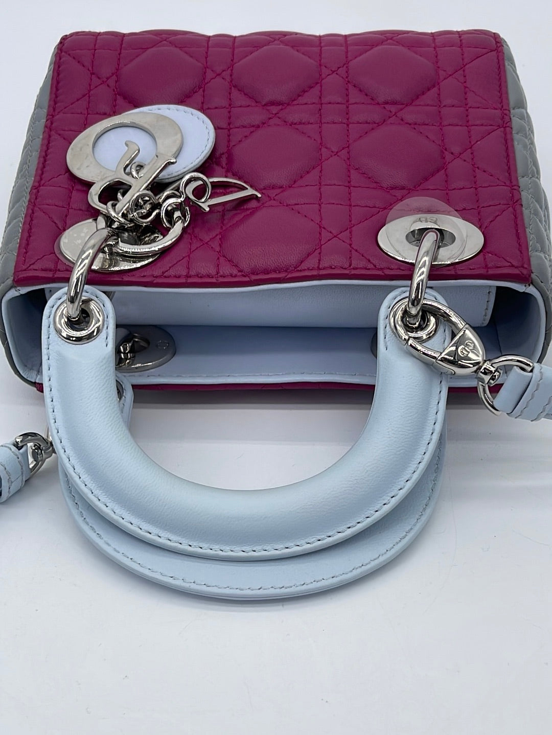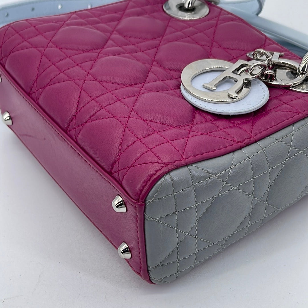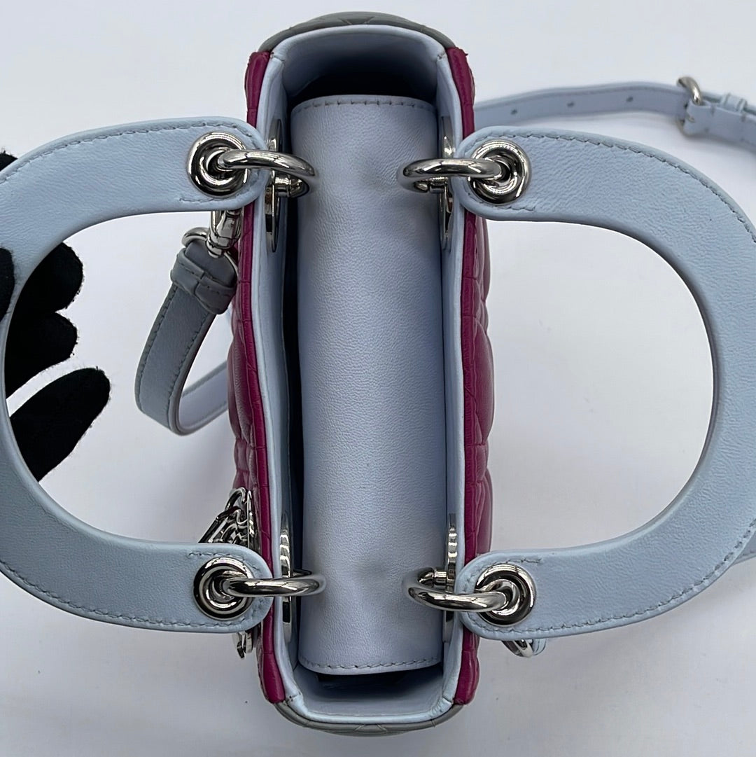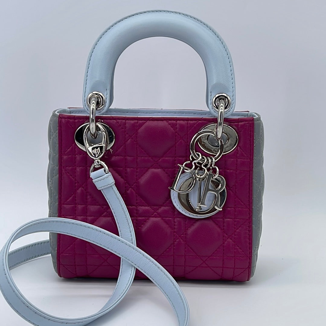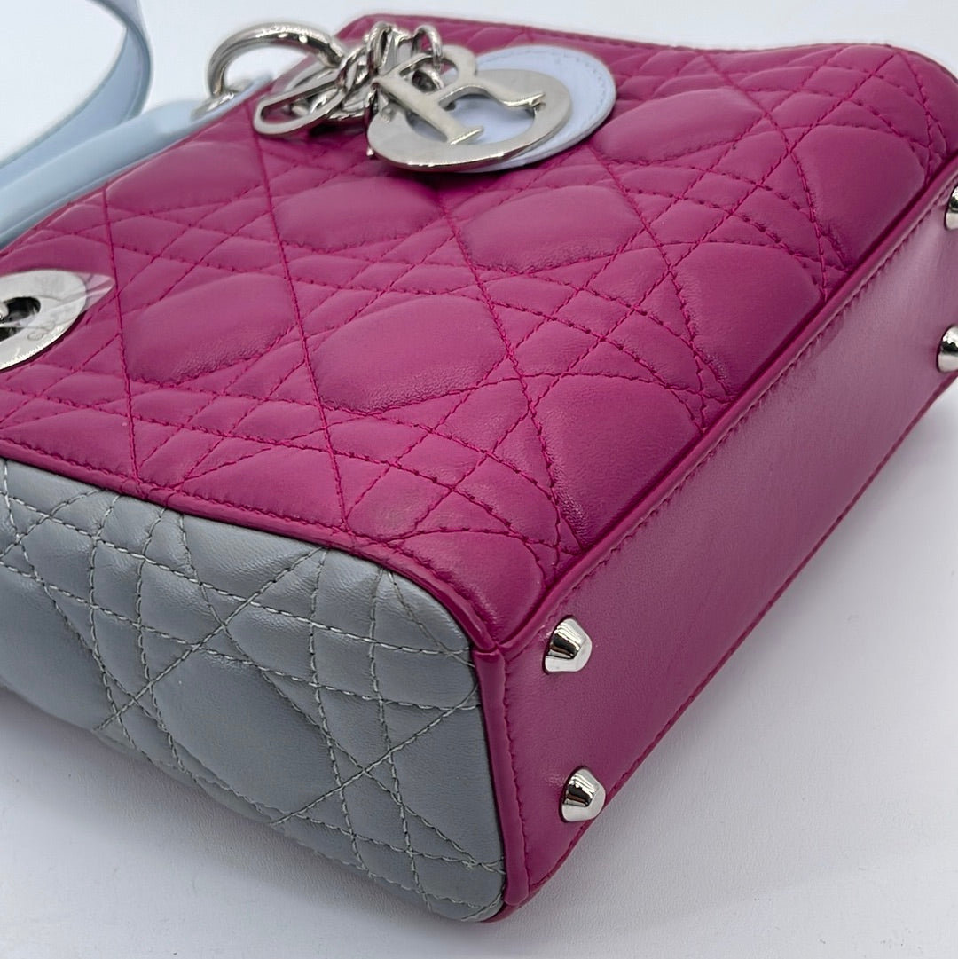 Preloved Vintage Christian Dior Pink and Grey Leather Mini Lady Dior Bag