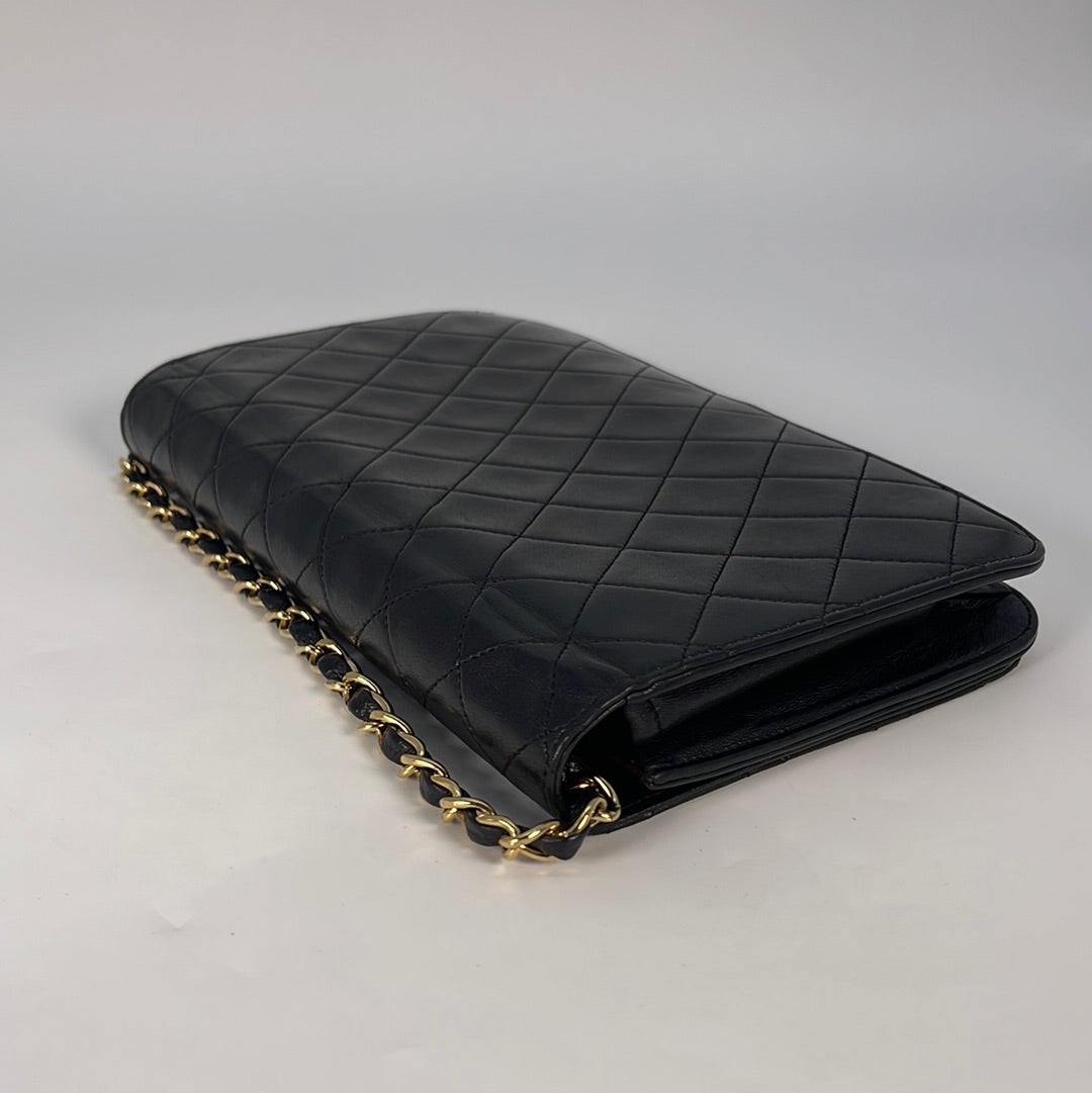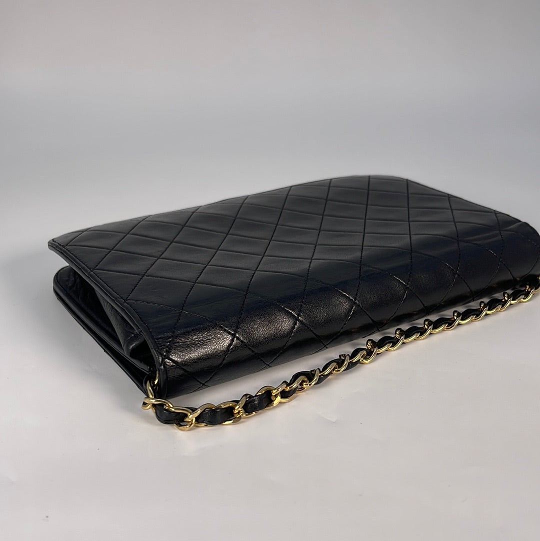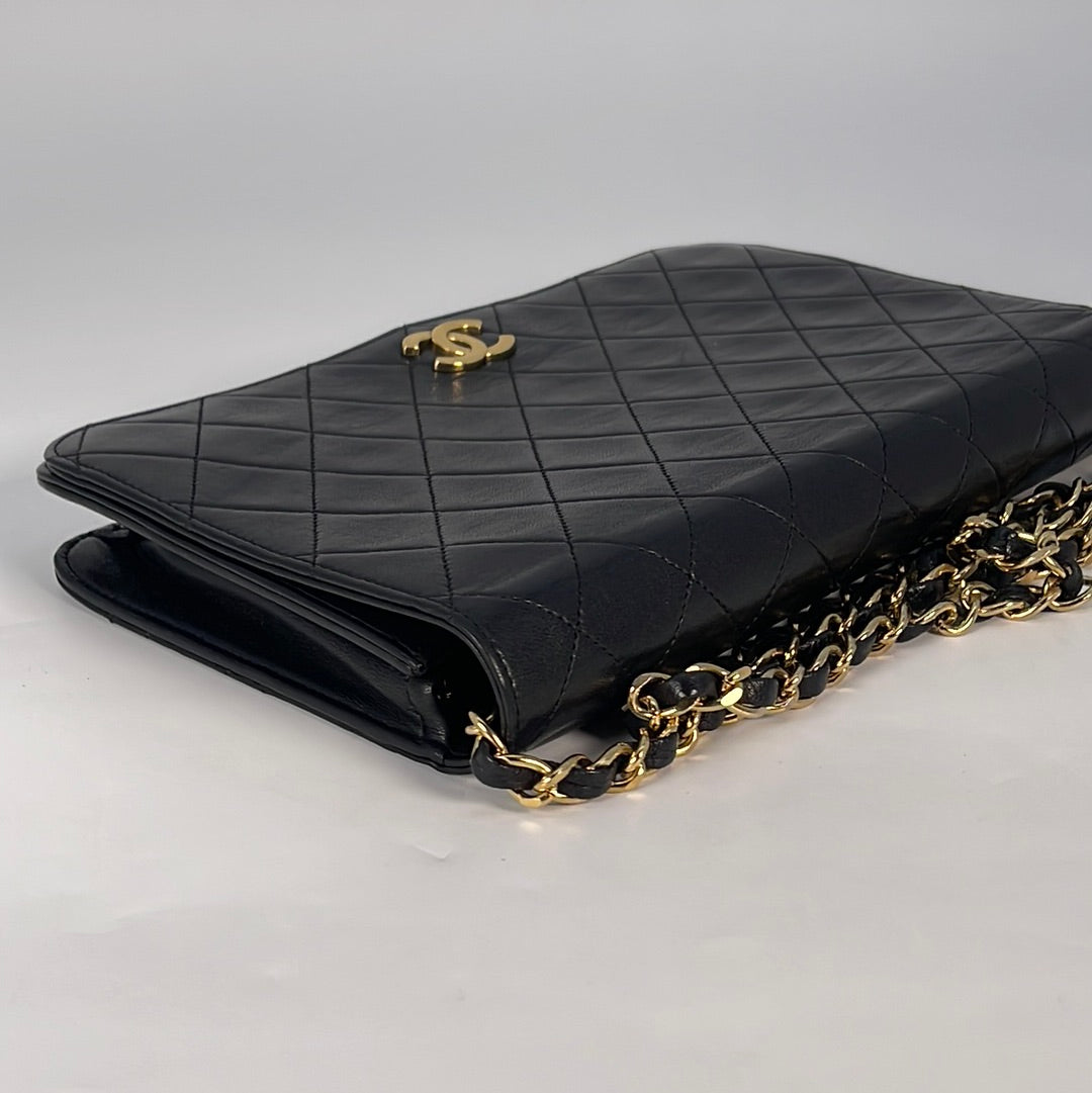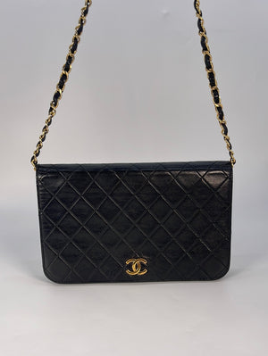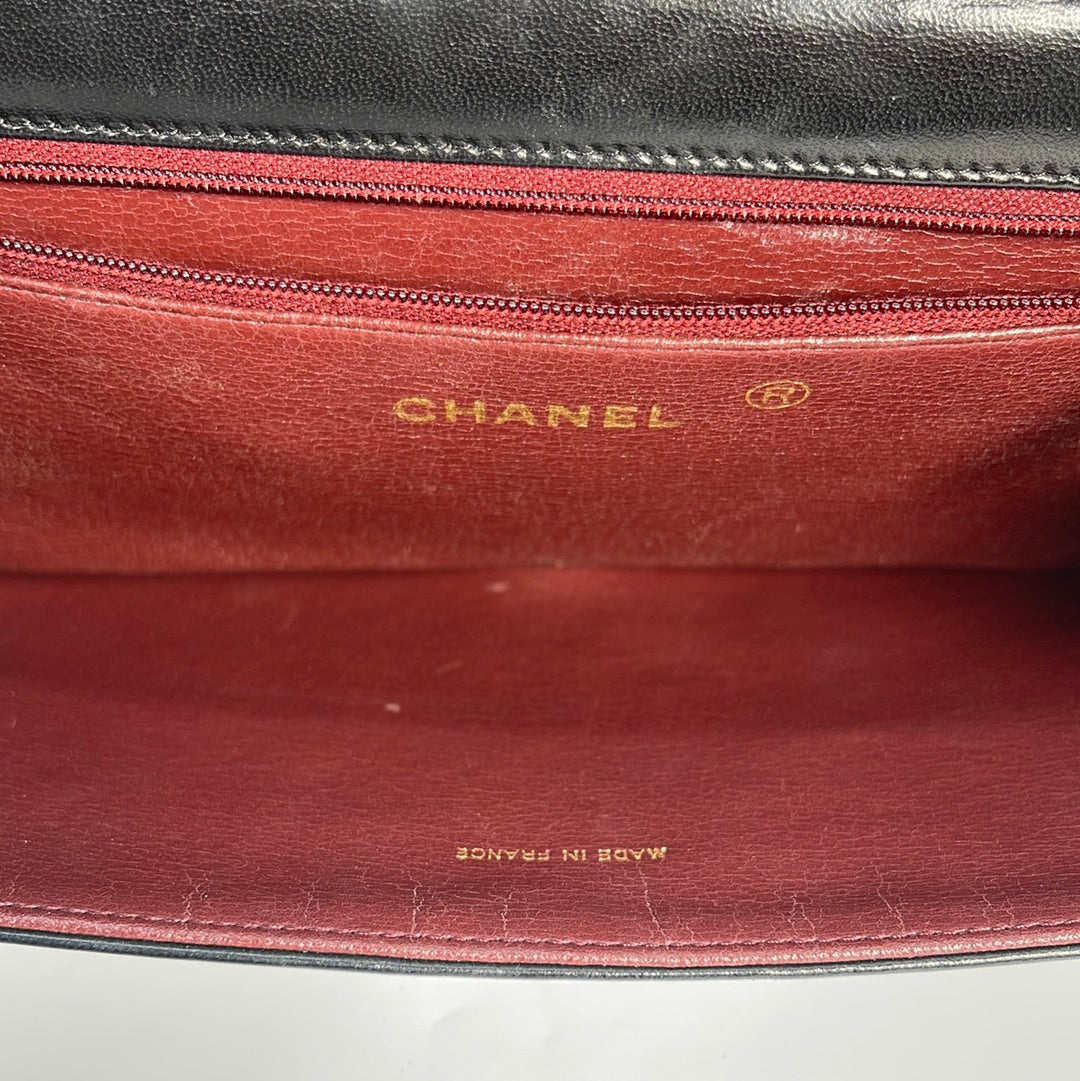Vintage Chanel Black Quilted Lambskin Full Single Flap Shoulder Bag