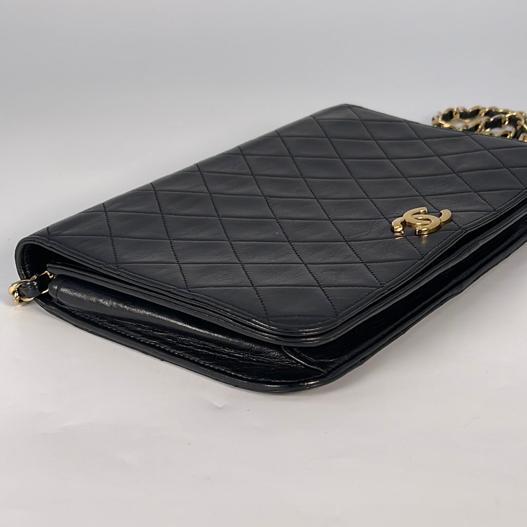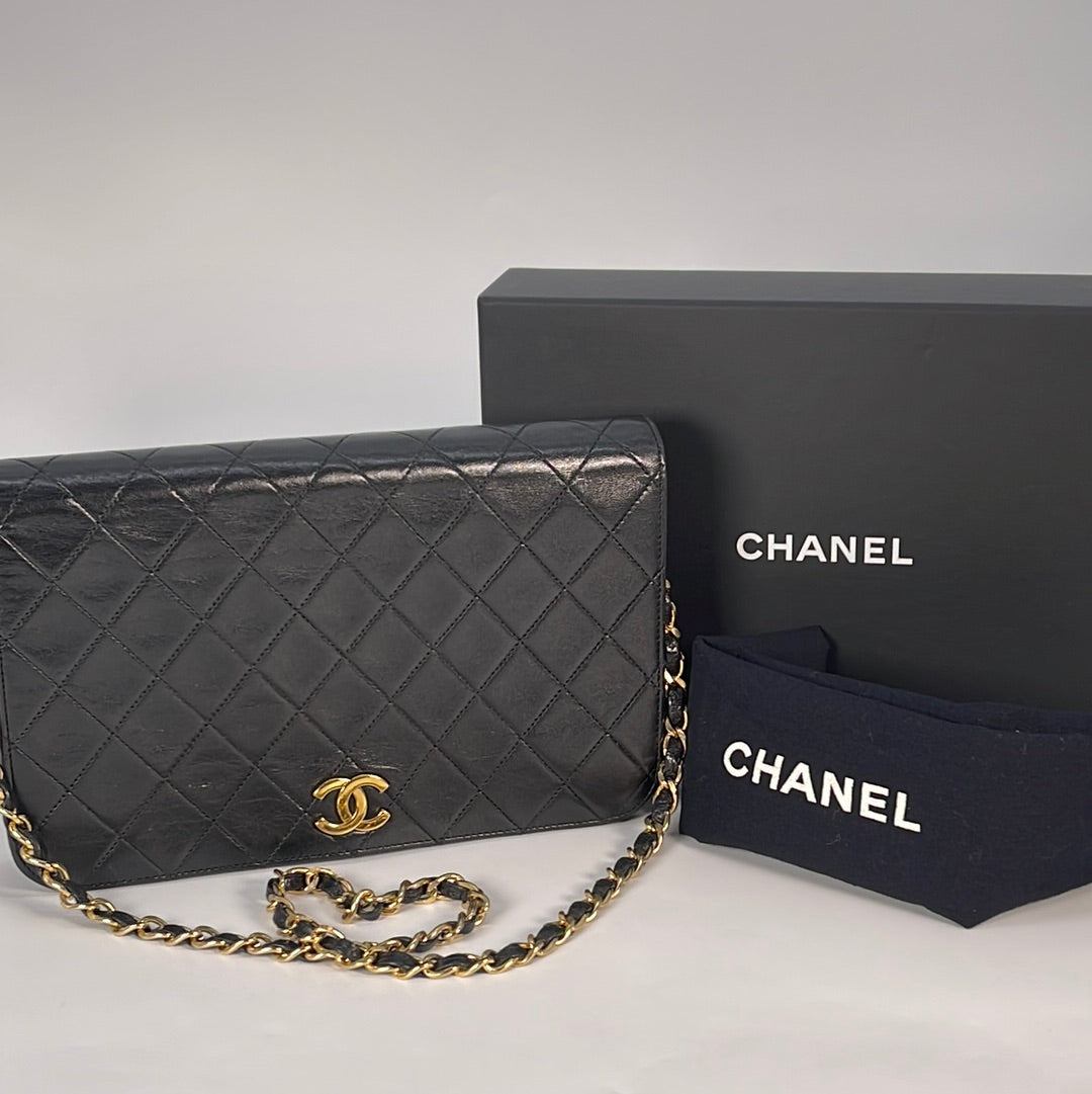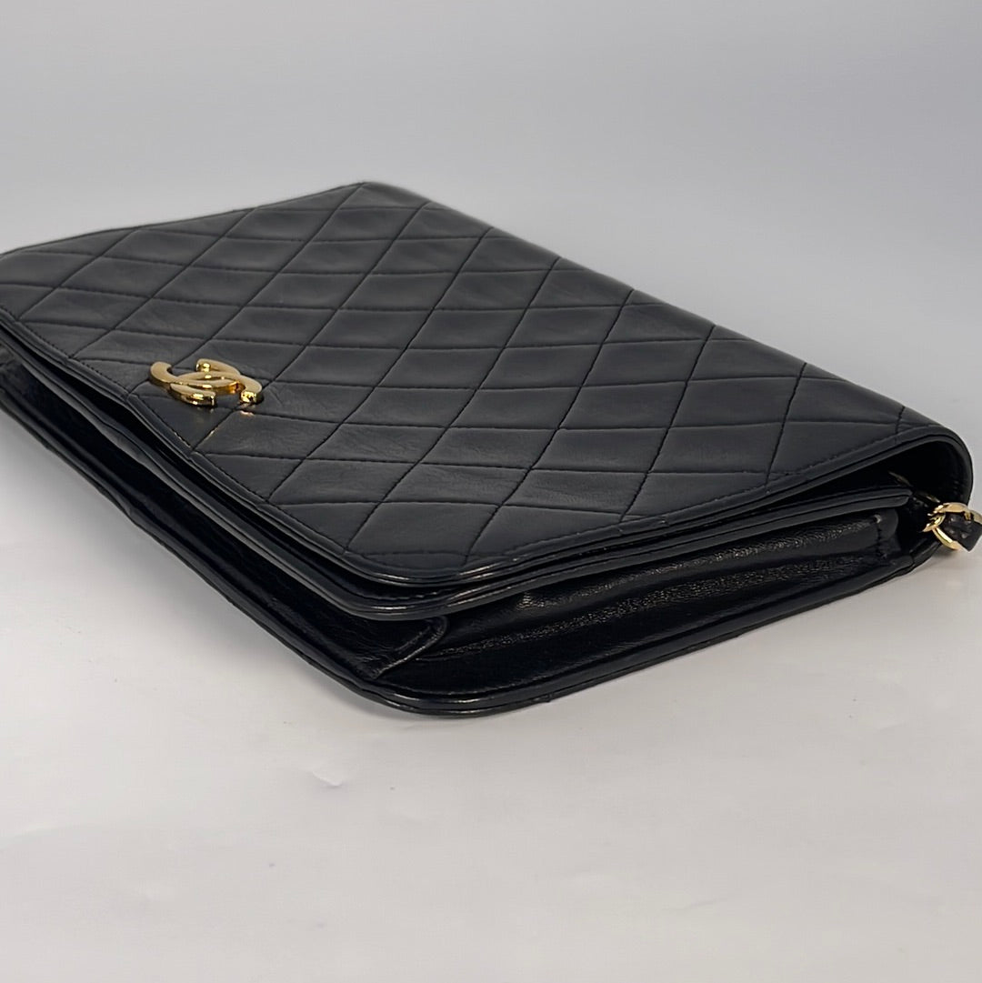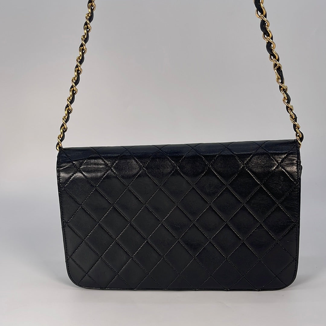 Vintage Chanel Black Quilted Lambskin Full Single Flap Shoulder Bag