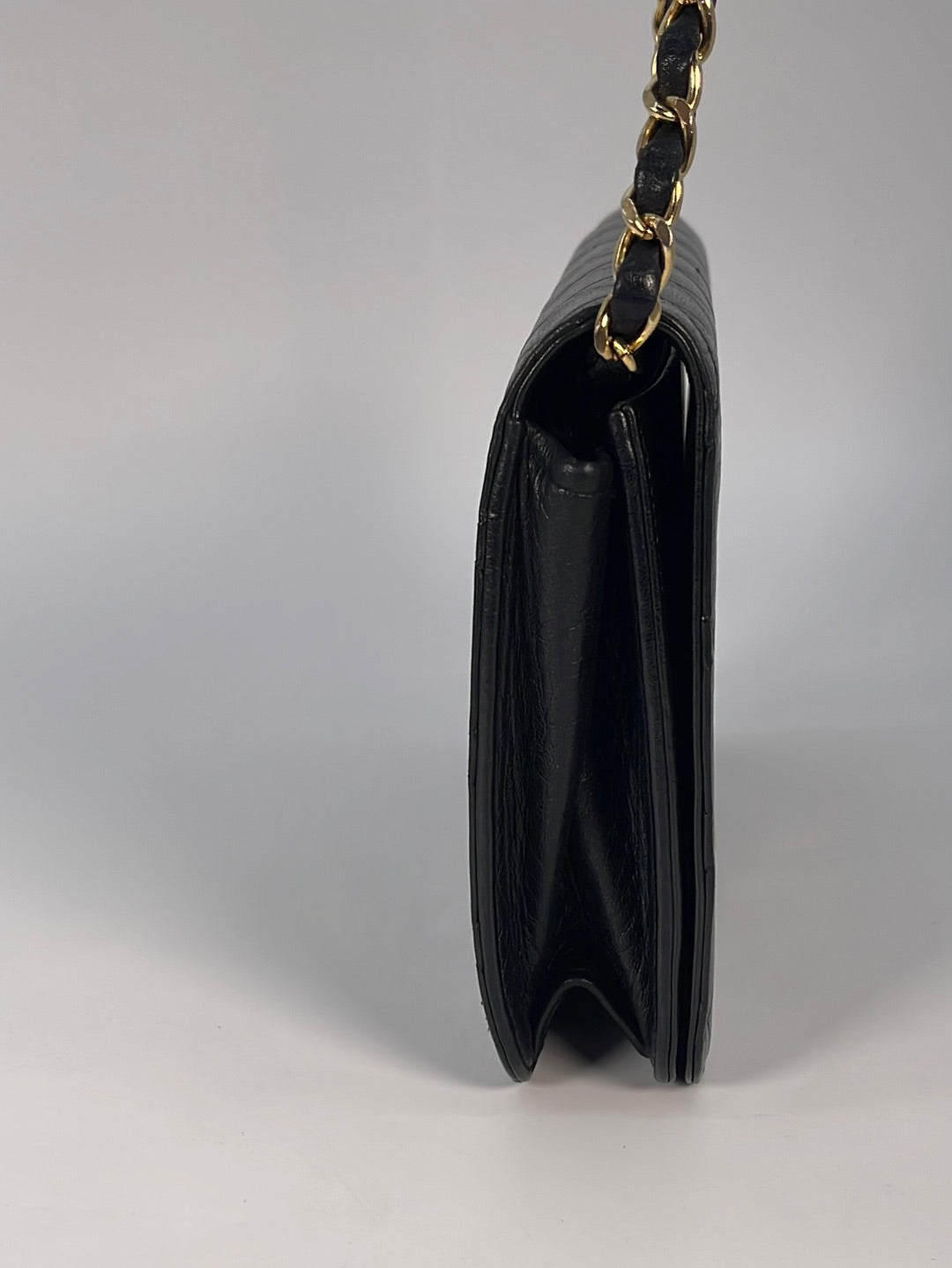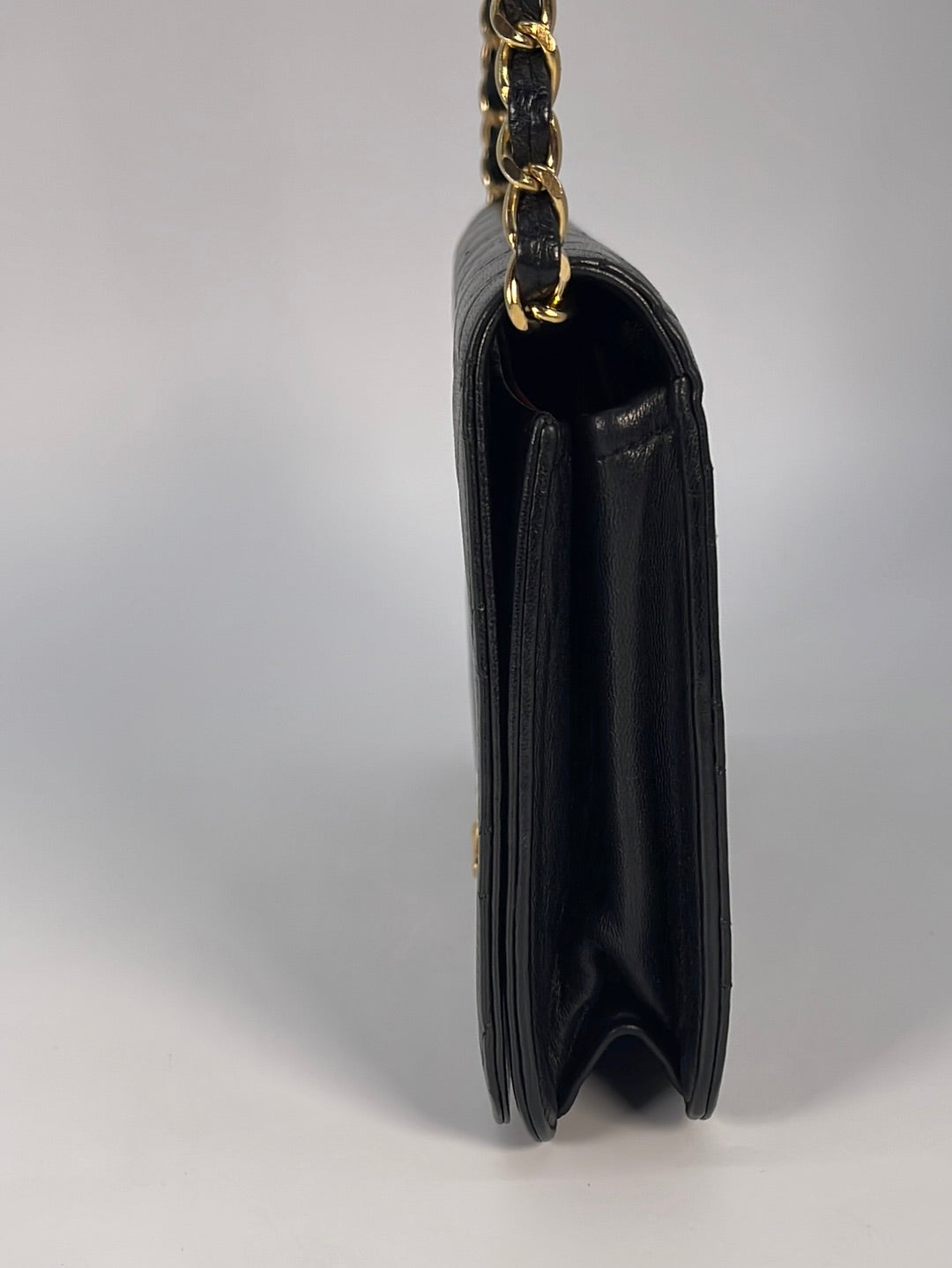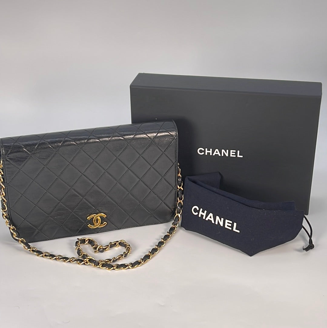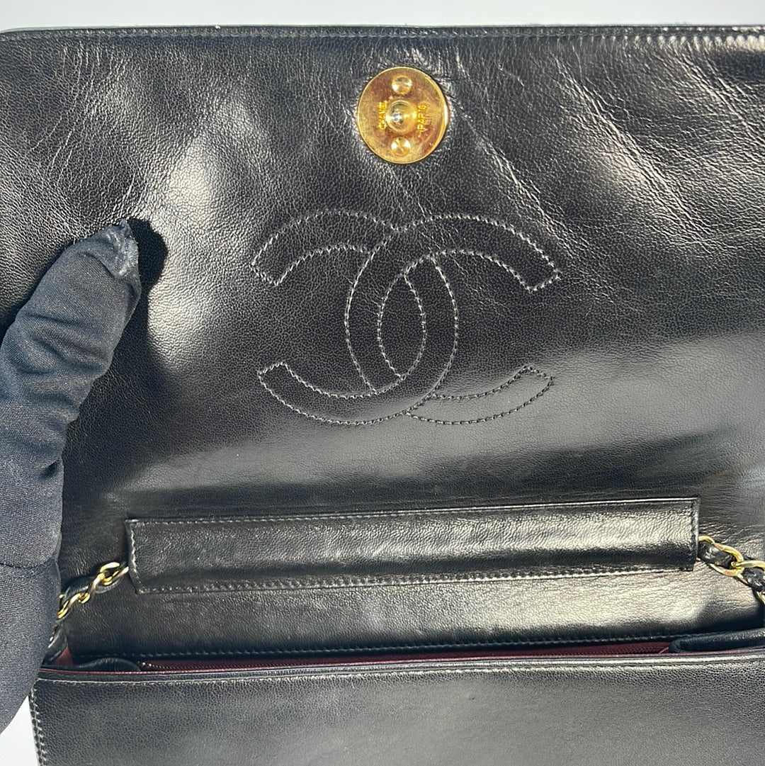 Vintage Chanel Black Quilted Lambskin Full Single Flap Shoulder Bag
