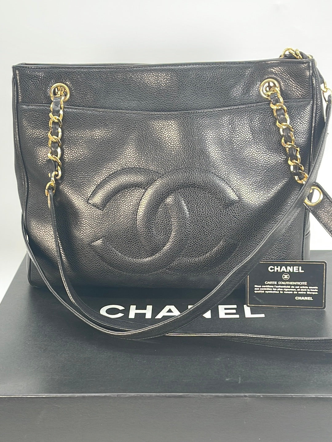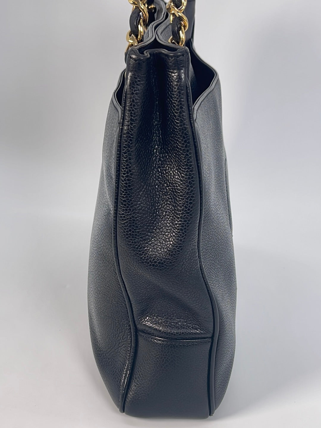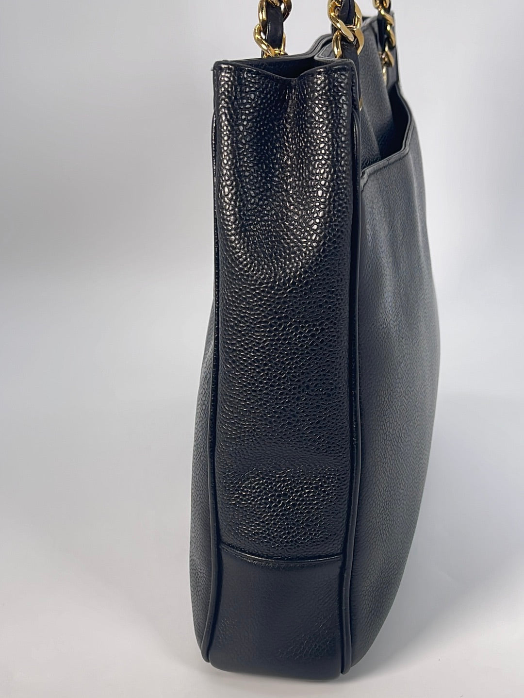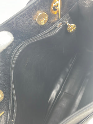 Vintage Chanel CC Logo Black Caviar Chain Shoulder Tote Bag