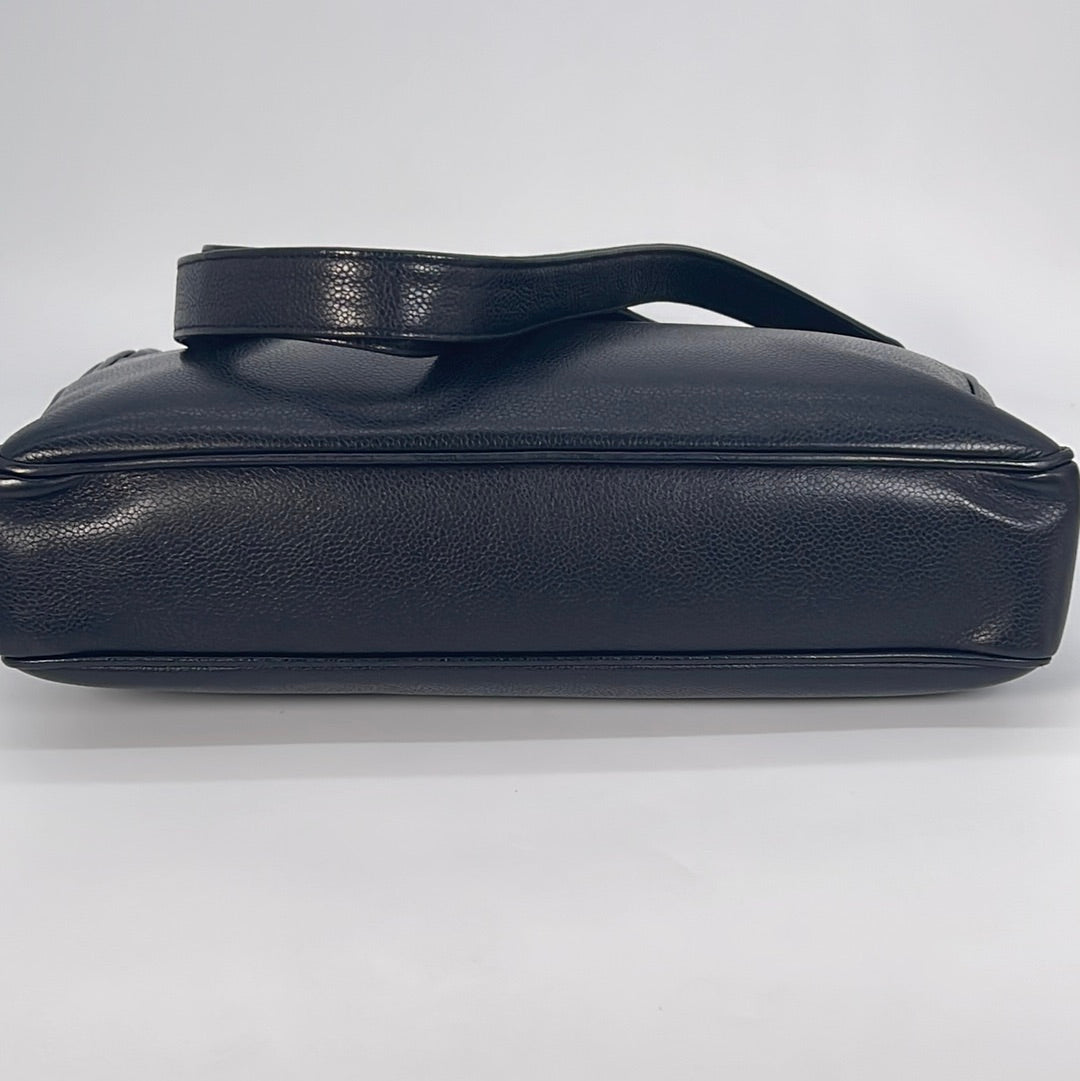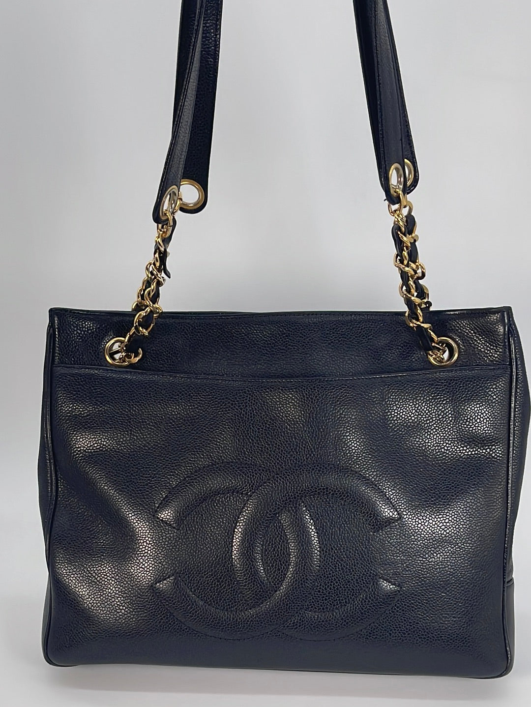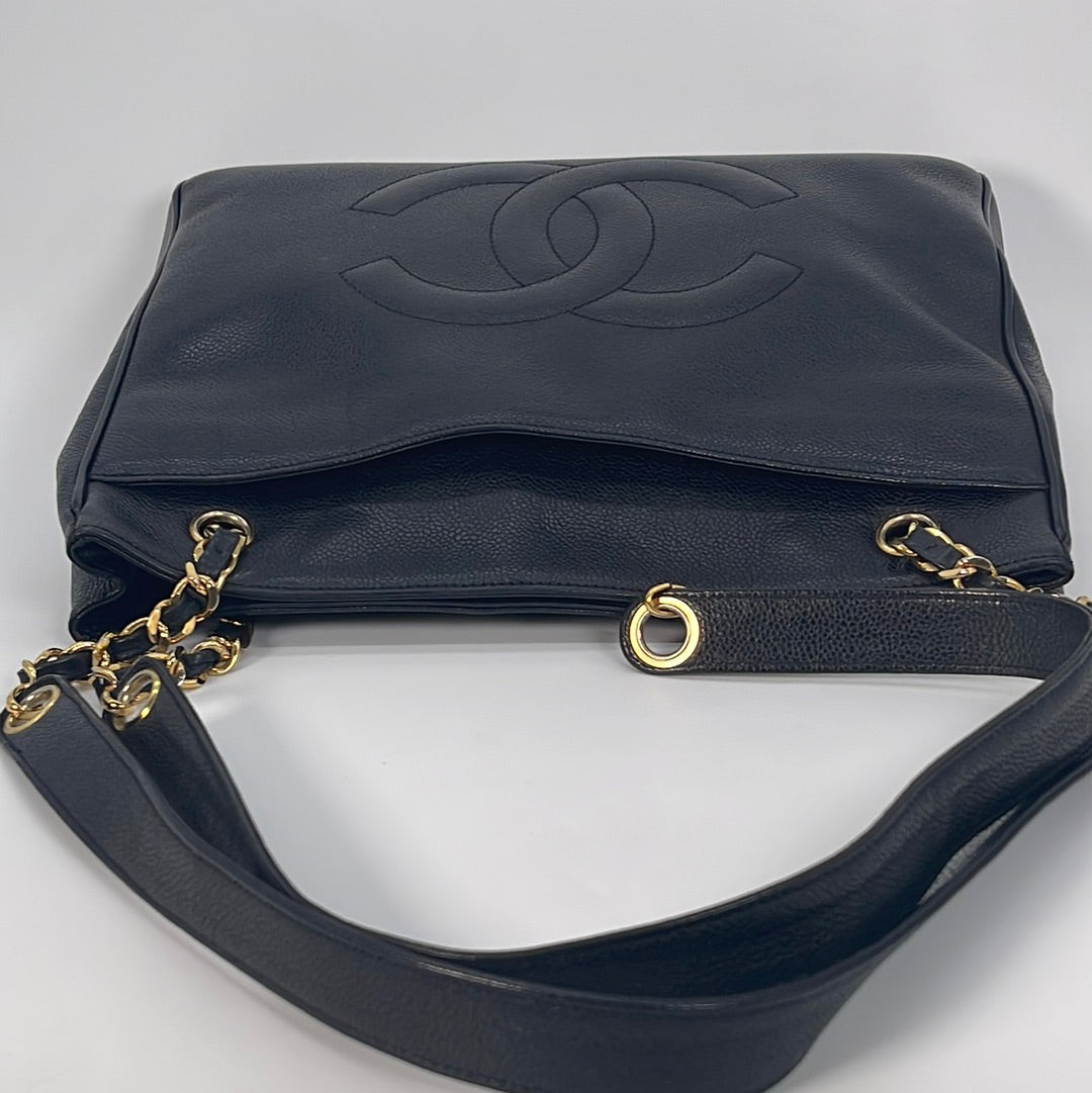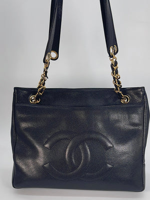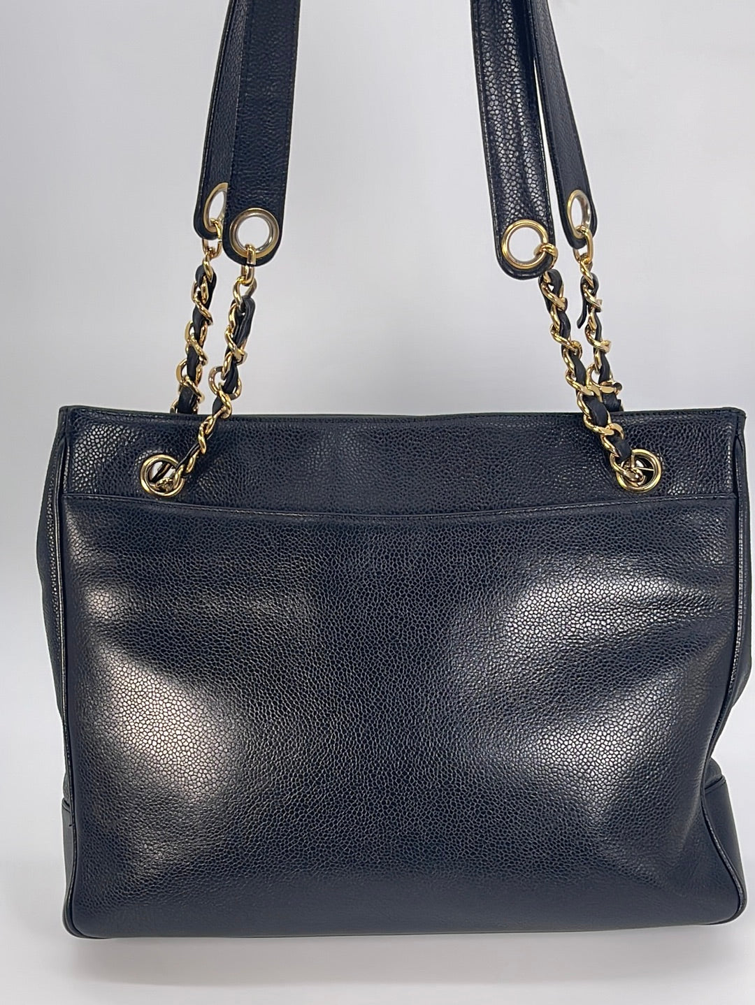 Vintage Chanel CC Logo Black Caviar Chain Shoulder Tote Bag