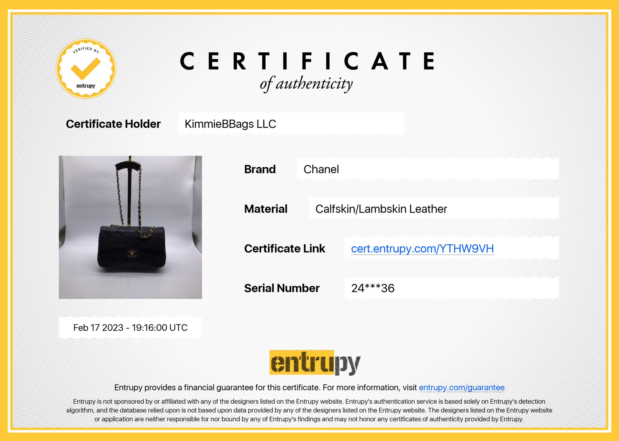 *KimmieBBags LLC is not affiliated with Chanel resold on this site. All bags are on consignment, pre-loved and are in used and/or vintage condition. All bags, wallets, and agendas are guaranteed Authentic by a third party Entrupy. A certificate will accompany each item purchased to verify authenticity.