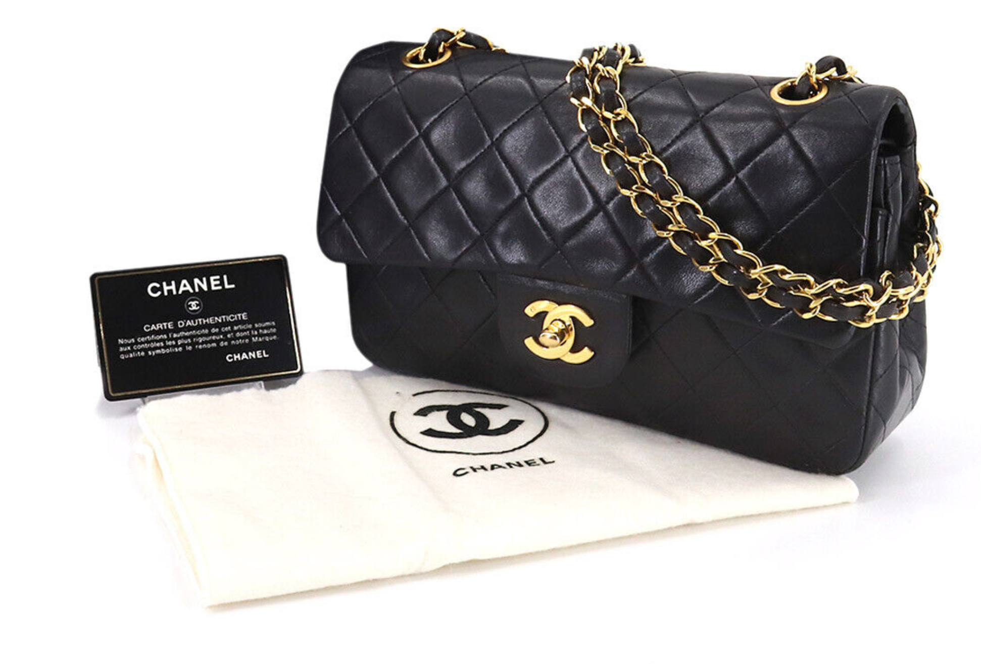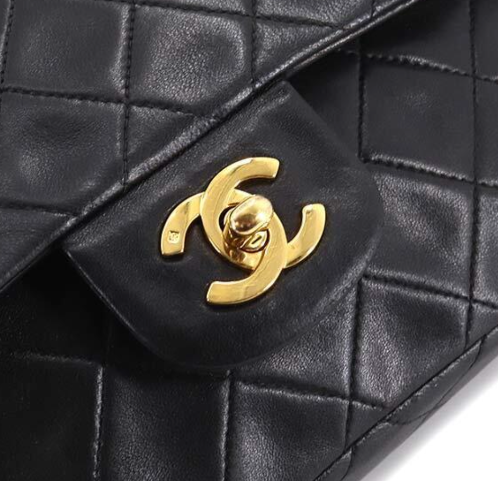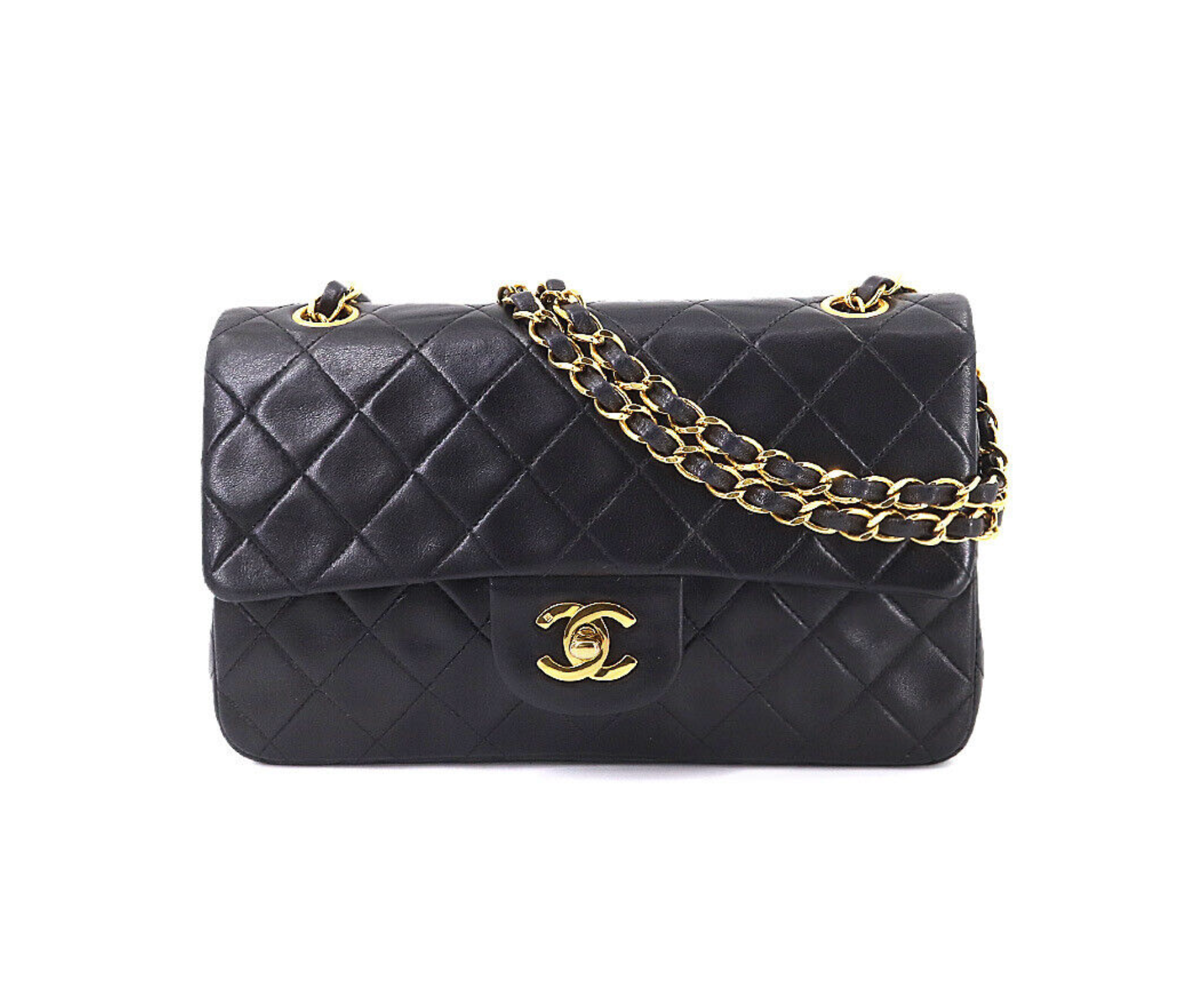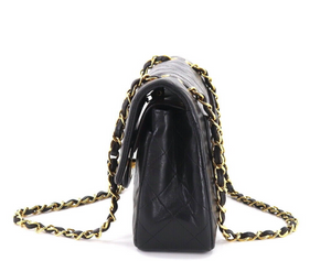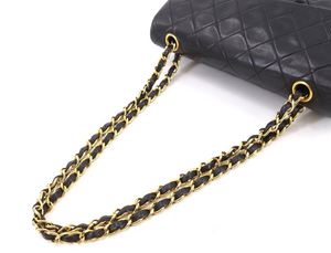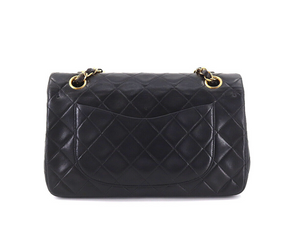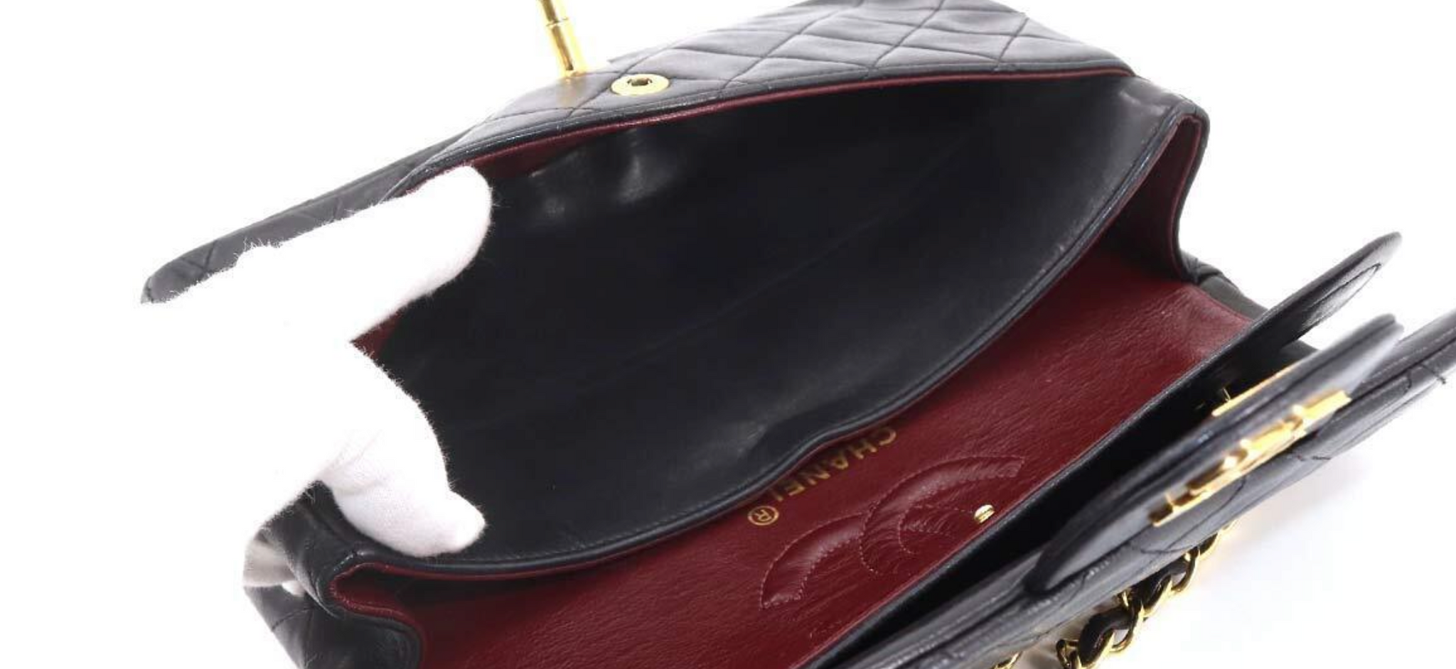 Vintage CHANEL Double Flap 23 Quilted CC Logo Black Lambskin Chain Bag ( 23cm is 2 cm smaller than the standard 25cm medium double flap )