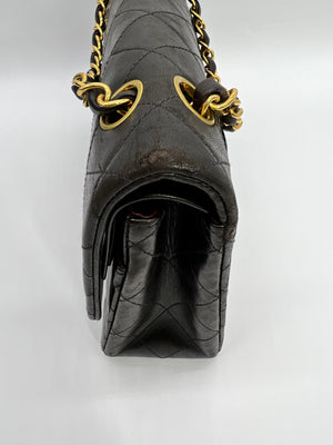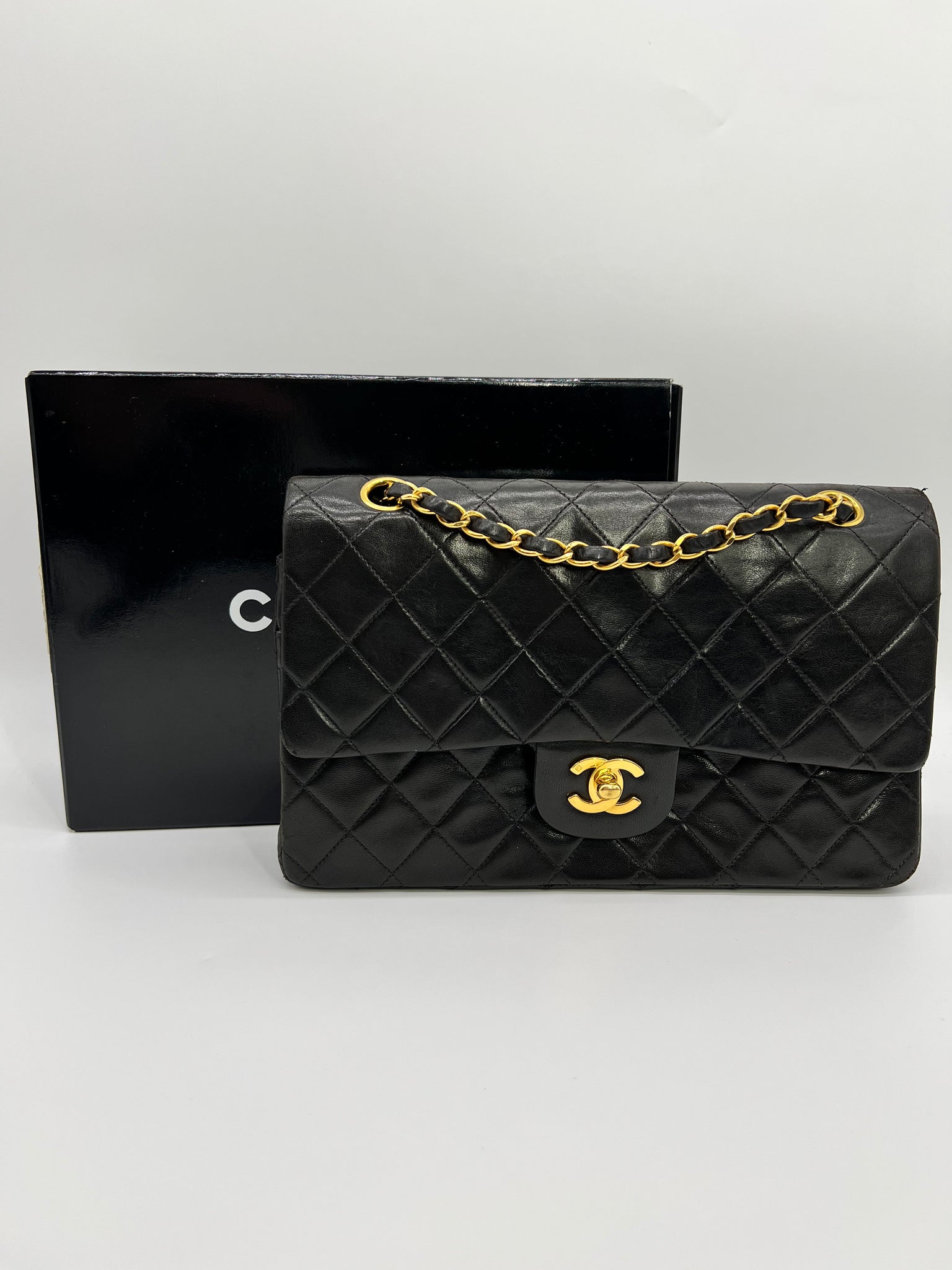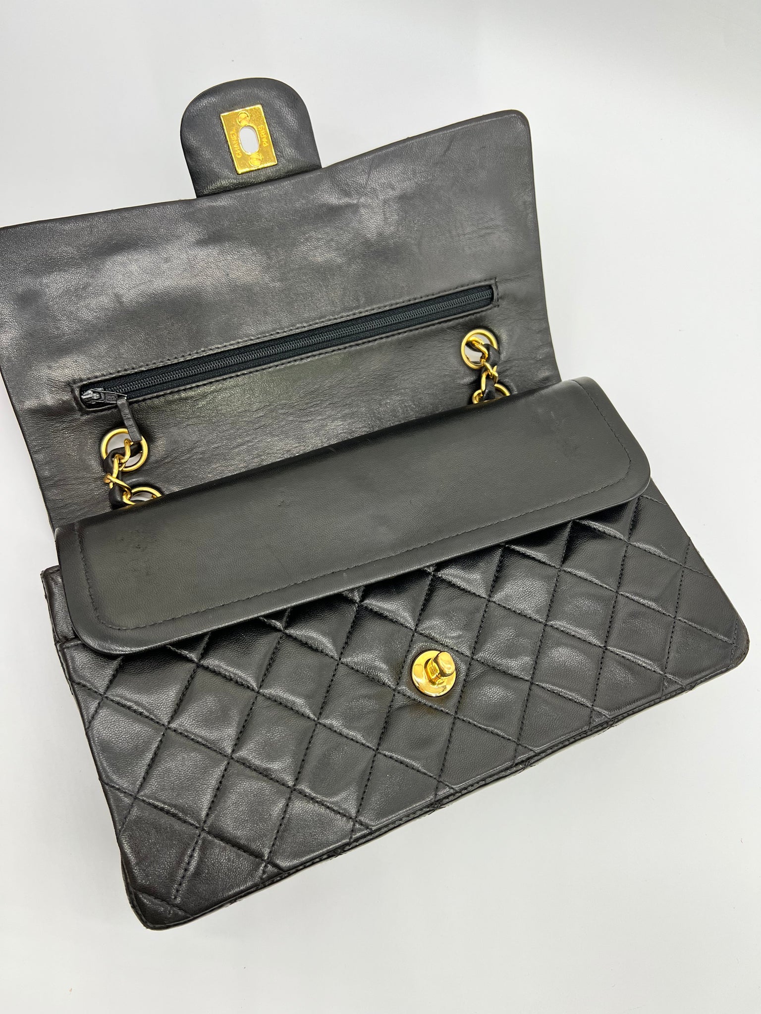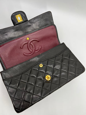 Vintage CHANEL Lambskin Medium Double Flap Matelasse Chain Black Bag