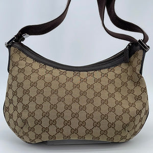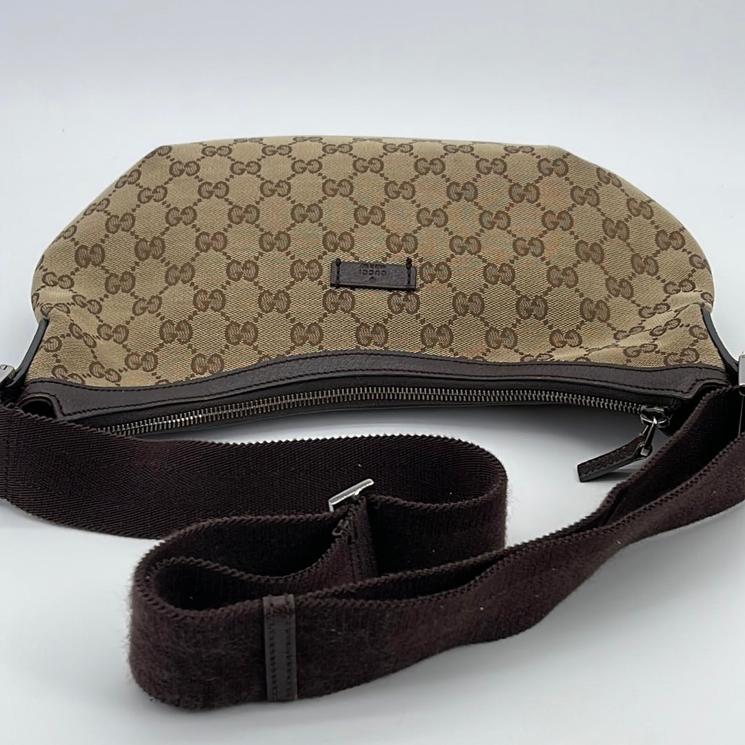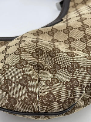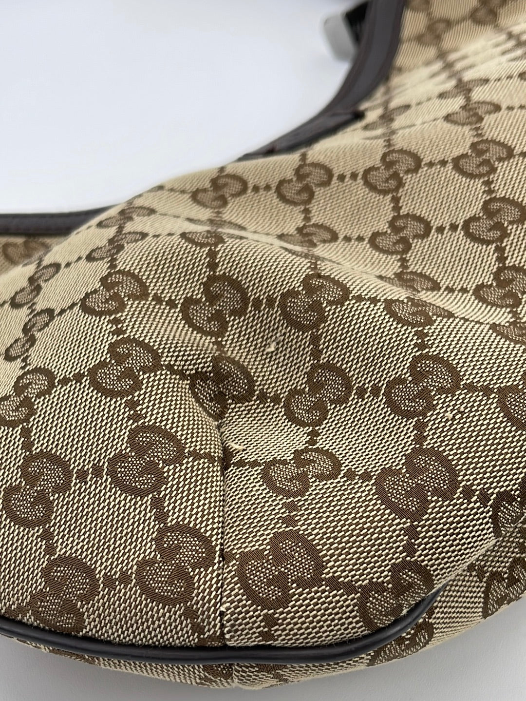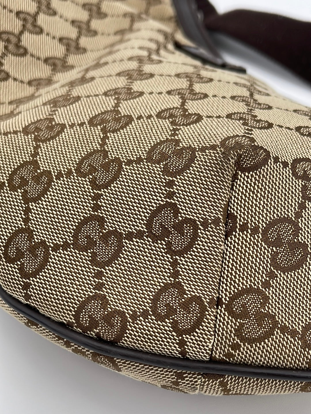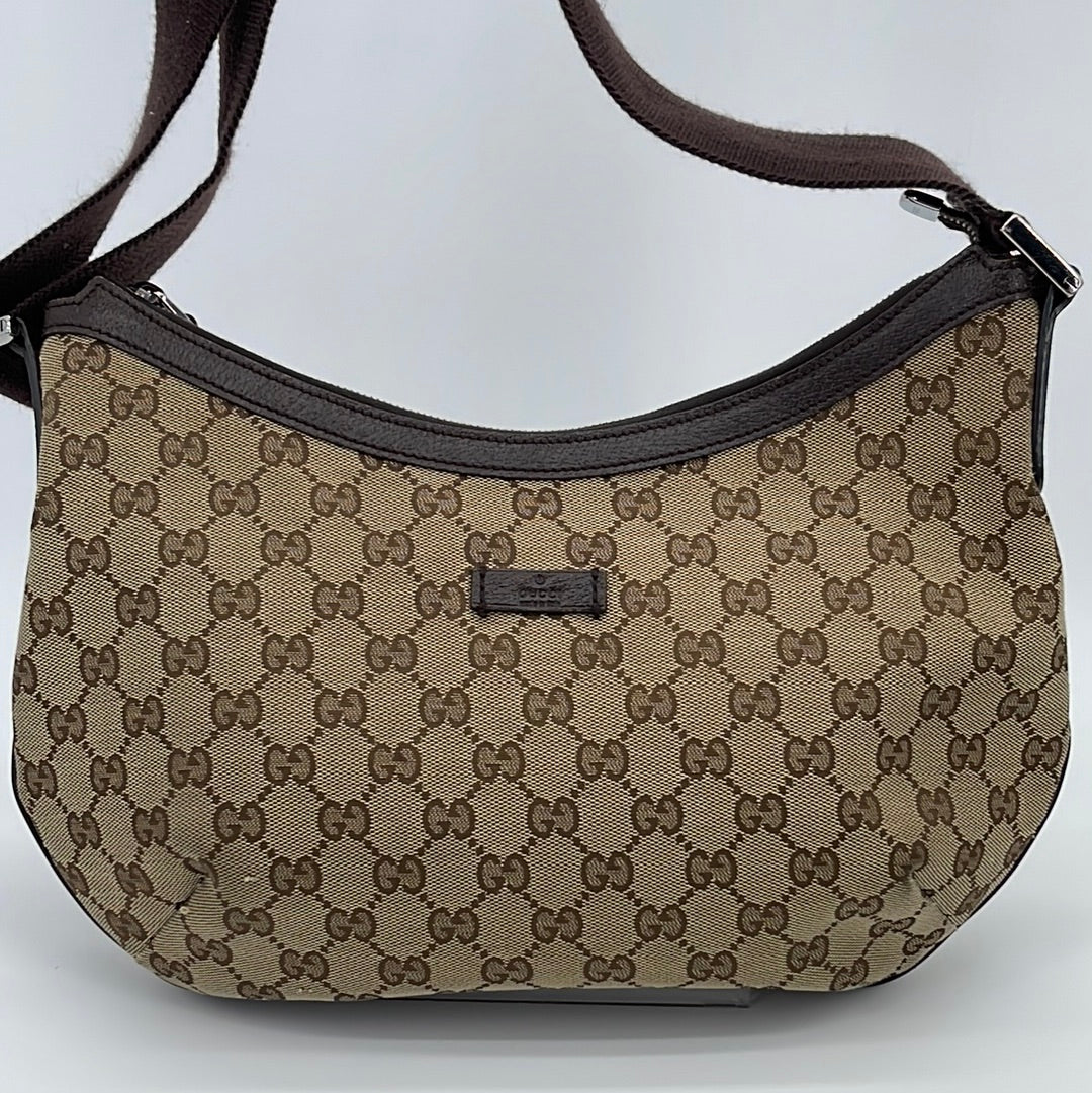 Vintage GUCCI Beige and Brown Leather GG Canvas Half Moon Crossbody Bag