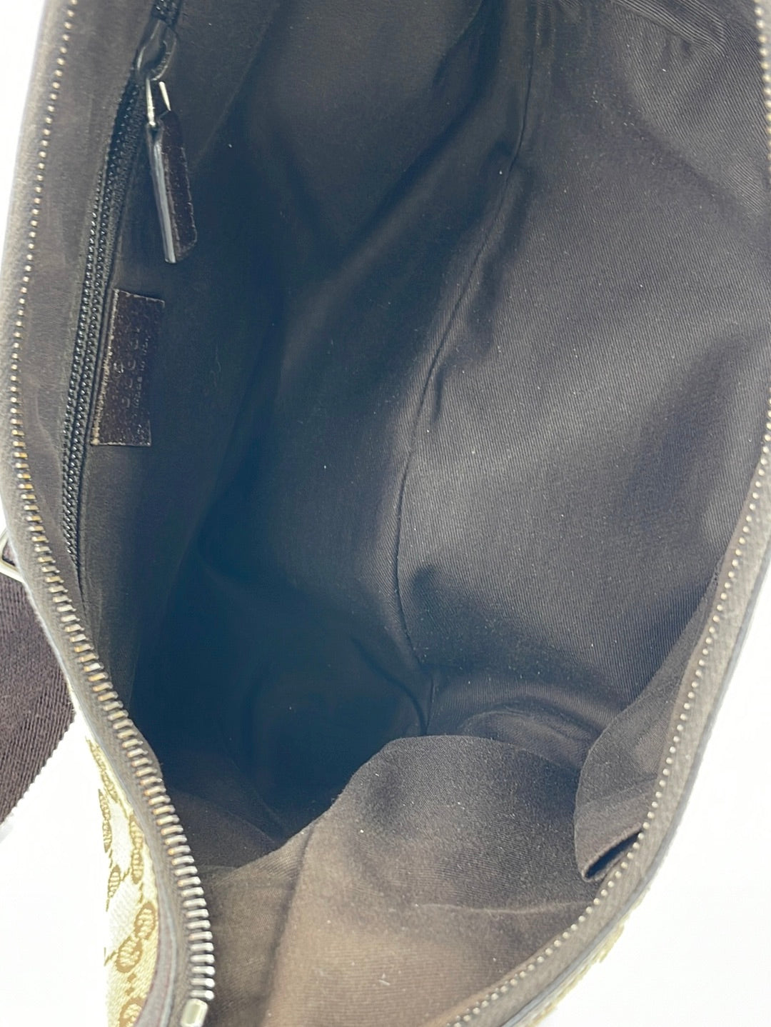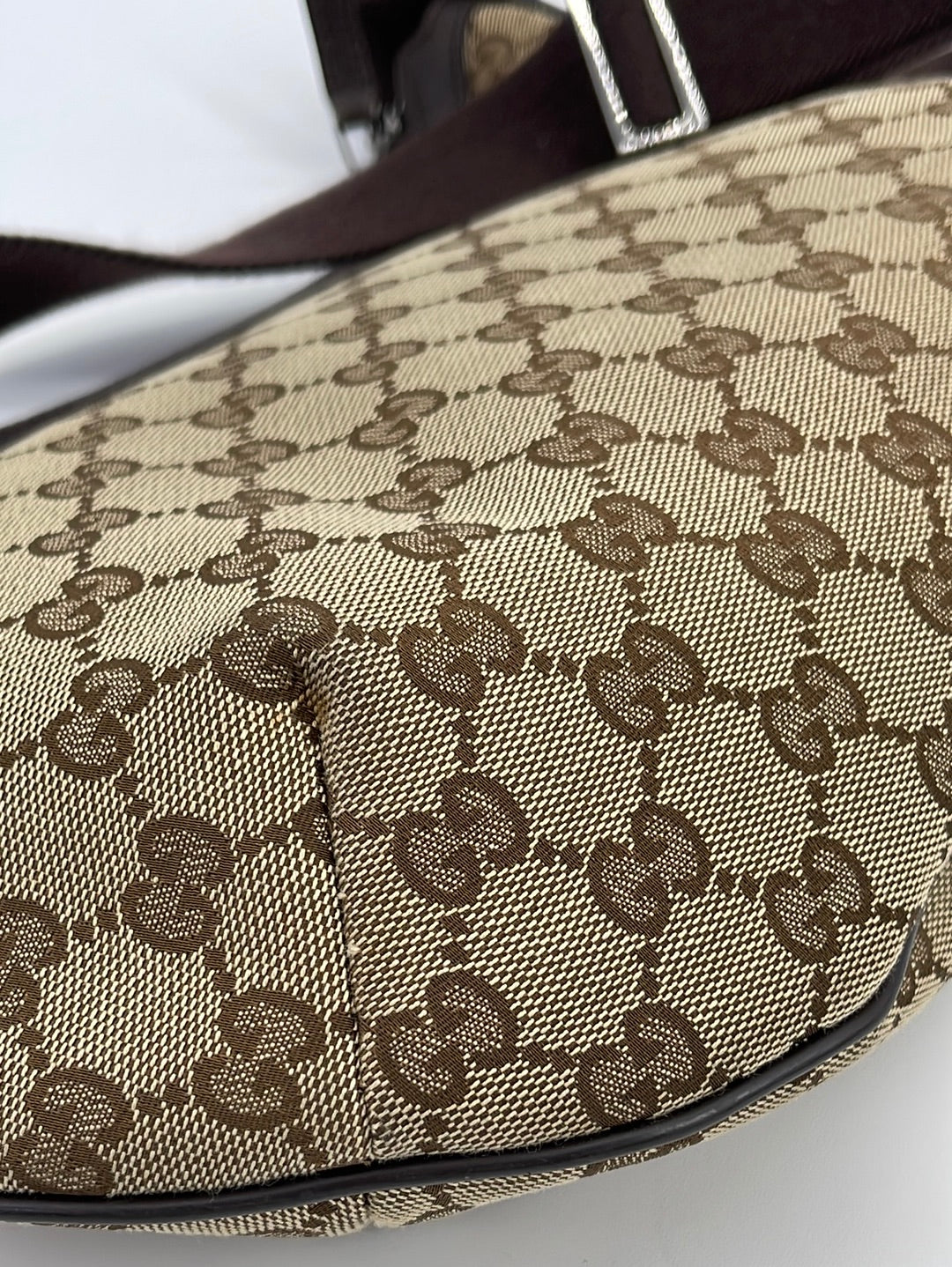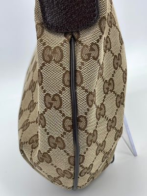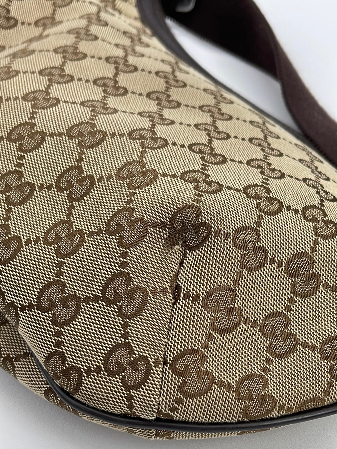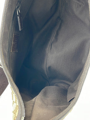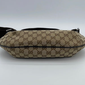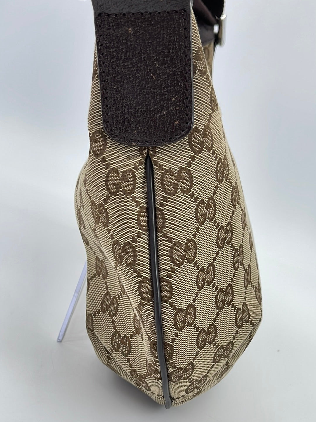 Vintage GUCCI Beige and Brown Leather GG Canvas Half Moon Crossbody Bag