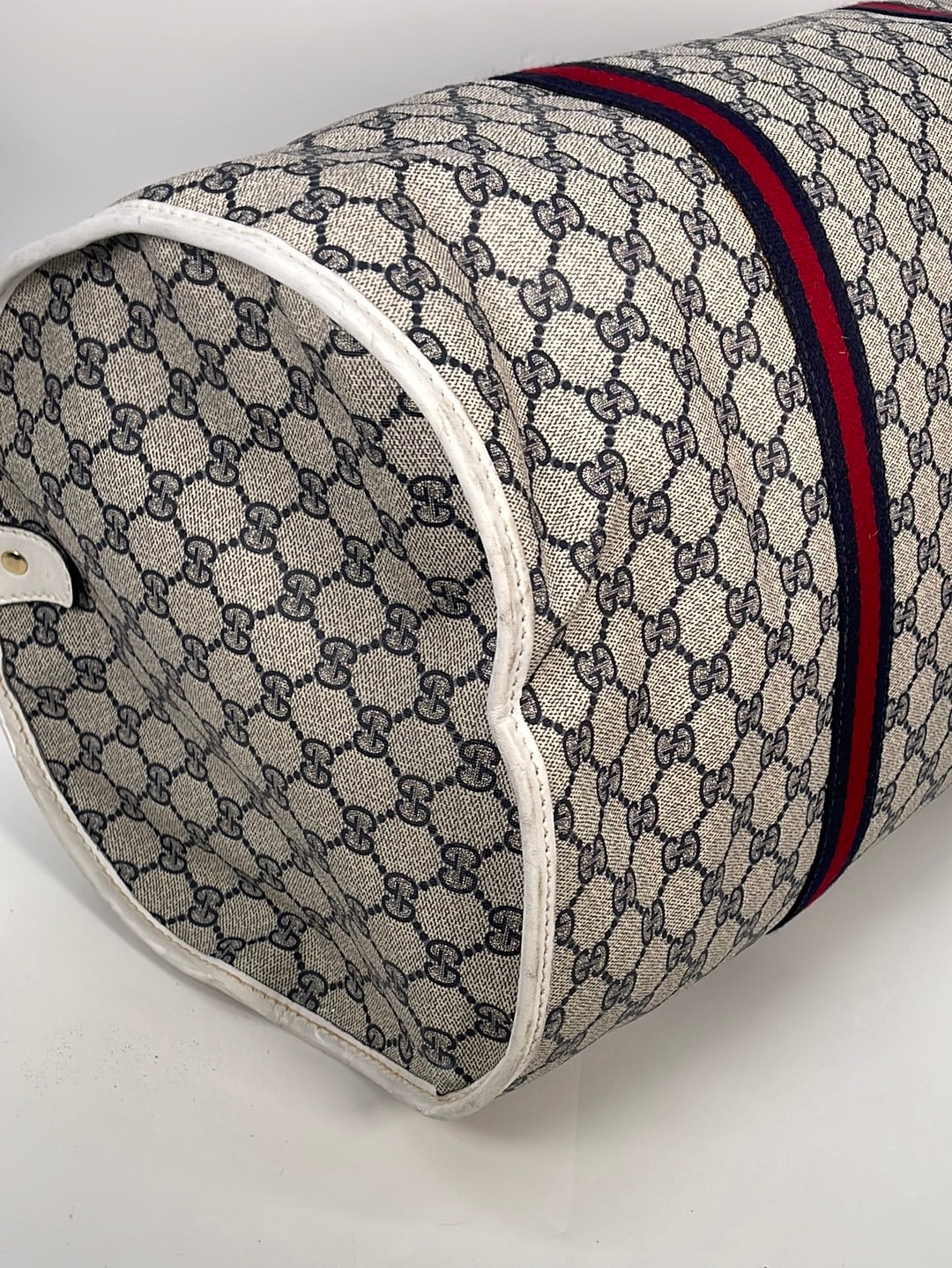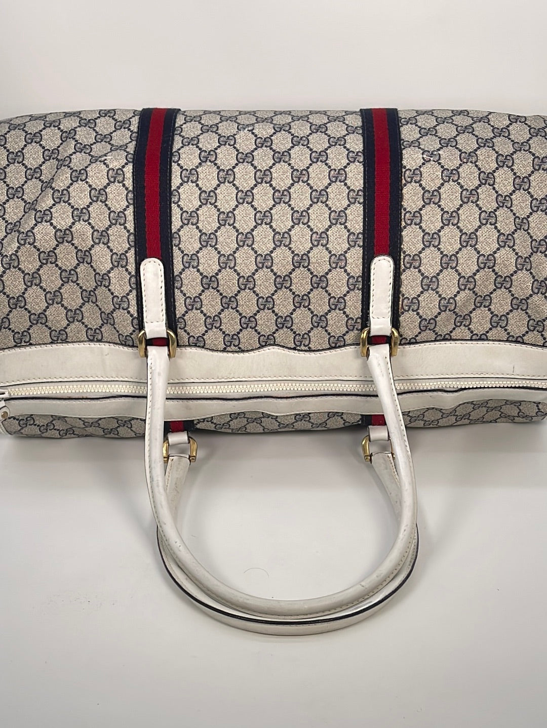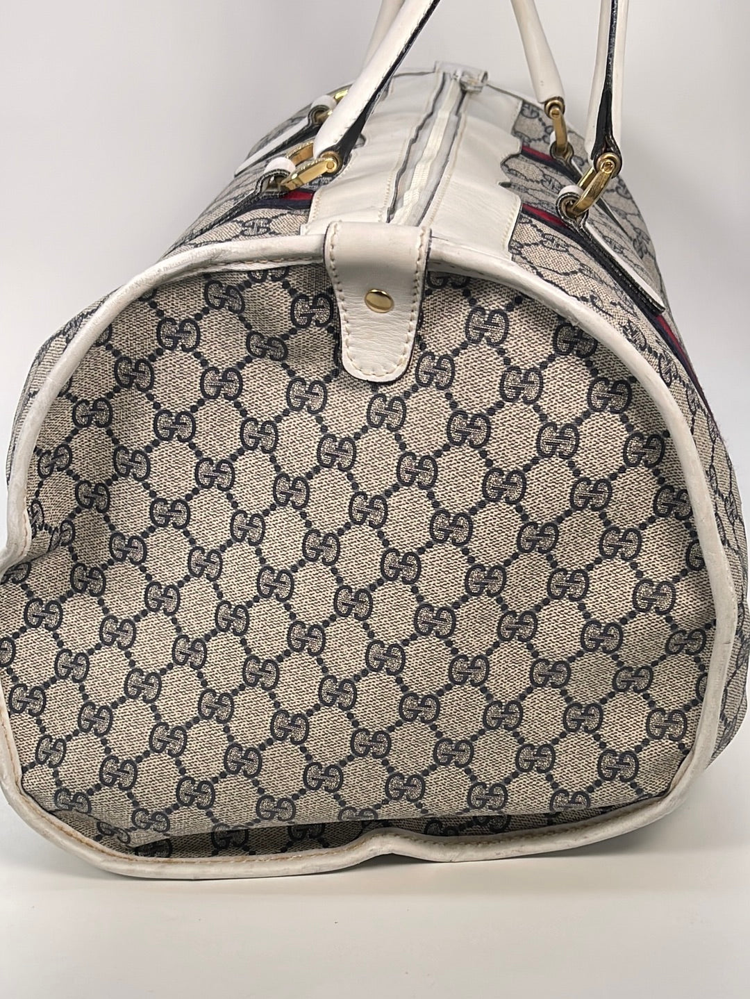 Vintage GUCCI GG SUPREME CANVAS Web White Boston Bag