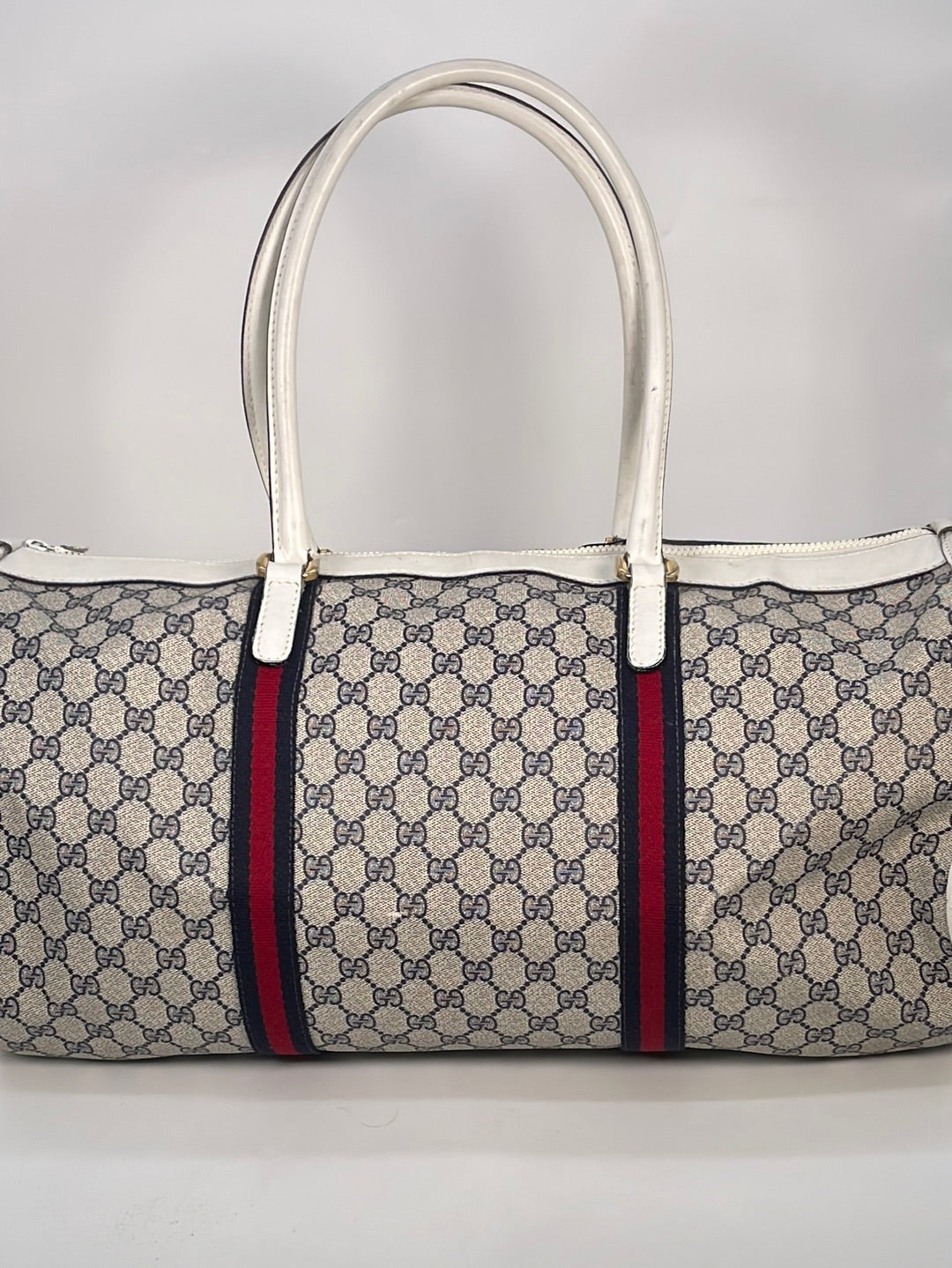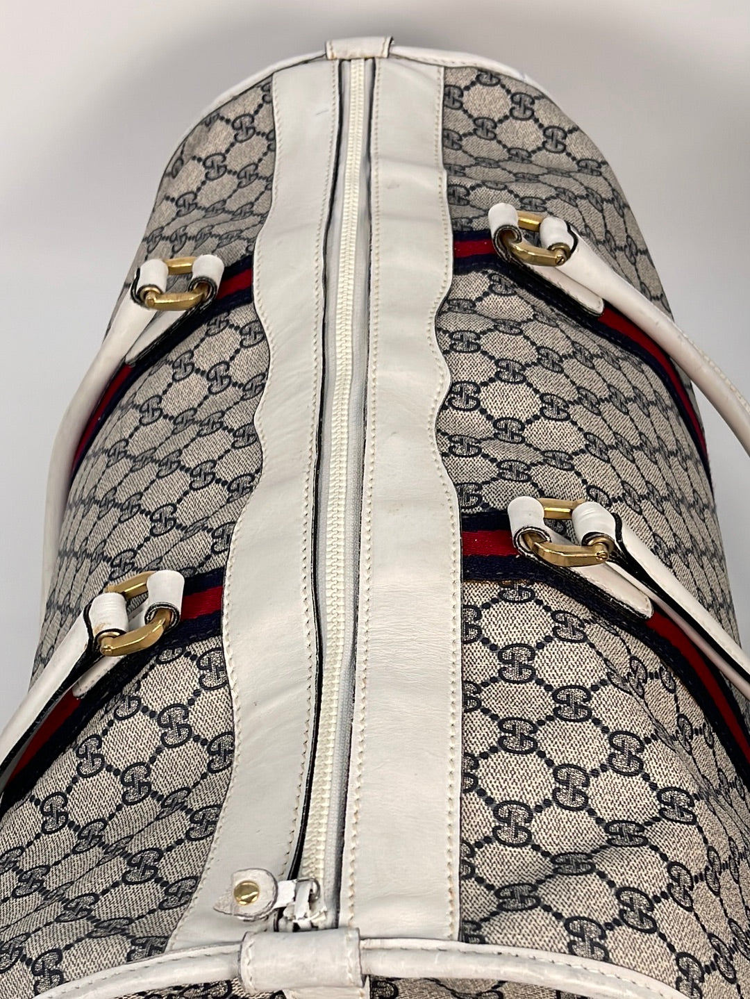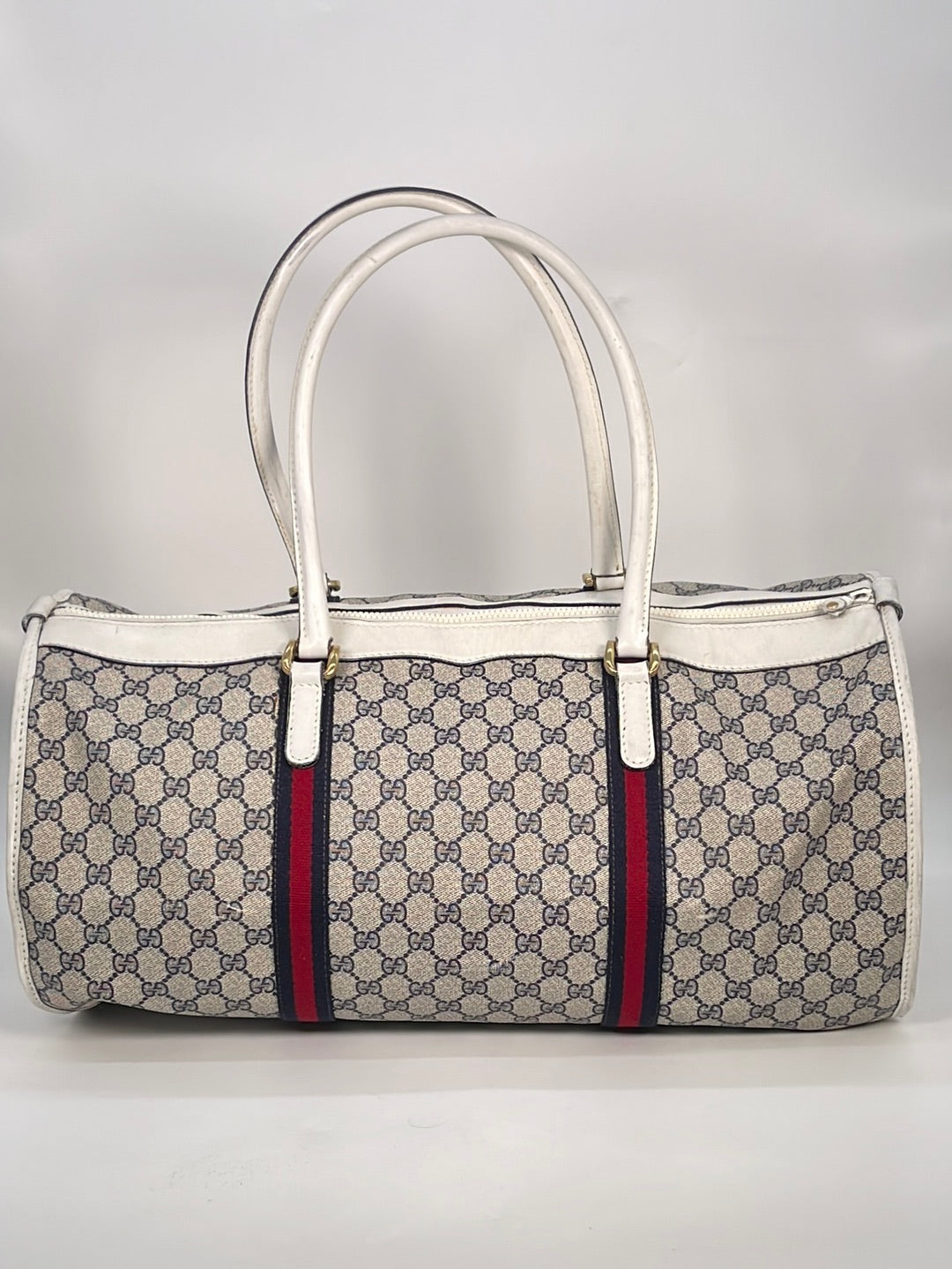 Vintage GUCCI GG SUPREME CANVAS Web White Boston Bag