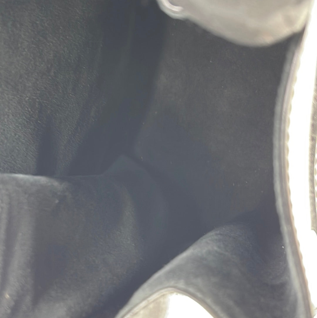 This Louis Vuitton Sac DePaul PM Bag is rare! It features a unique shape with a leather band and press stud closure.