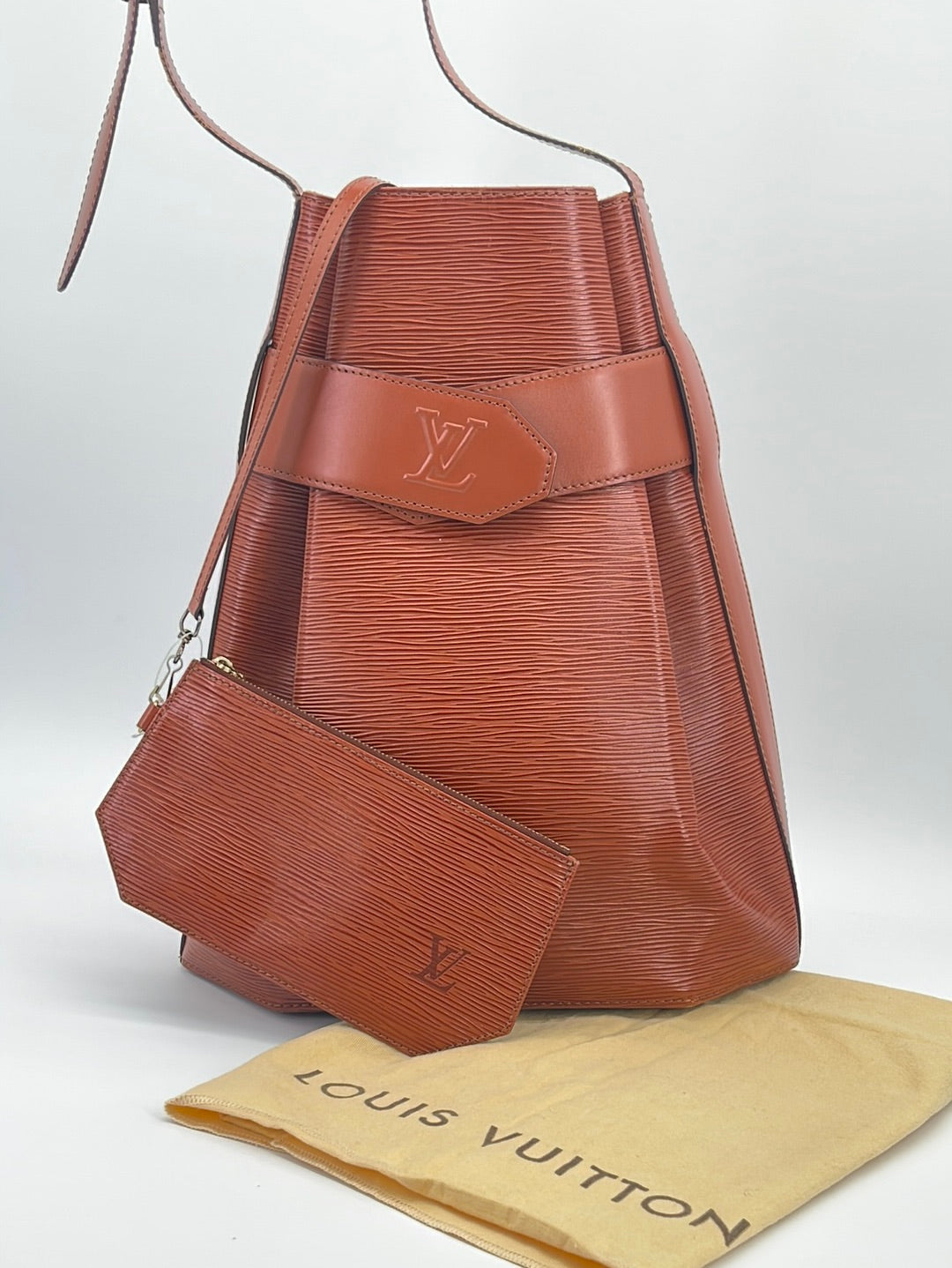 Vintage Louis Vuitton Epi Sac d' Epaule GM Brown Epi Leather Shoulder Bag with Pouch!