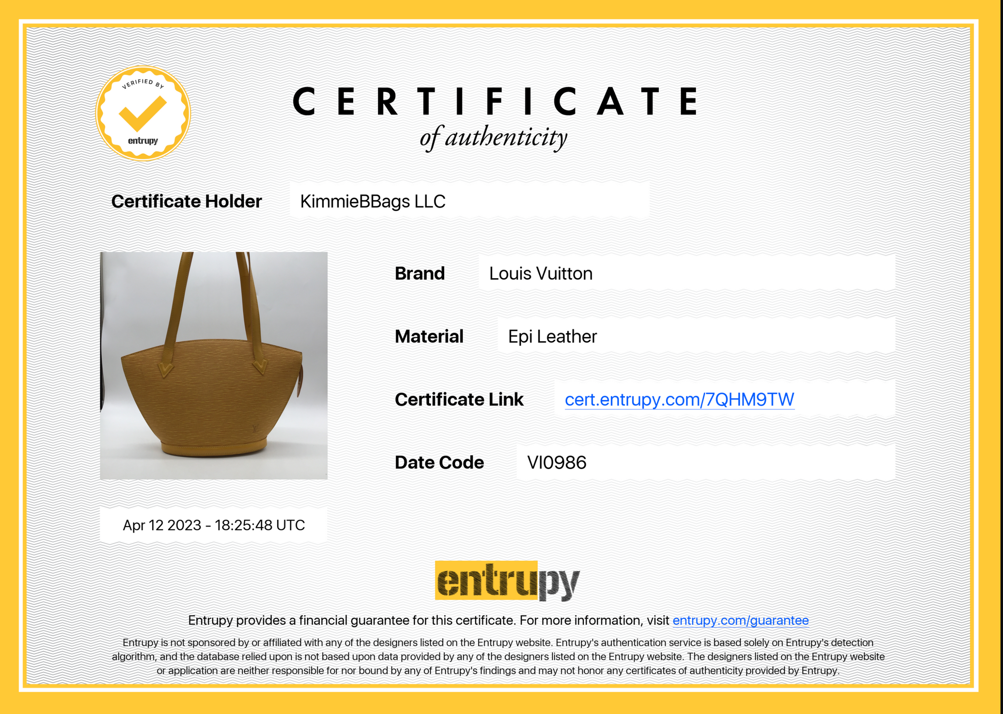 Entrupy letter of Authenticity!