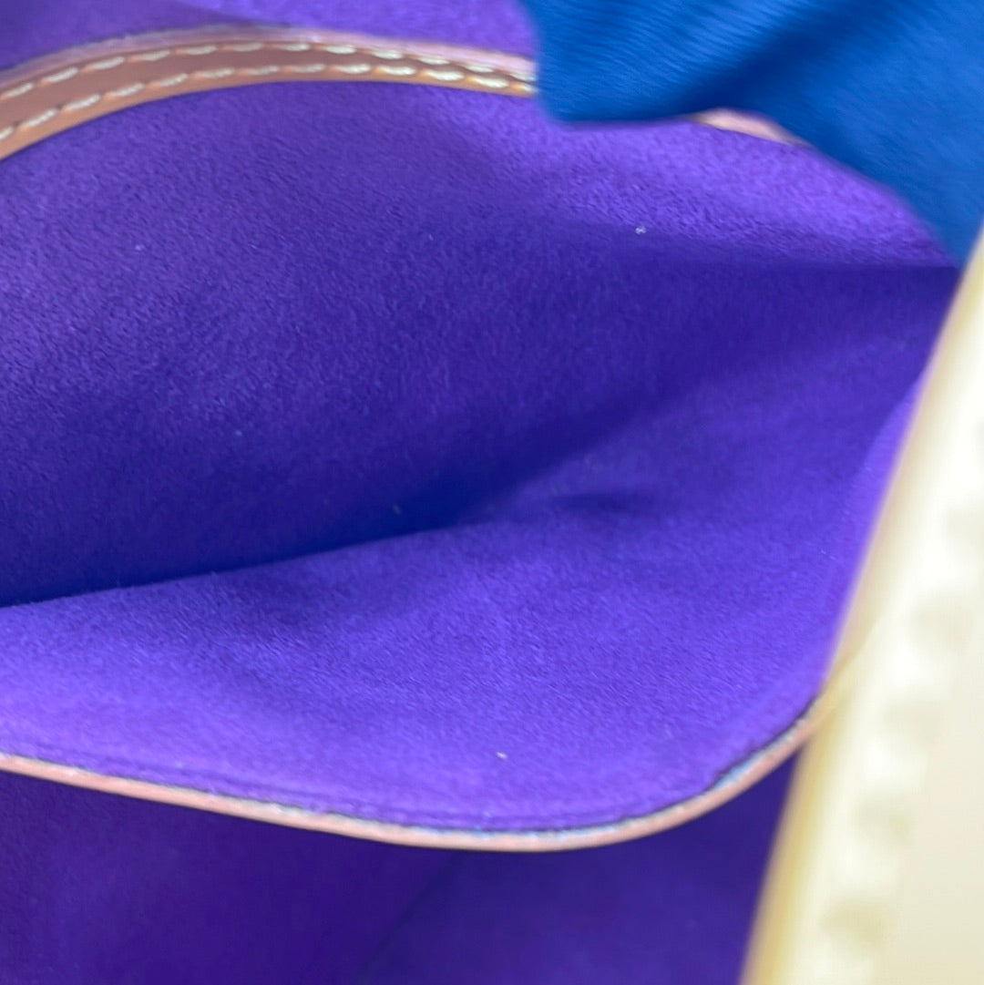PRELOVED: Good used condition. Exterior is clean. Light wear on bottom. Small crack in leather on shoulder strap. Interior is clean. See photos!